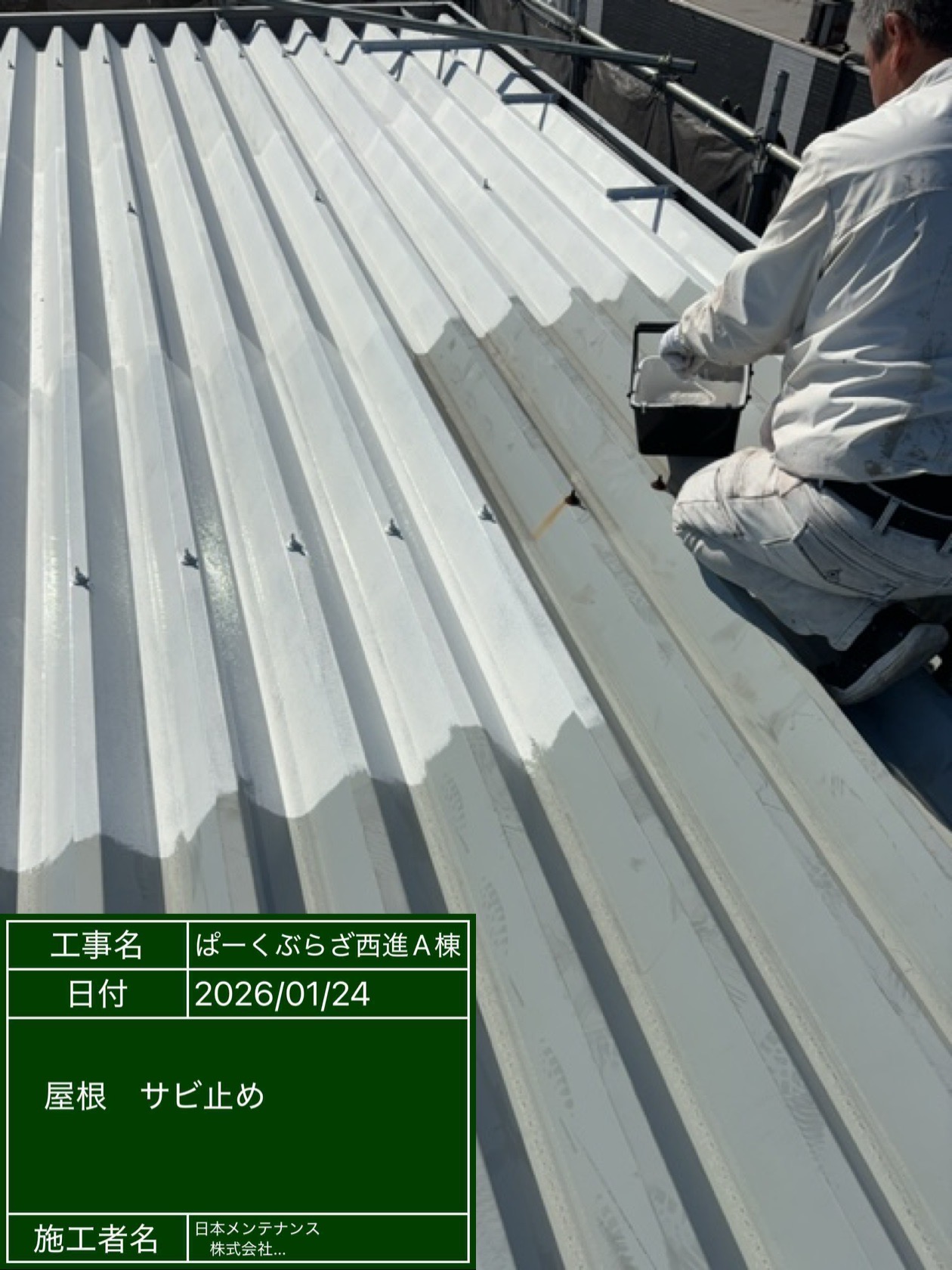 さいたま市のアパートで折板屋根下塗りを行いました!