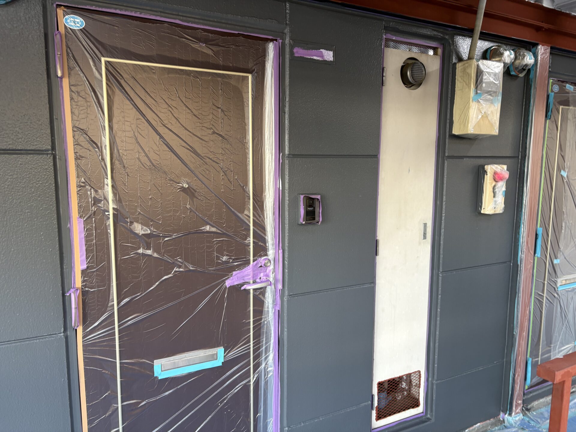 さいたま市のアパートで鉄部塗装、外壁下塗りを行いました!