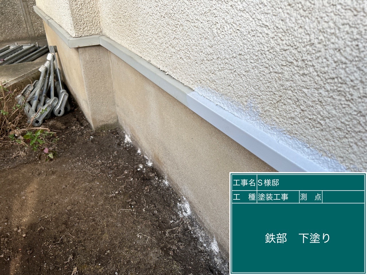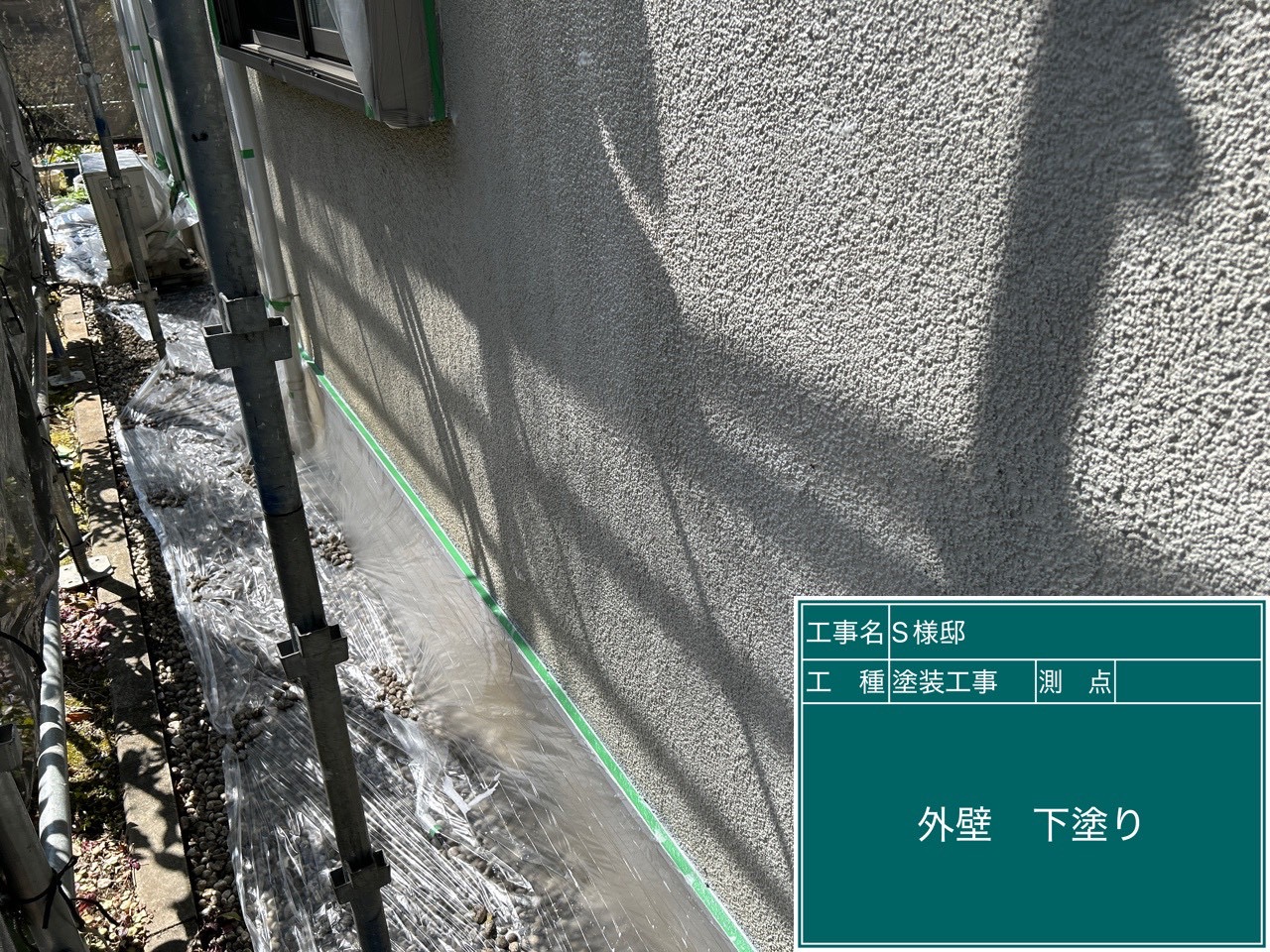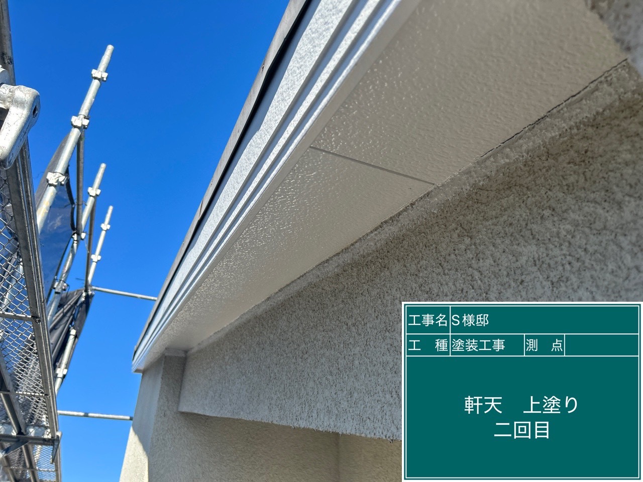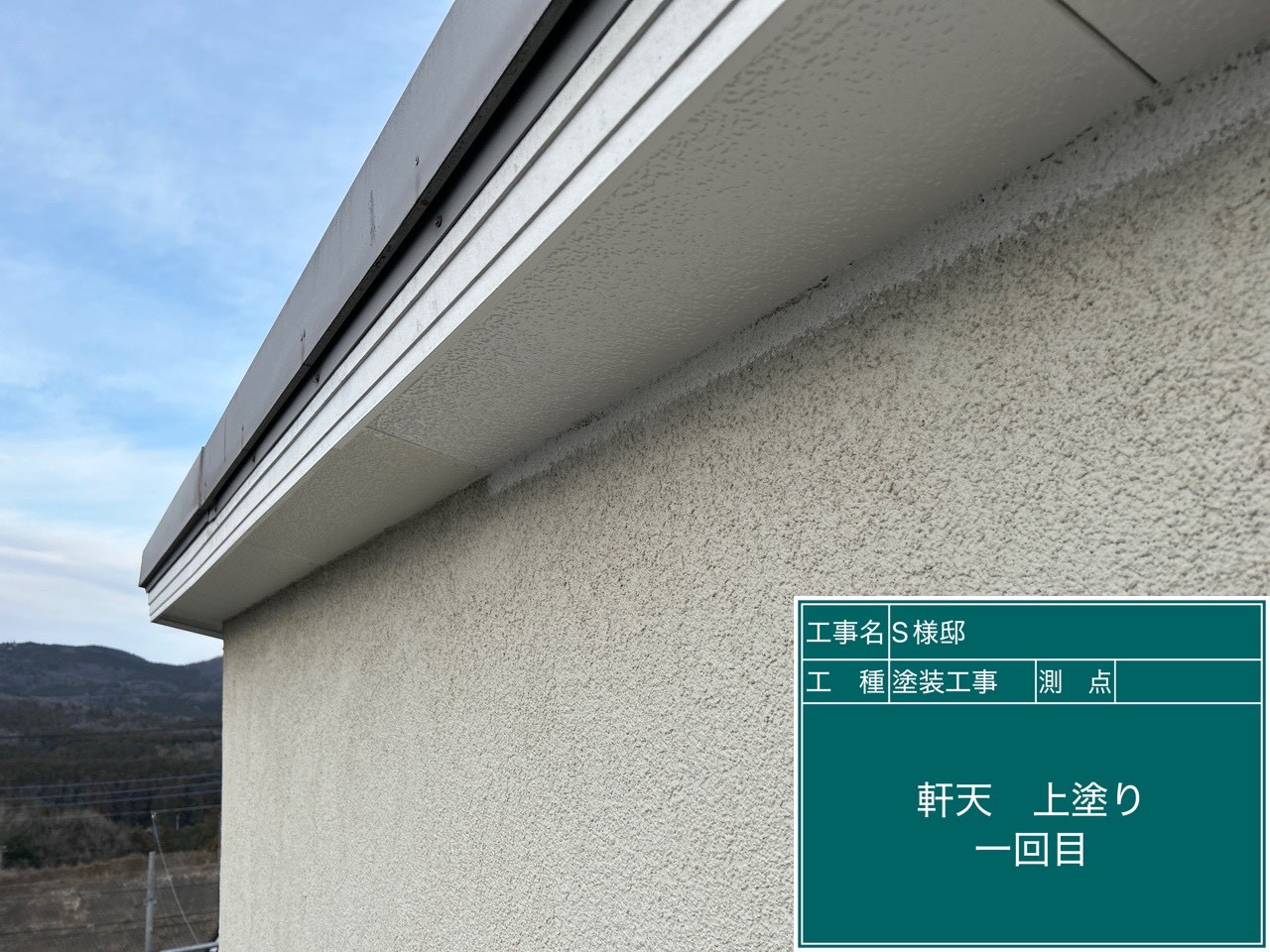 日高市のS様邸で外壁下塗りと軒天井塗装を行いました!