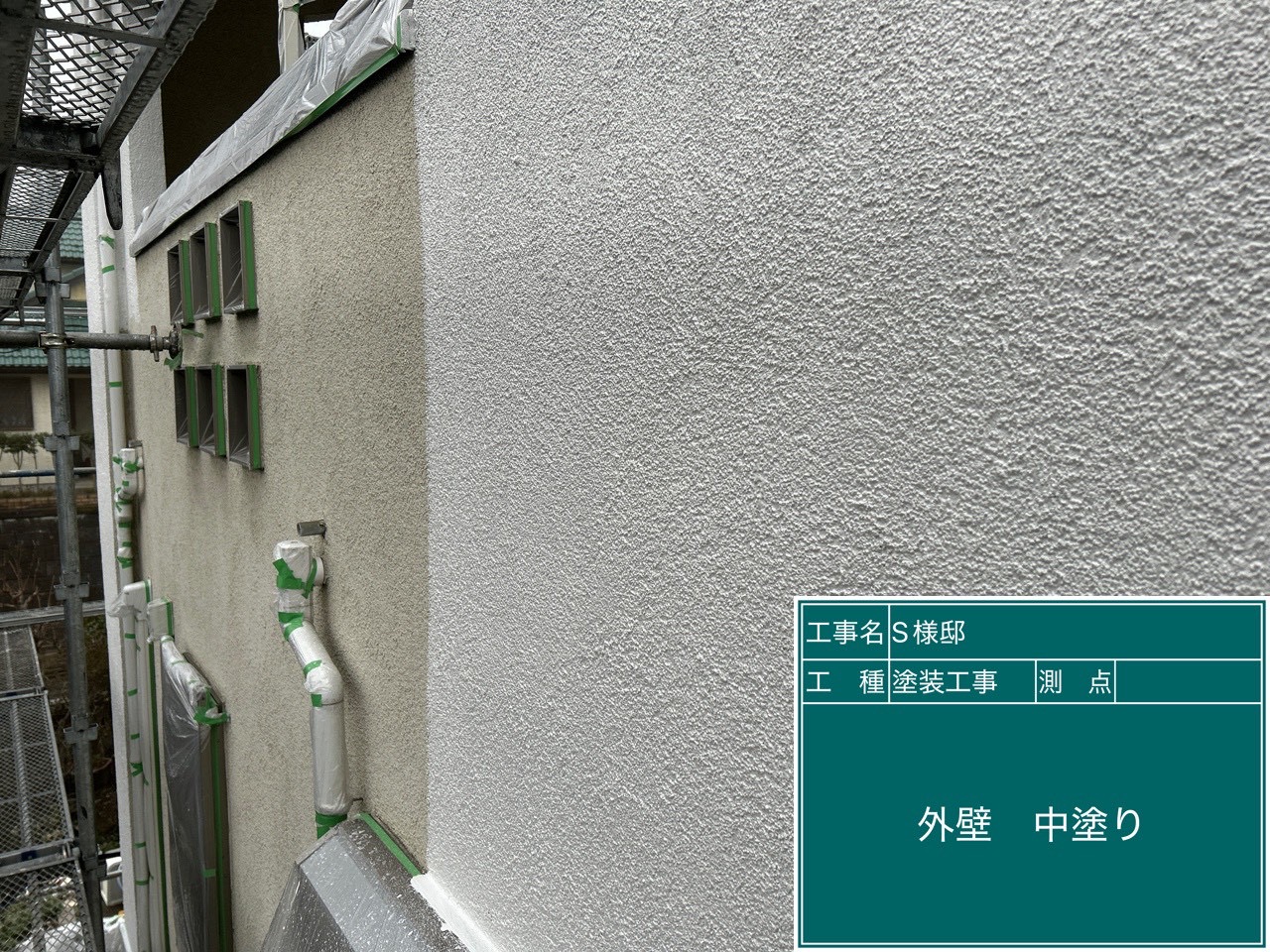 日高市のS様邸で外壁中塗りを行いました!