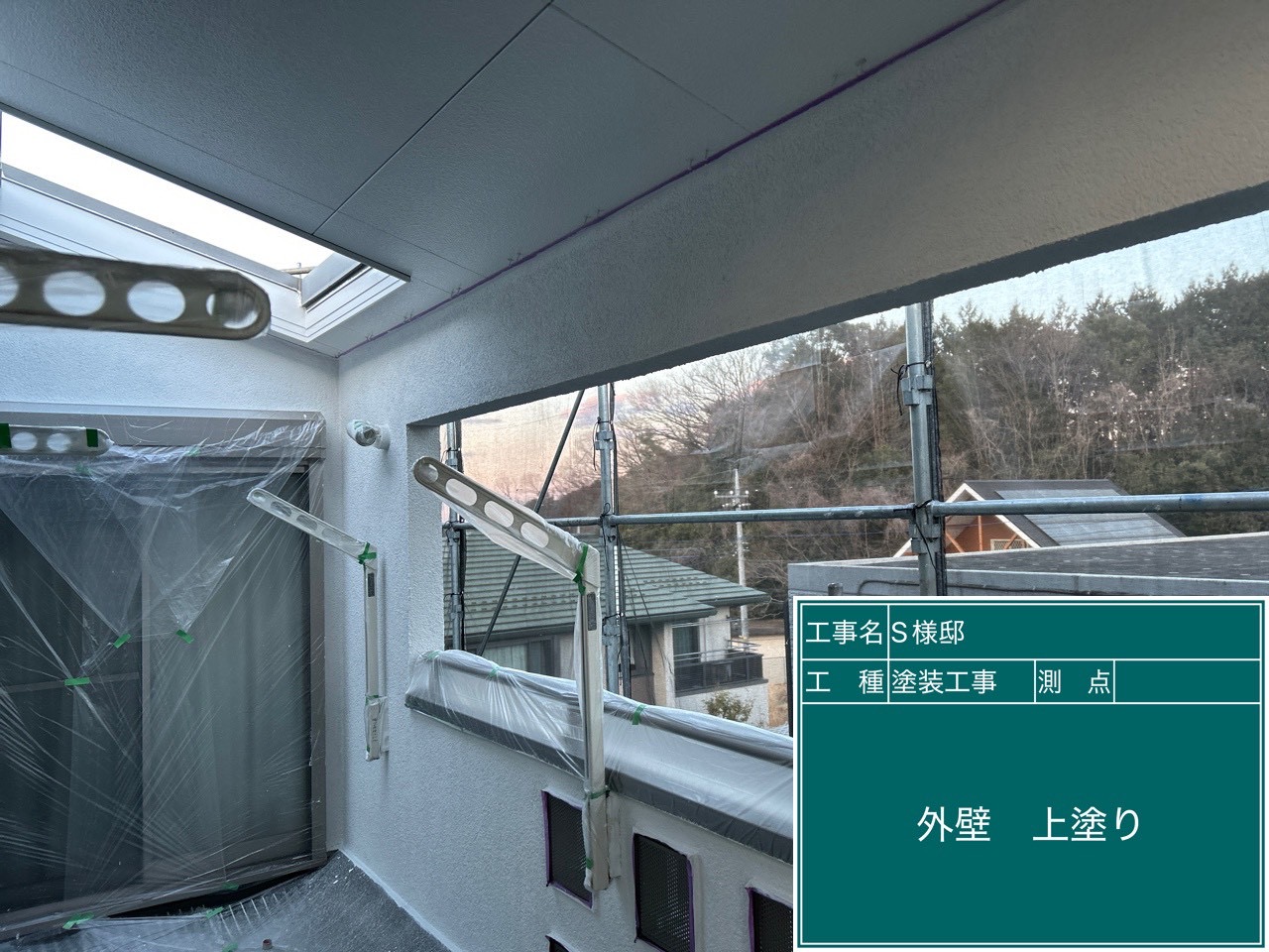 日高市のS様邸で養生と付帯部塗装、軒天塗装を行いました!