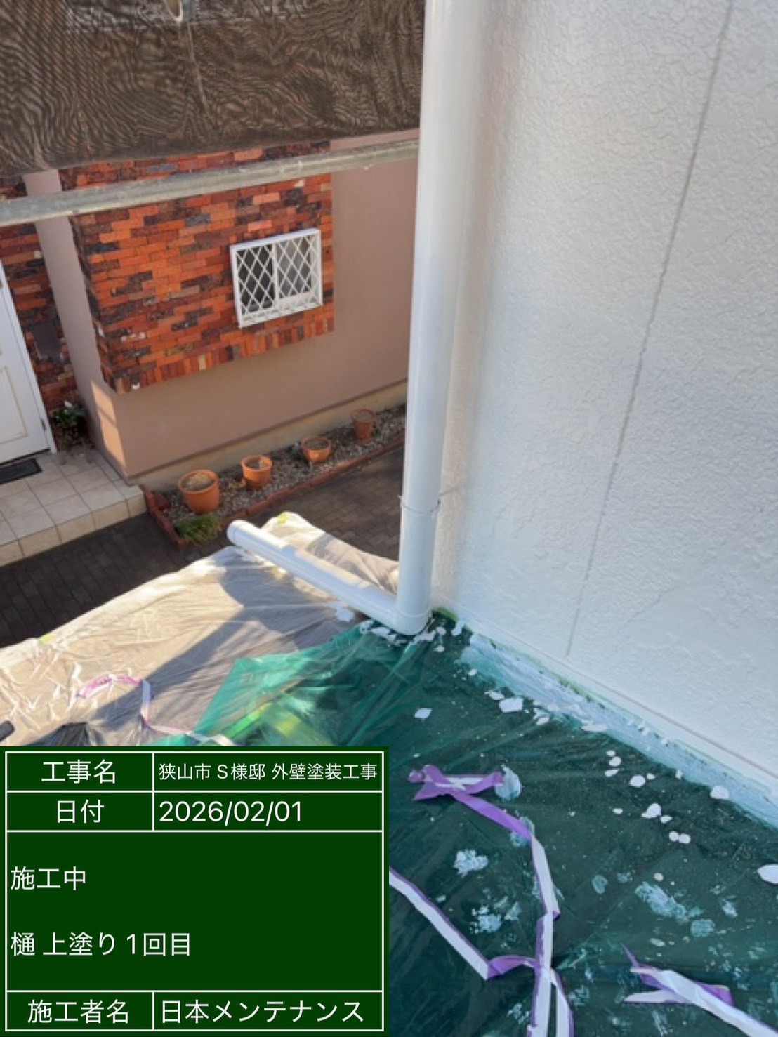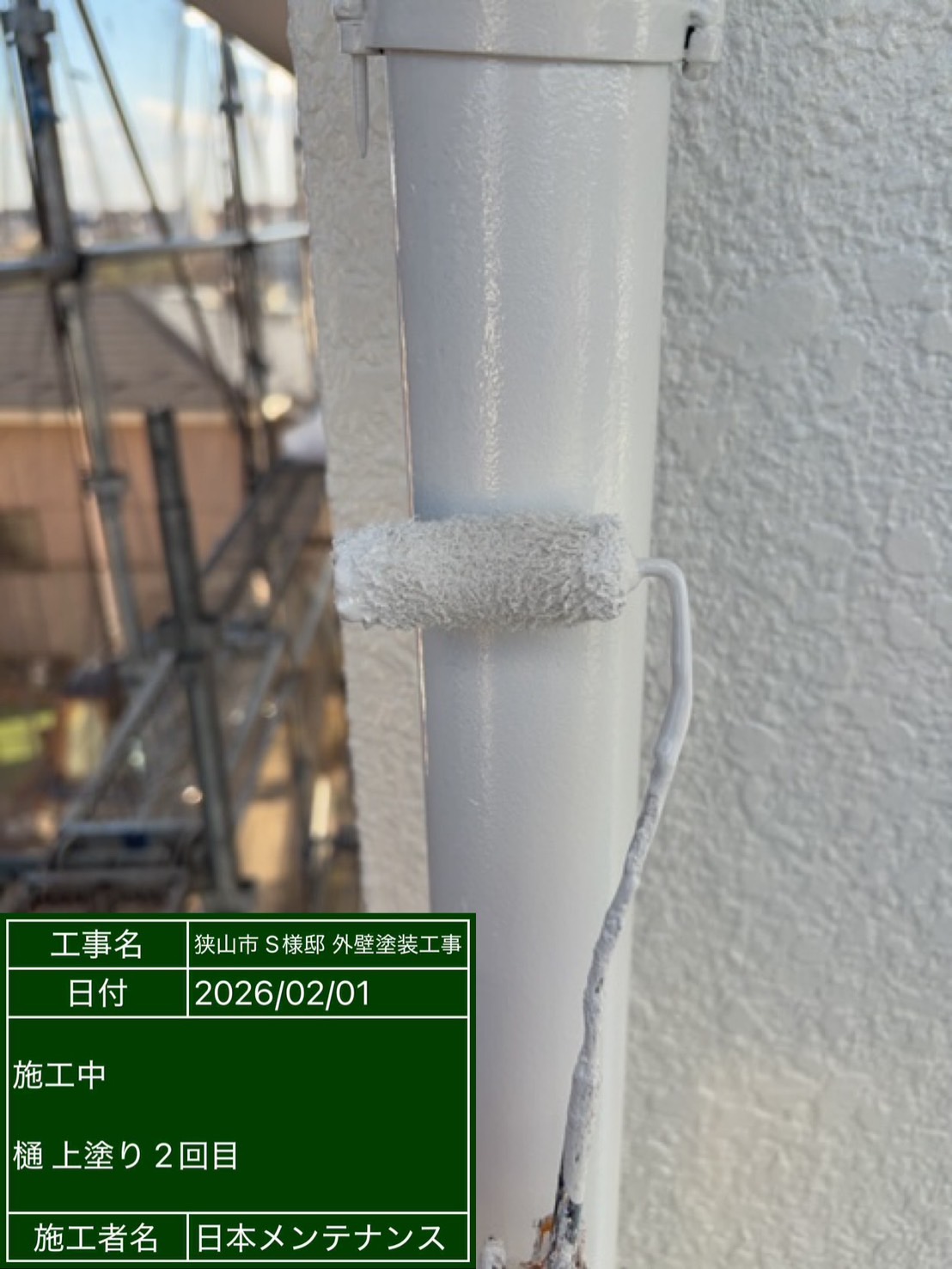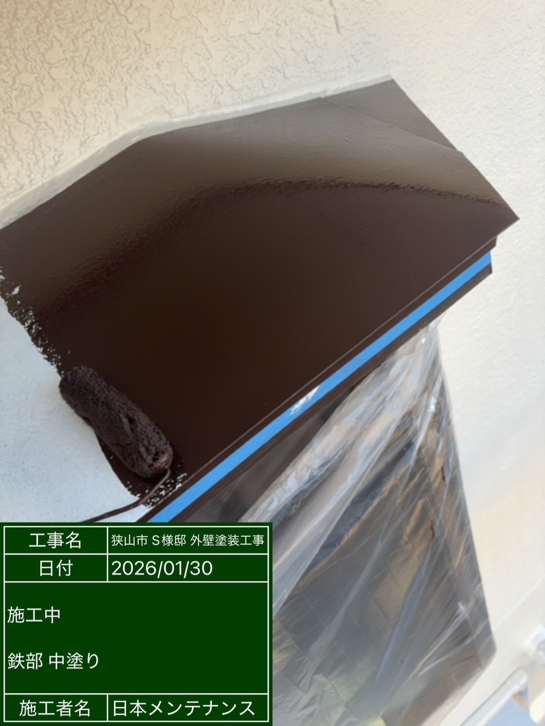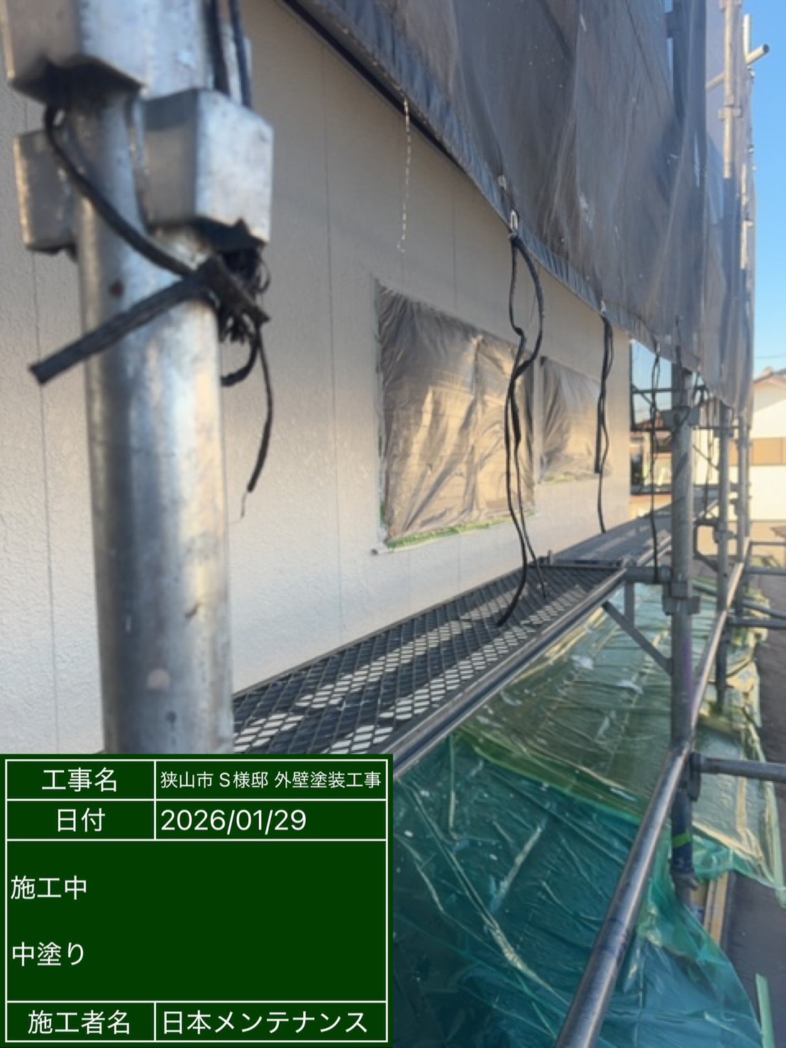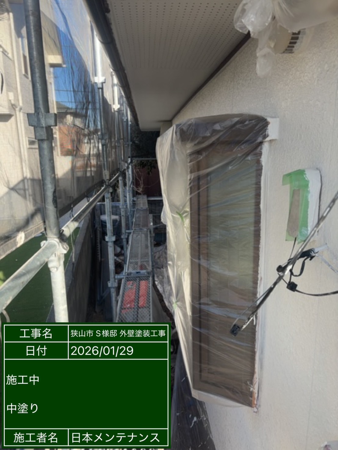 狭山市のS様邸で外壁中塗り、上塗り、鉄部下塗りを行いました!