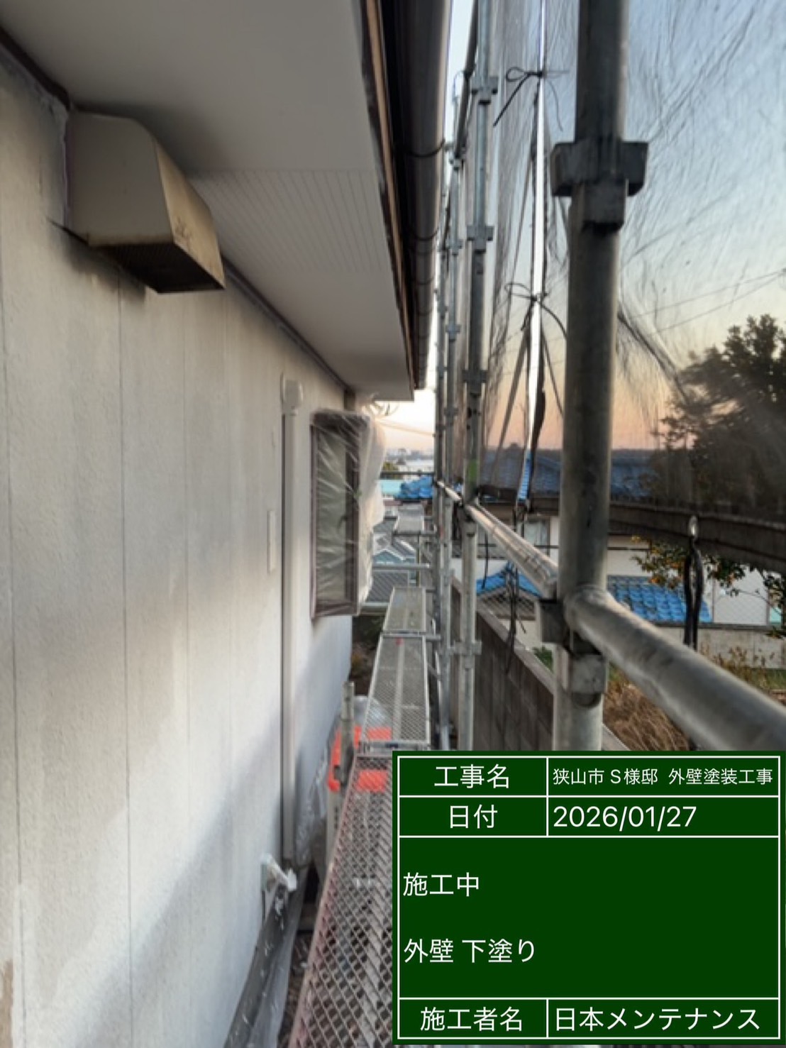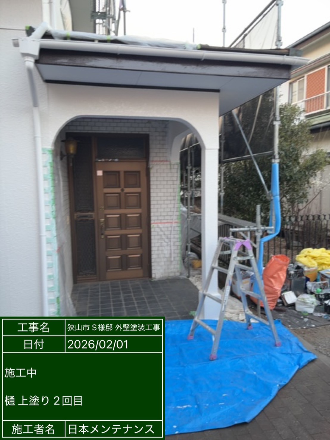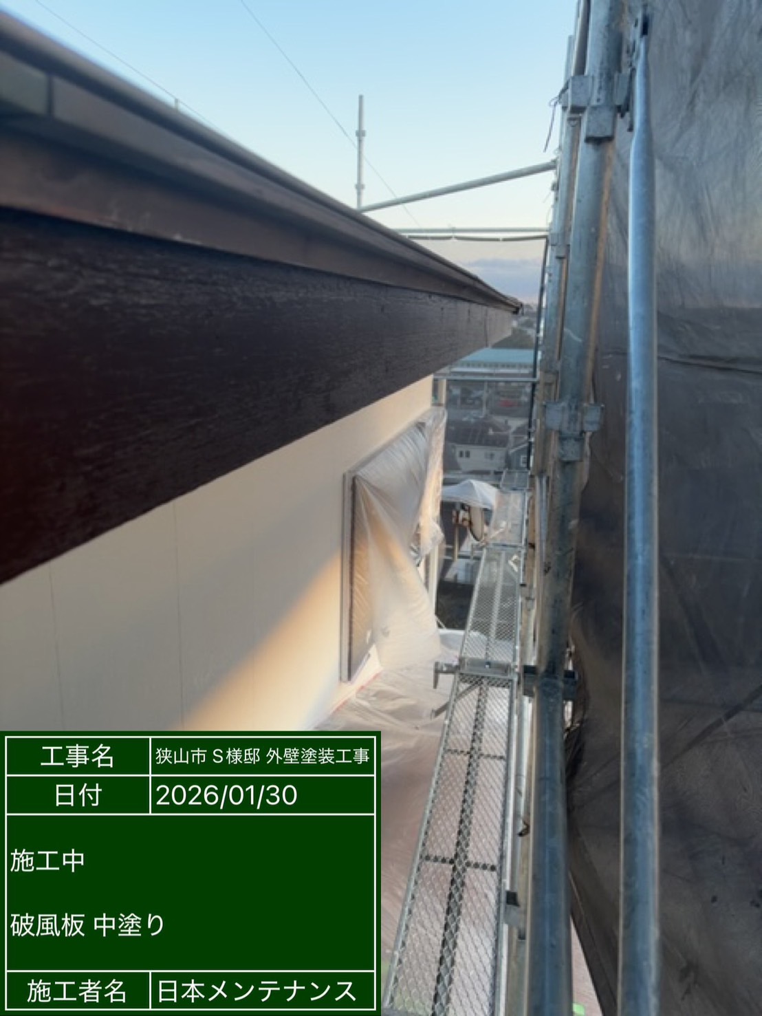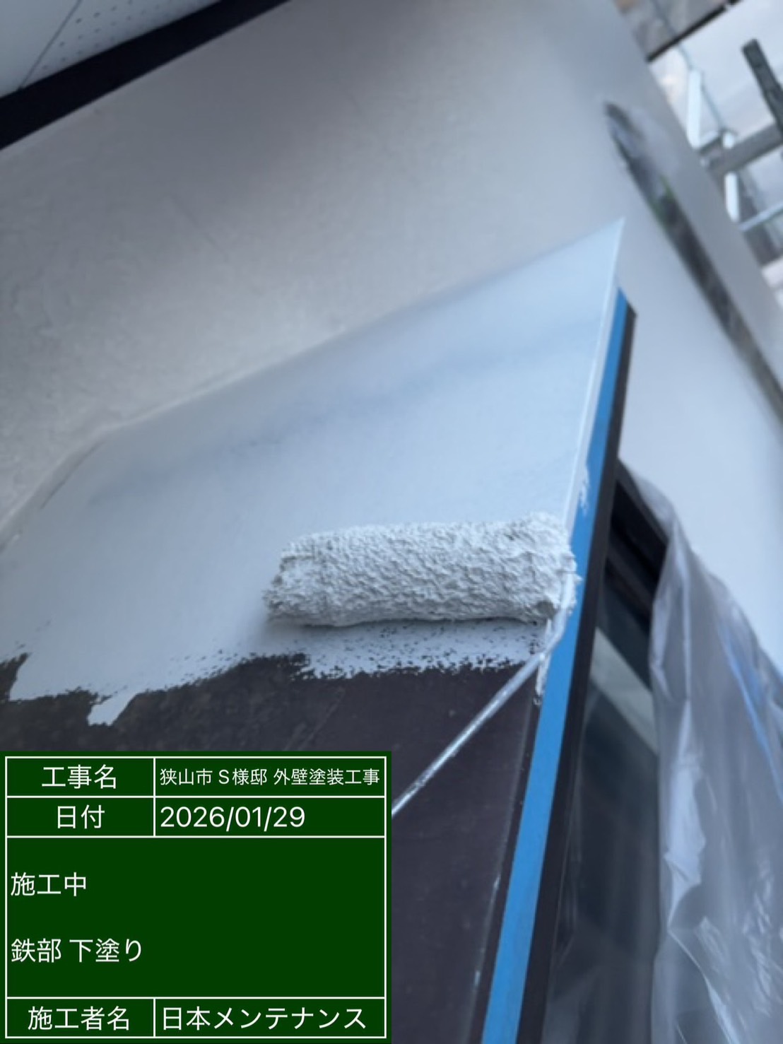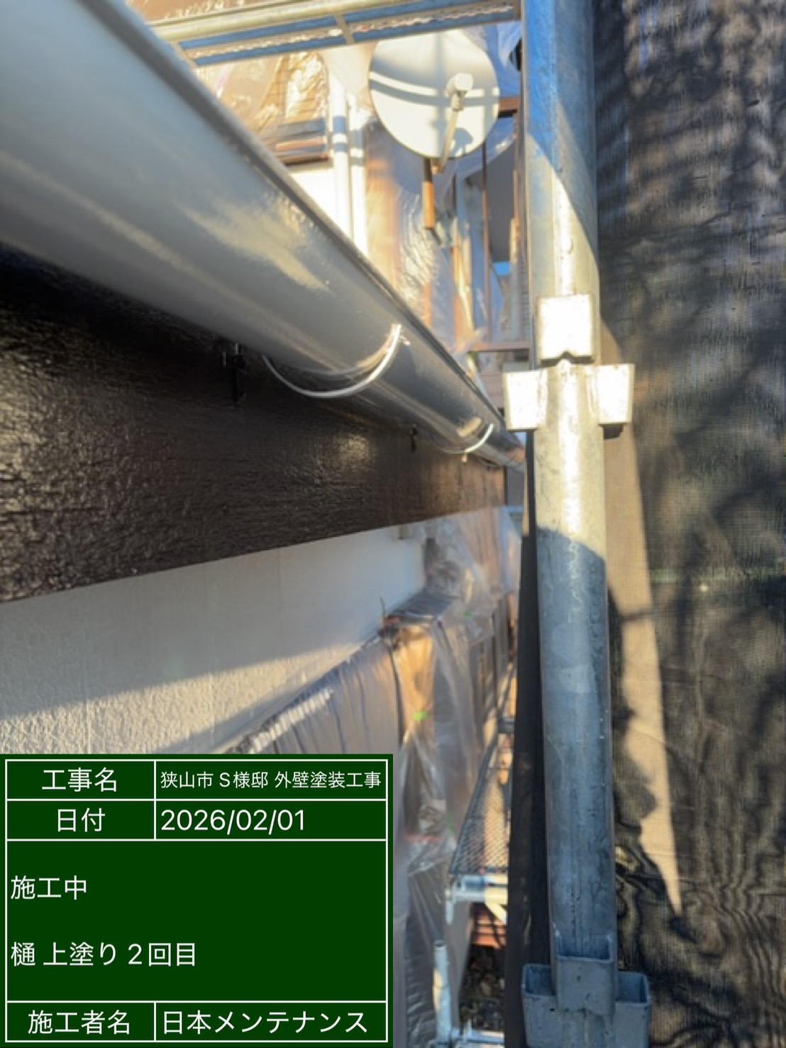 狭山市のS様邸で外壁中塗り、上塗り、鉄部下塗りを行いました!