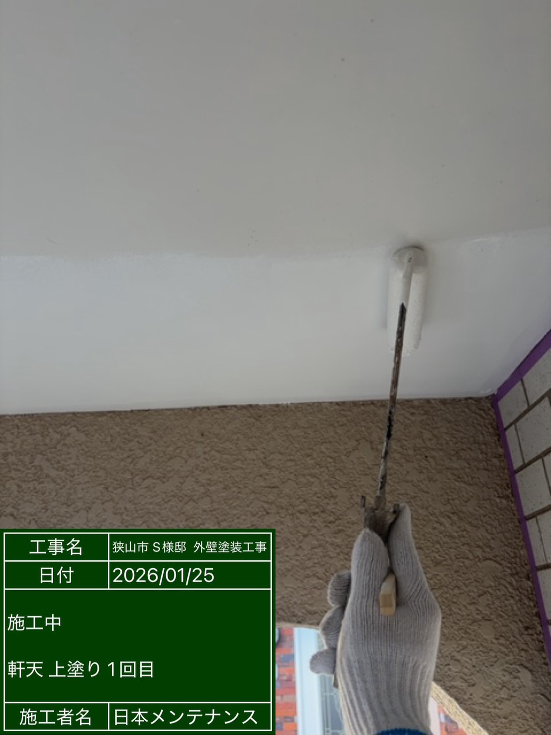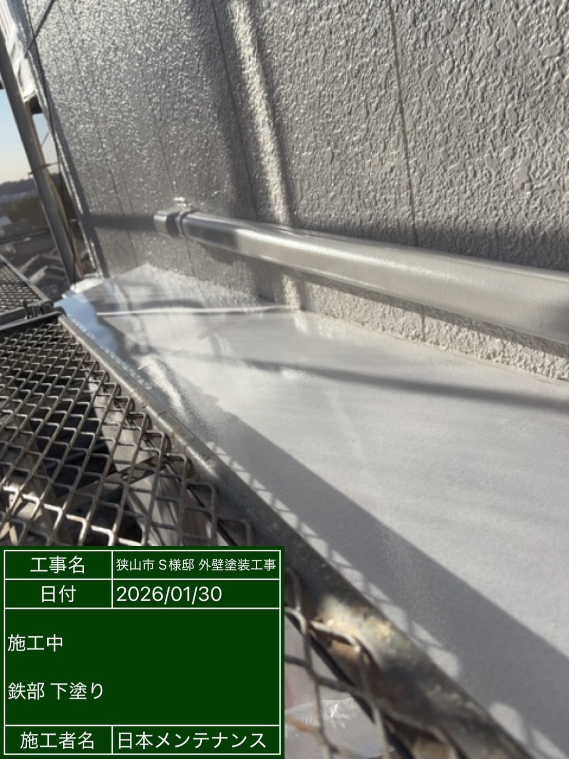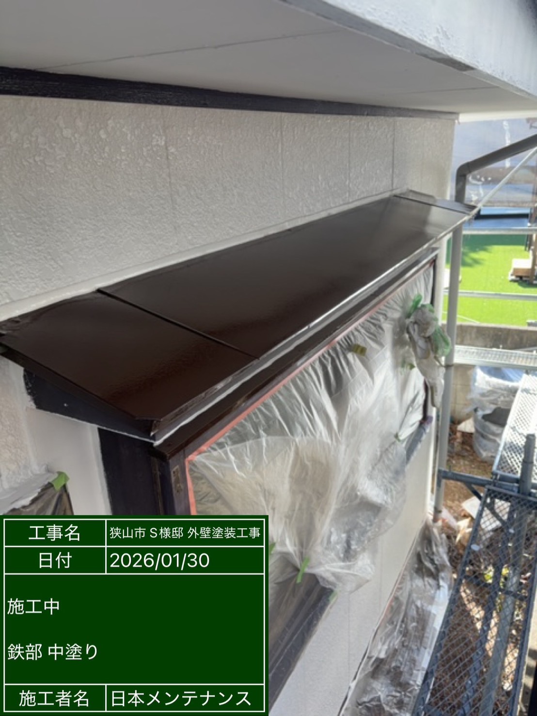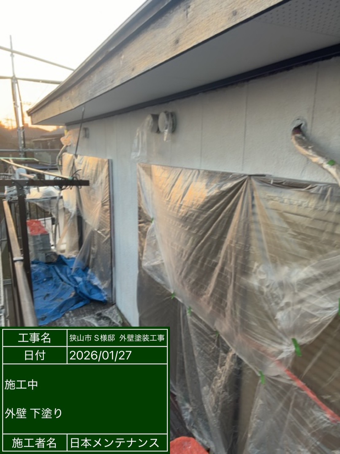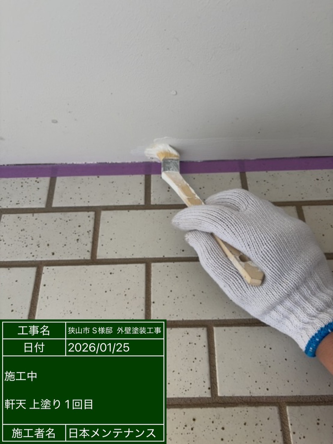 狭山市のS様邸で外壁中塗り、上塗り、鉄部下塗りを行いました!