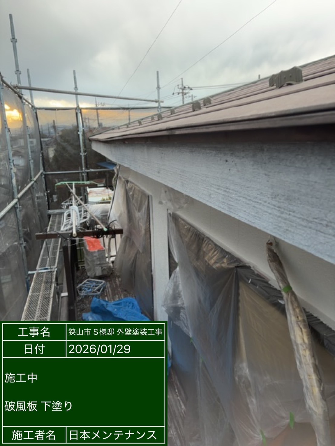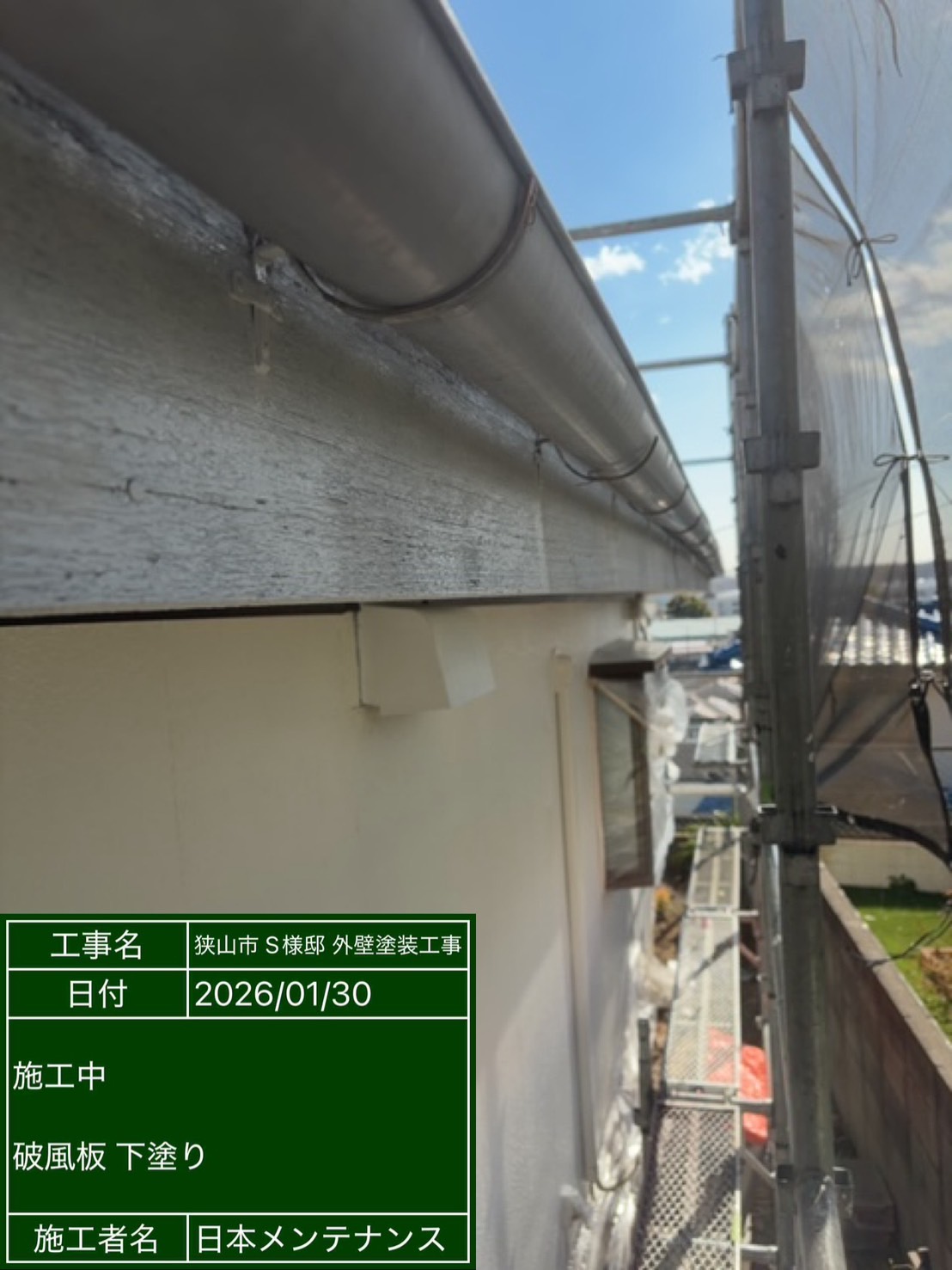狭山市のS様邸で木部塗装と外壁下塗りを行いました!