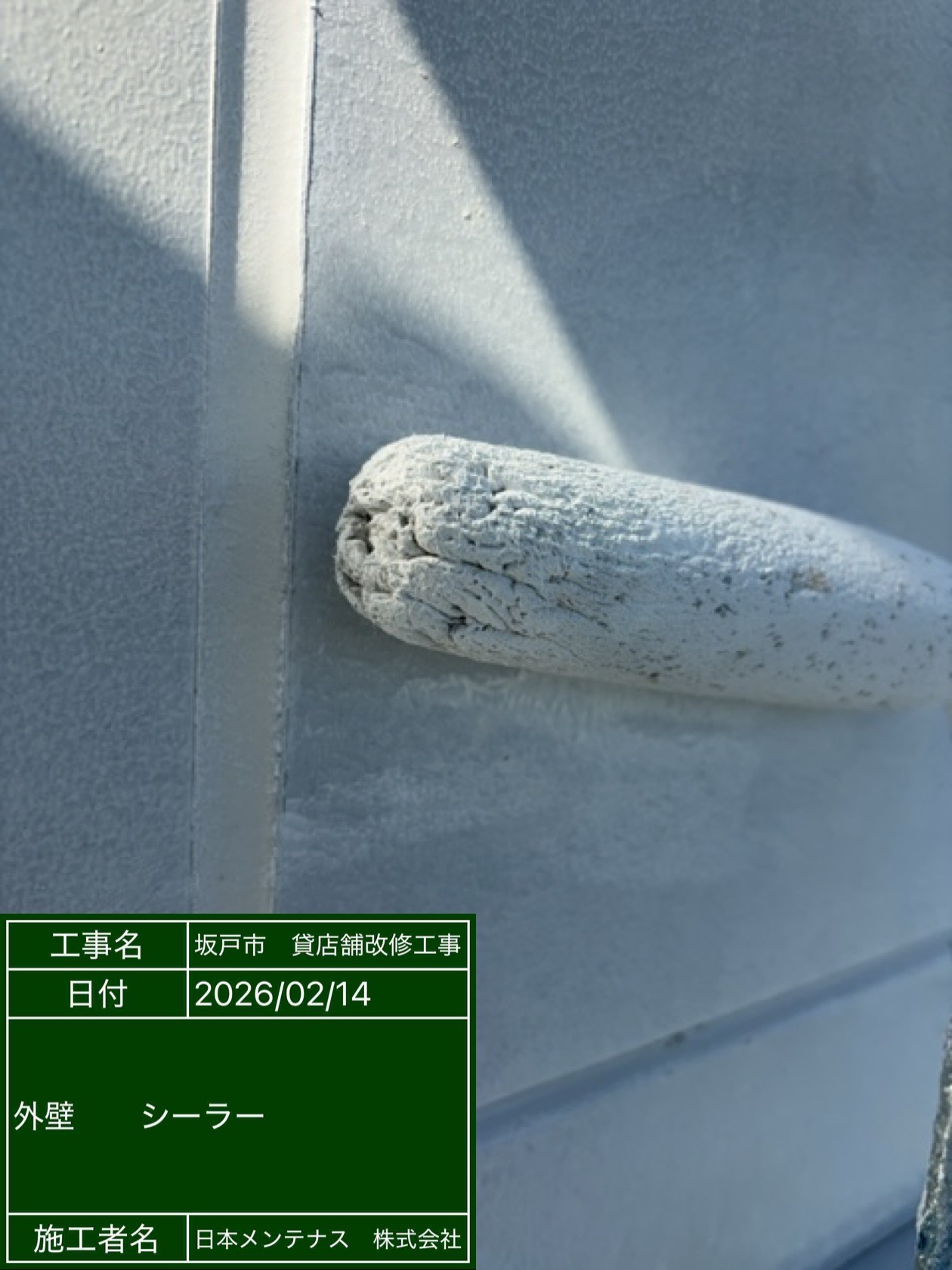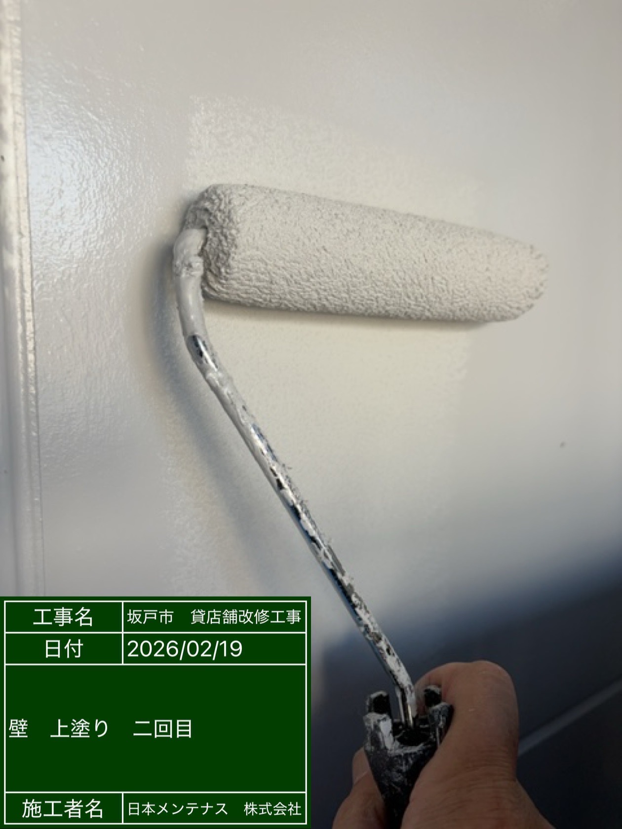 坂戸市の貸店舗で外壁の上塗りを行いました!