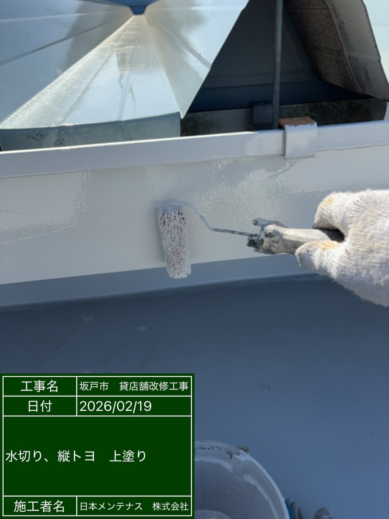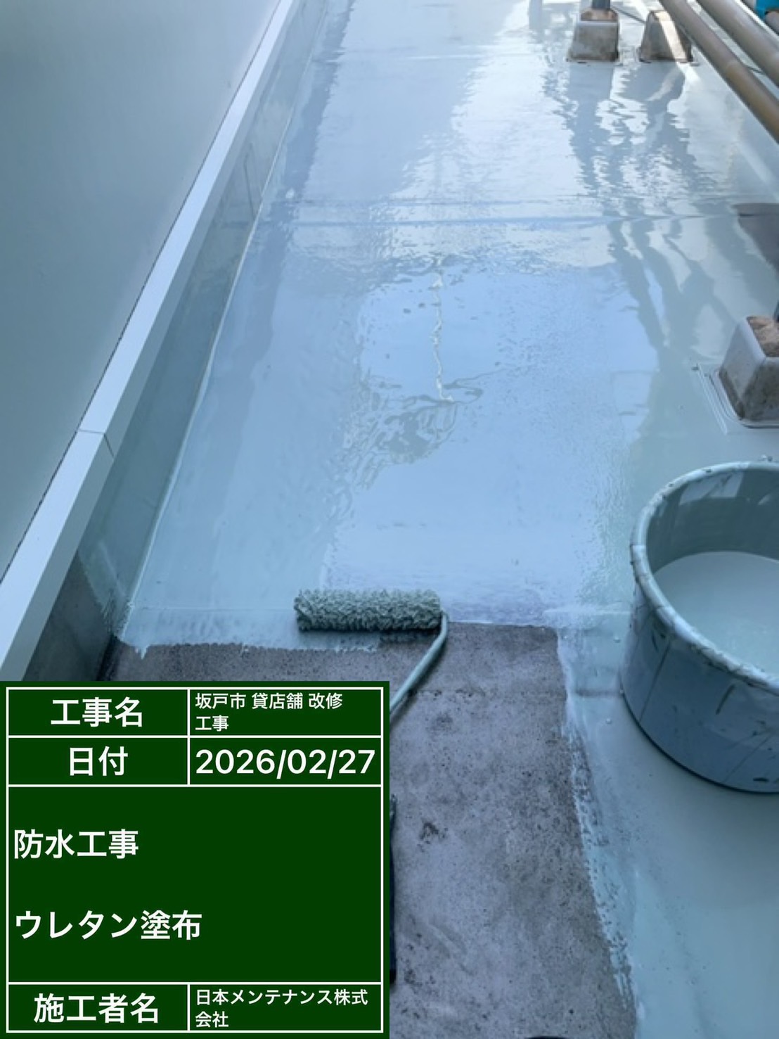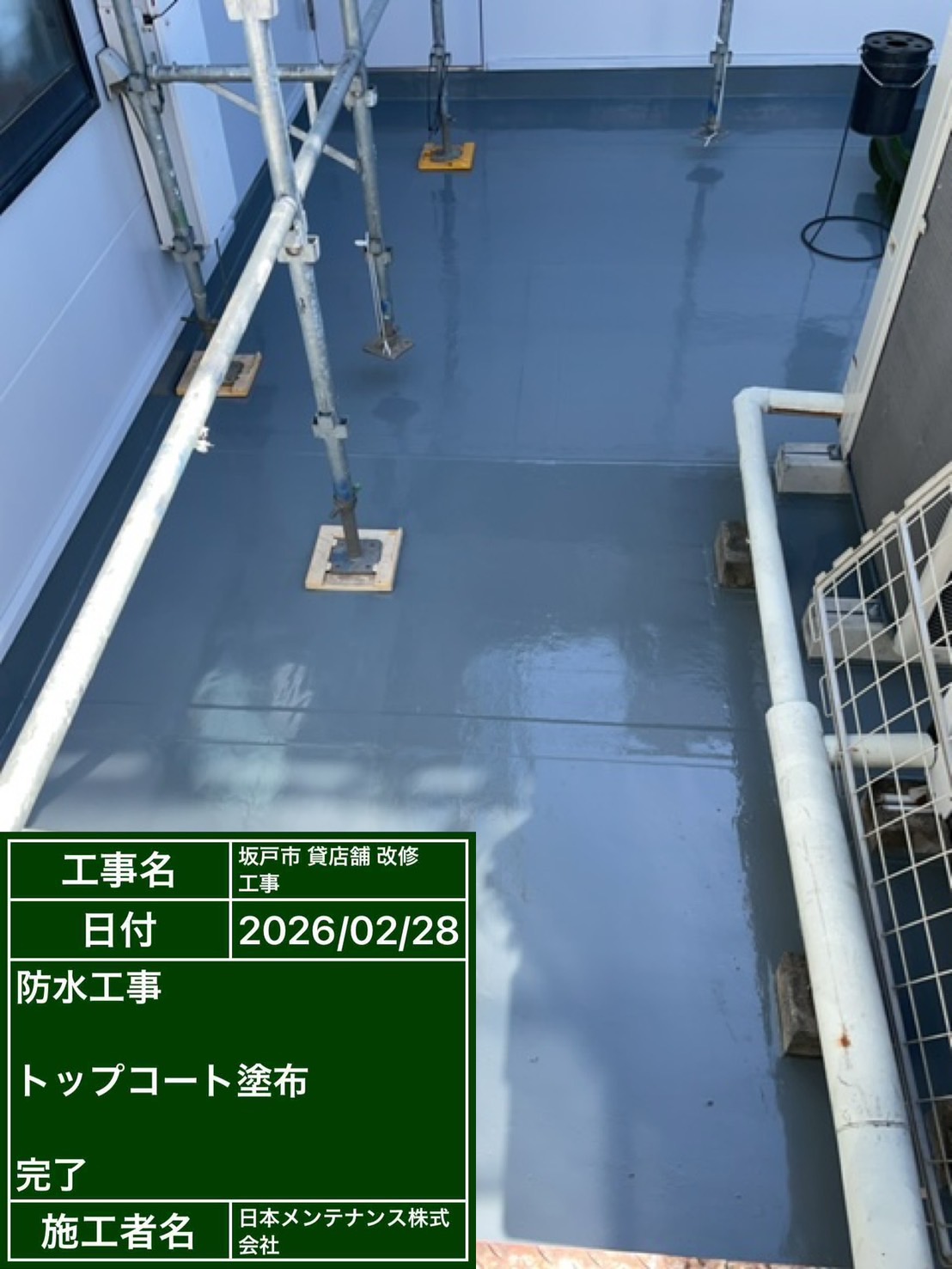 坂戸市の貸店舗で防水のトップコート塗布を行いました!