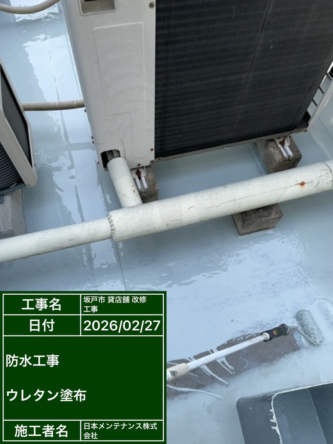 坂戸市の貸店舗で防水のトップコート塗布を行いました!