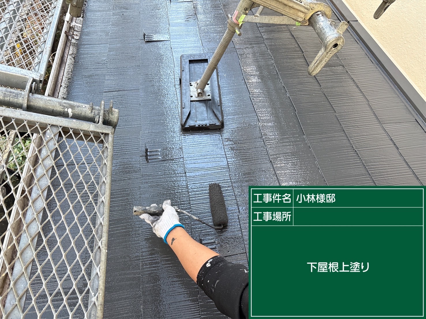 蓮田市のK様邸で屋根下塗り、中塗りを行いました。