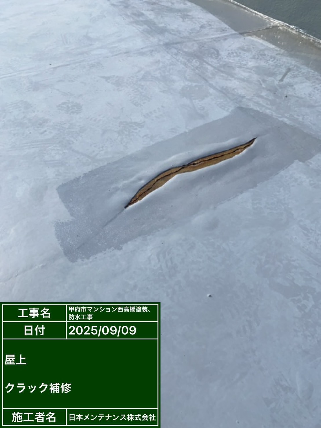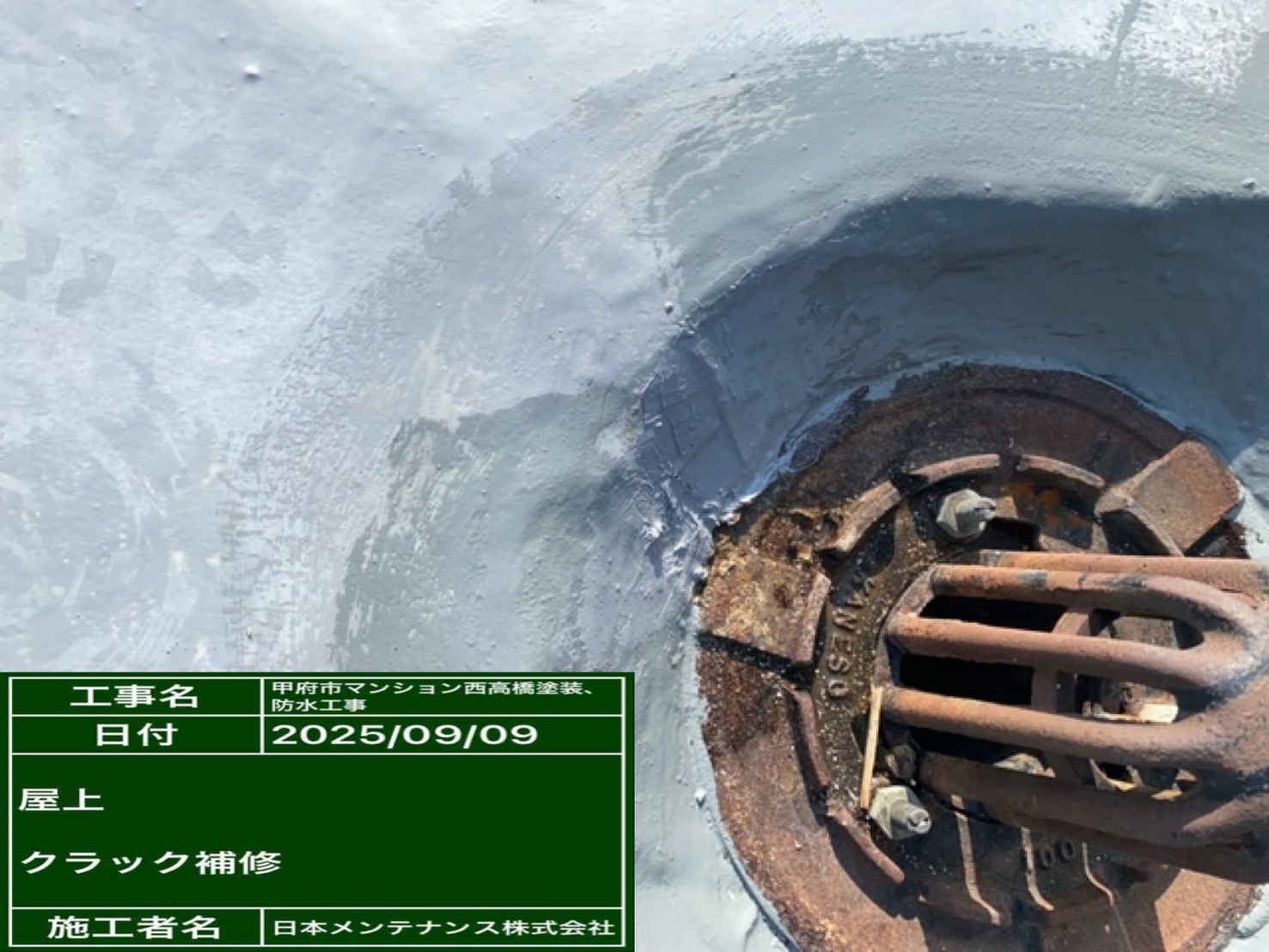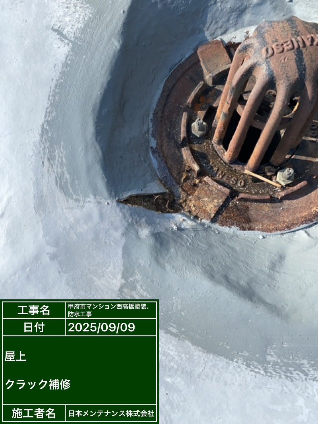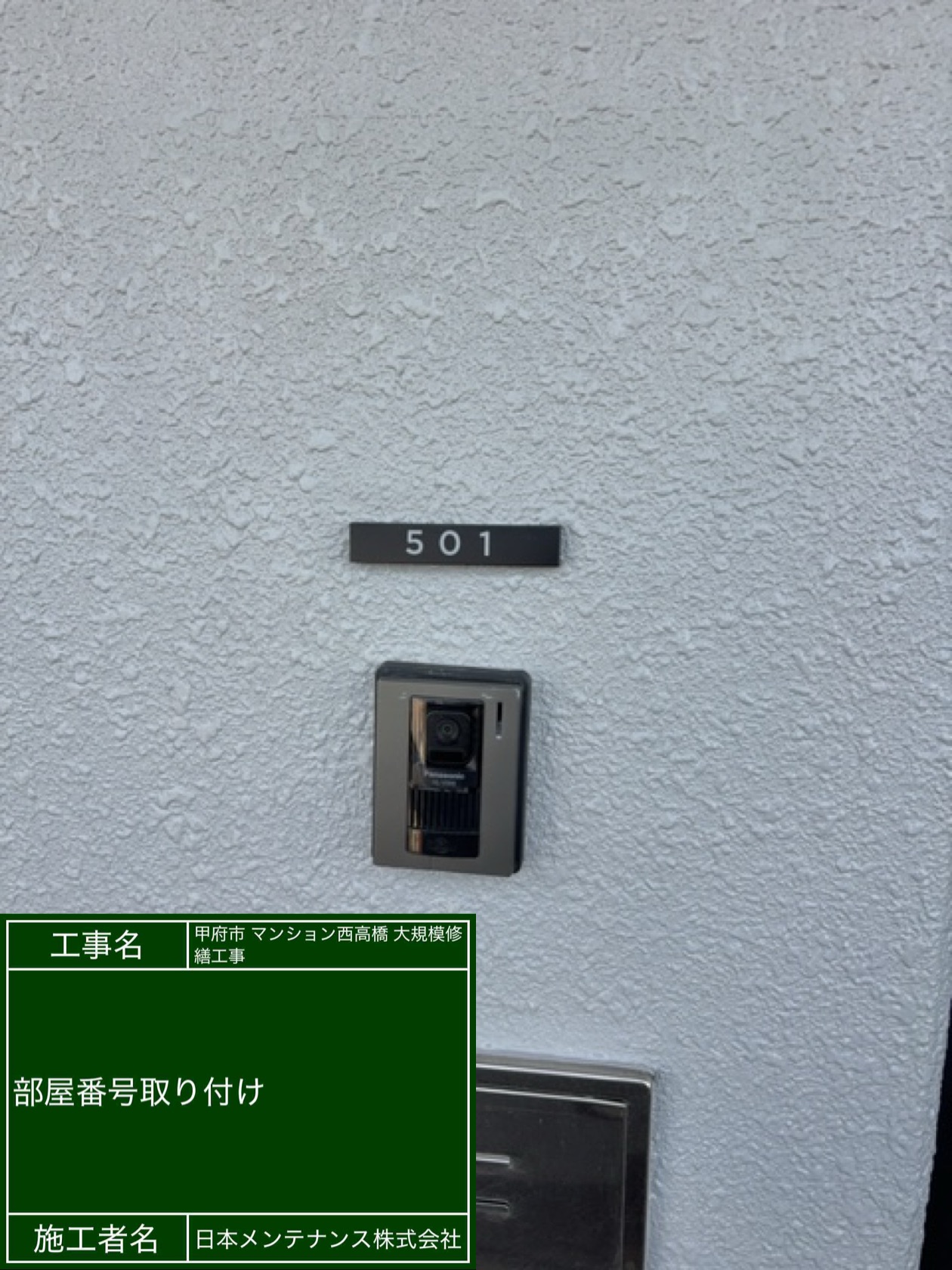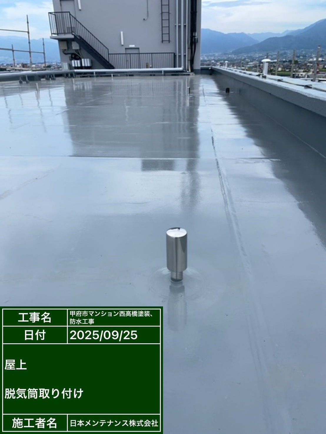 甲府市のマンションでバルコニー防水、屋上脱気筒取付、部屋番号プレート取付、外通路防水を行いました!