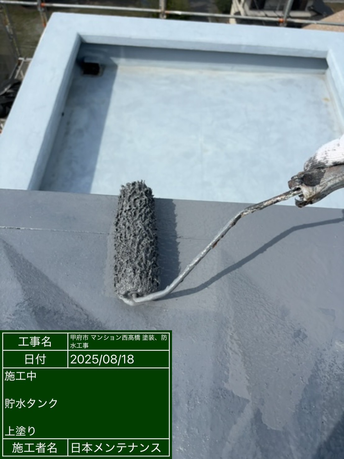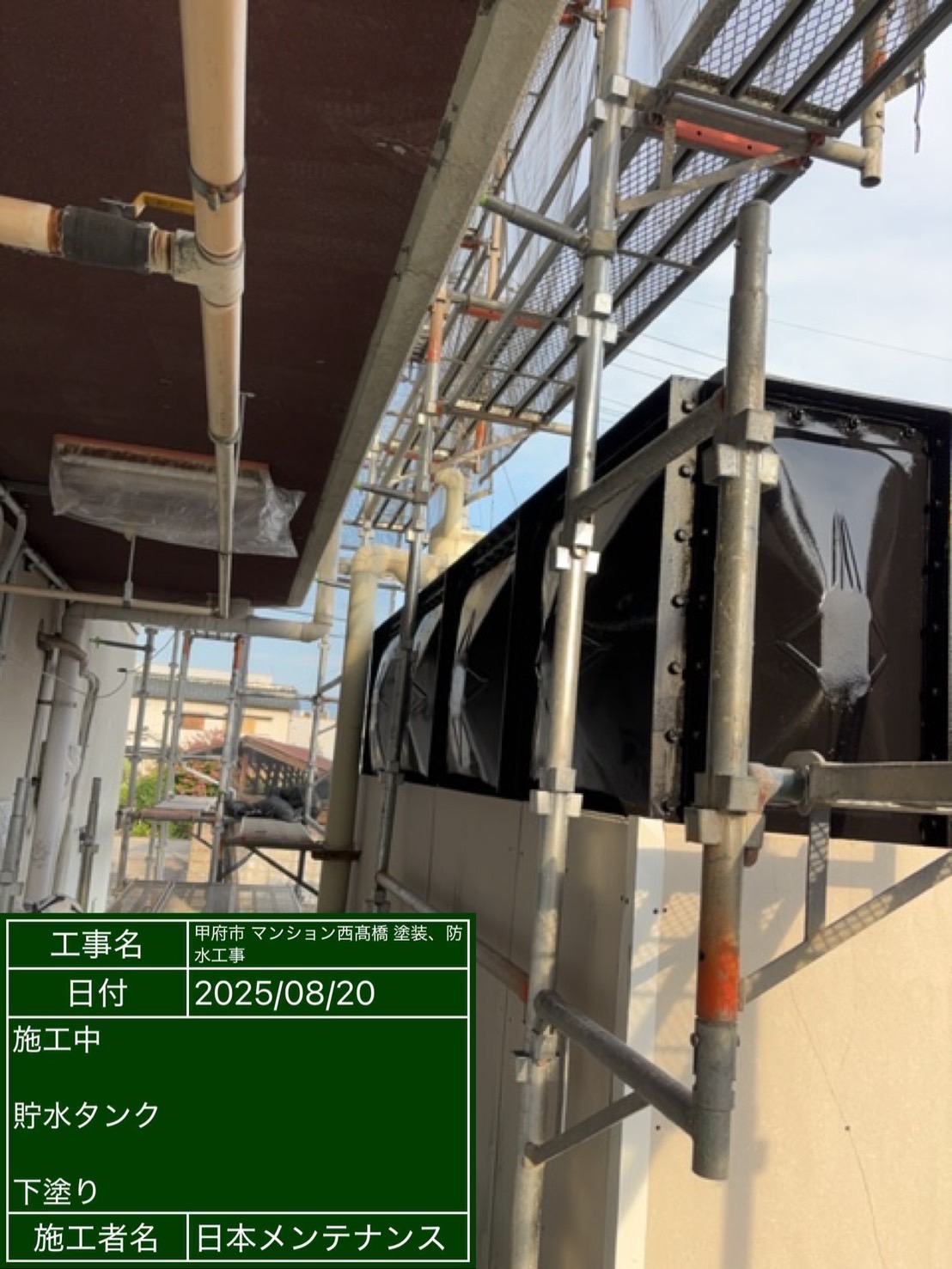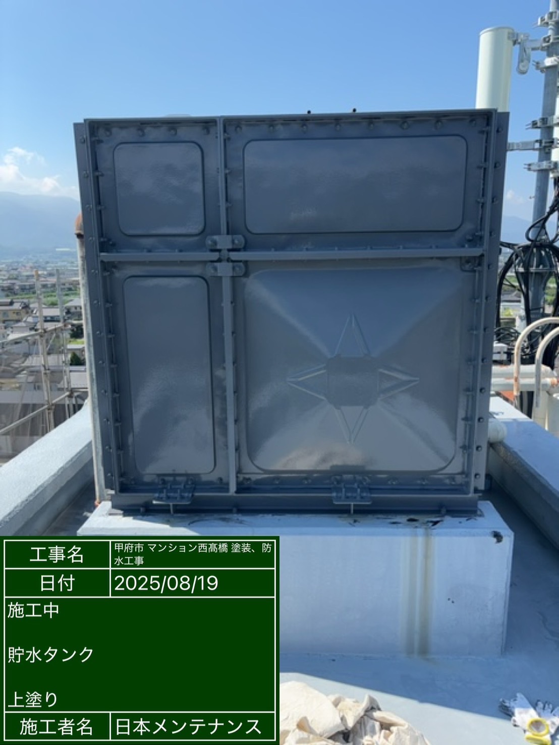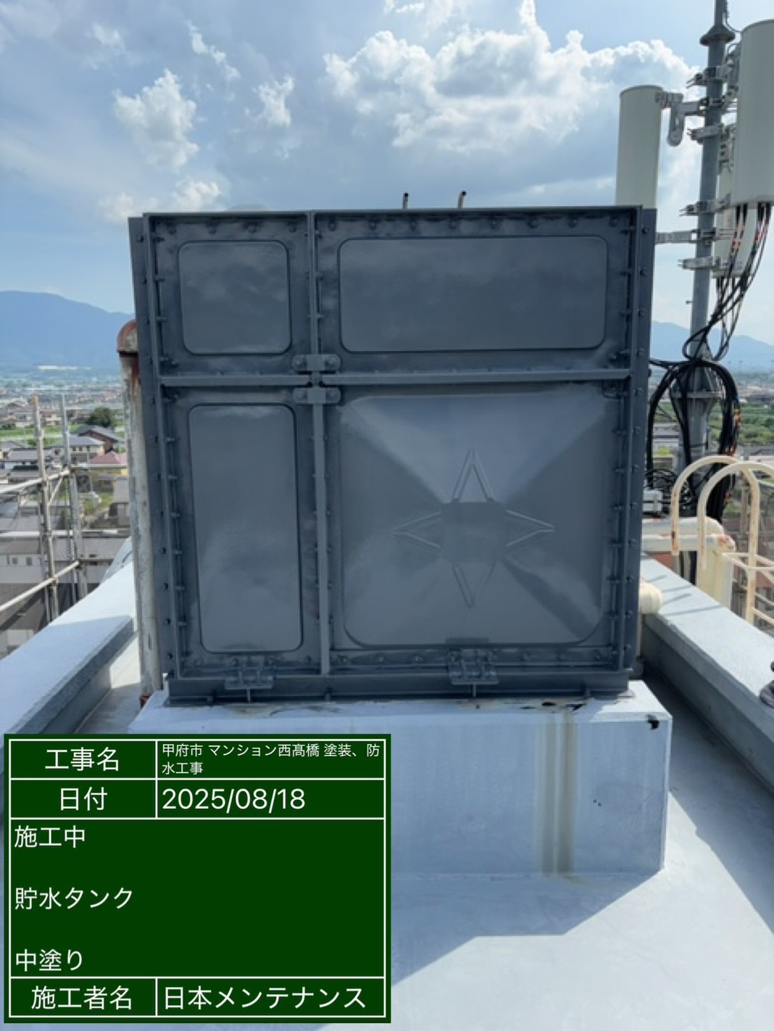 甲府市のマンションで高圧洗浄、受水タンク下塗り、鉄部下塗りを行いました!