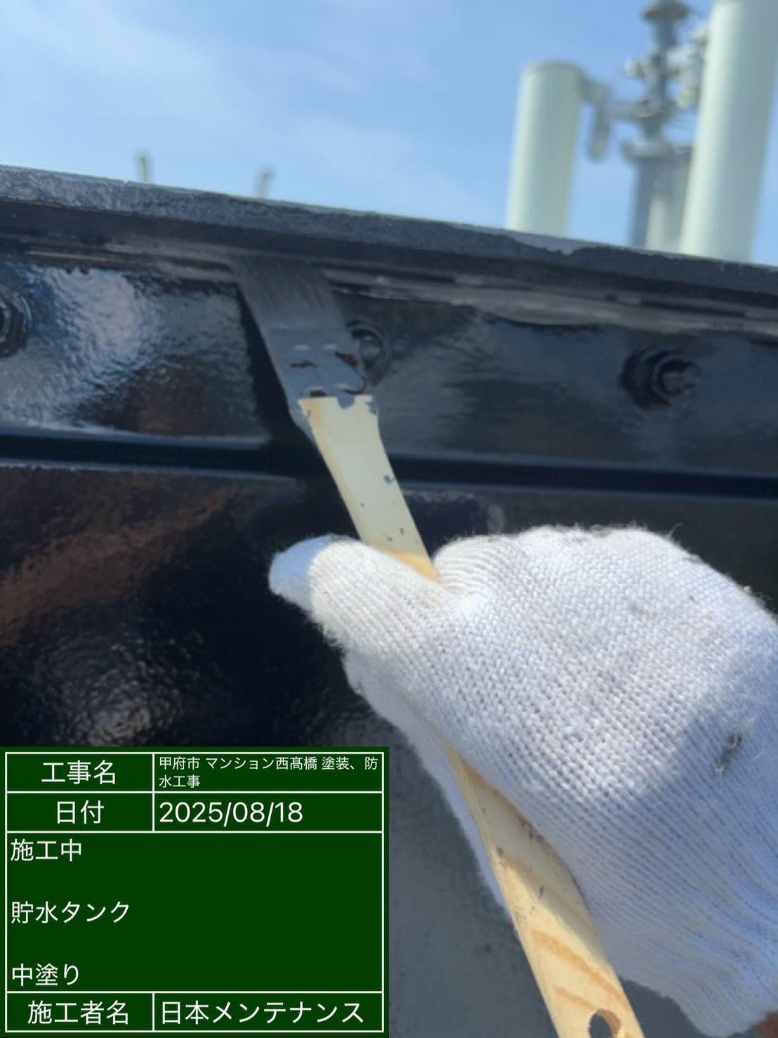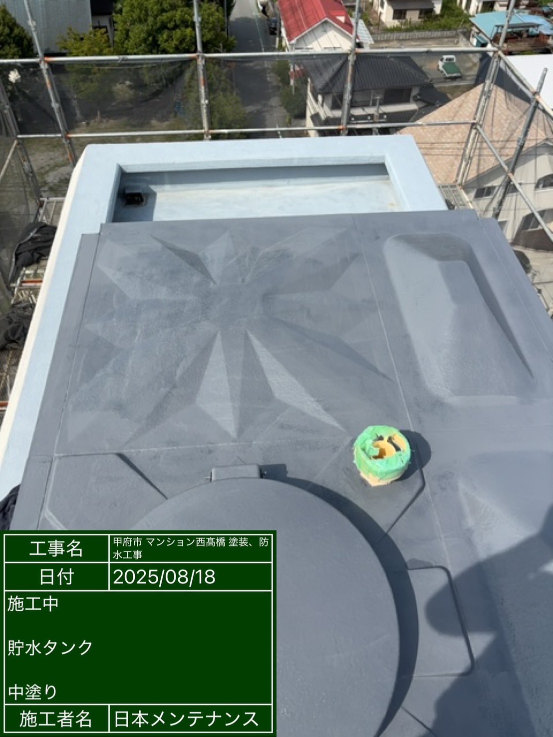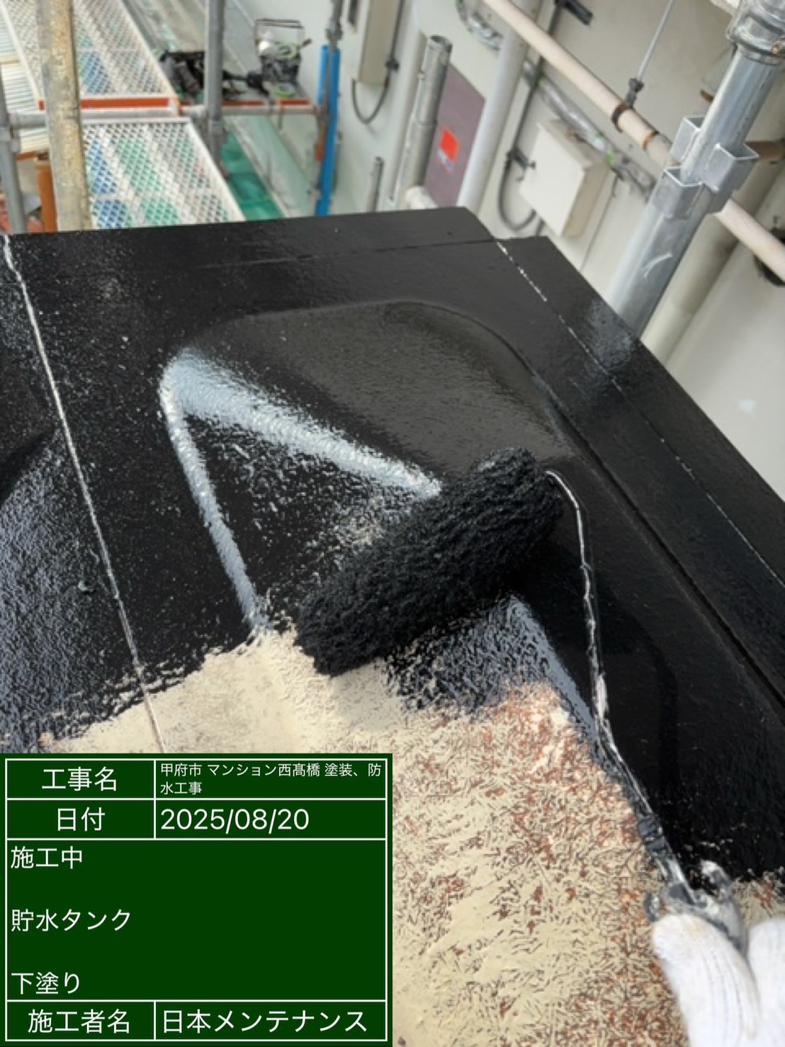 甲府市のマンションで高圧洗浄、受水タンク下塗り、鉄部下塗りを行いました!