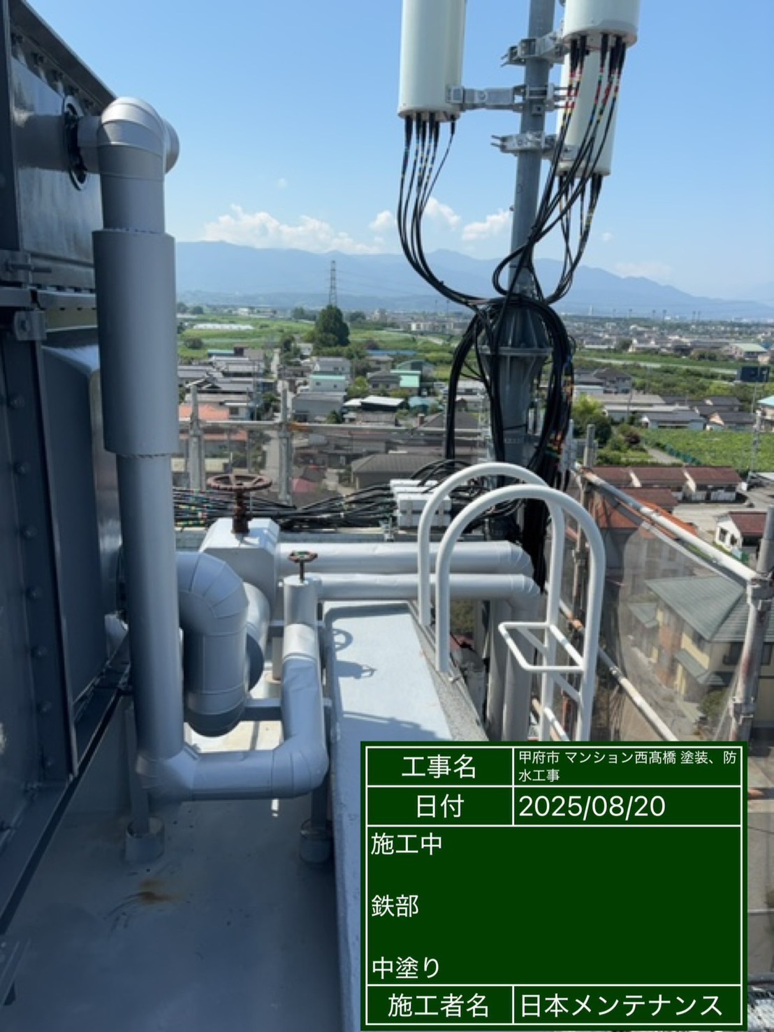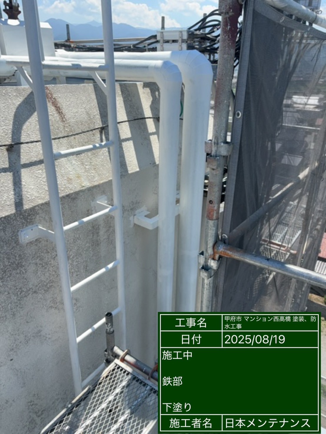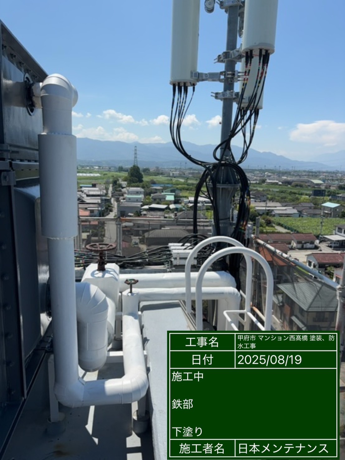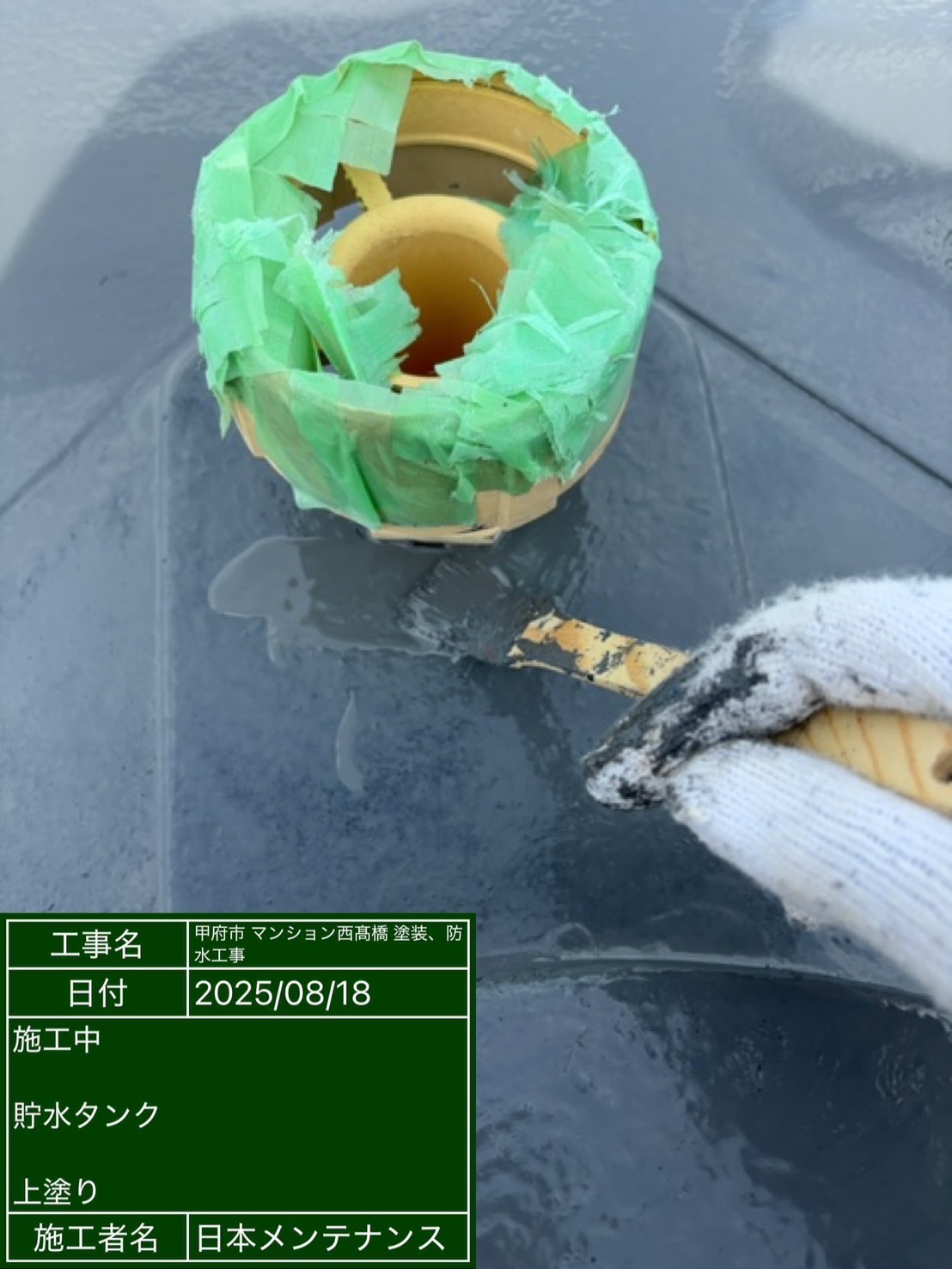 甲府市のマンションで高圧洗浄、受水タンク下塗り、鉄部下塗りを行いました!