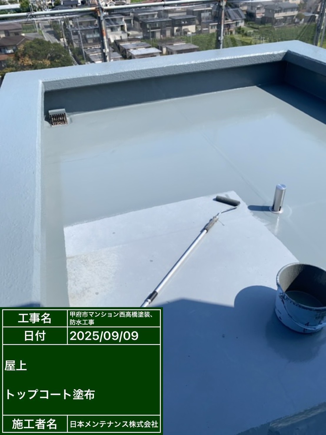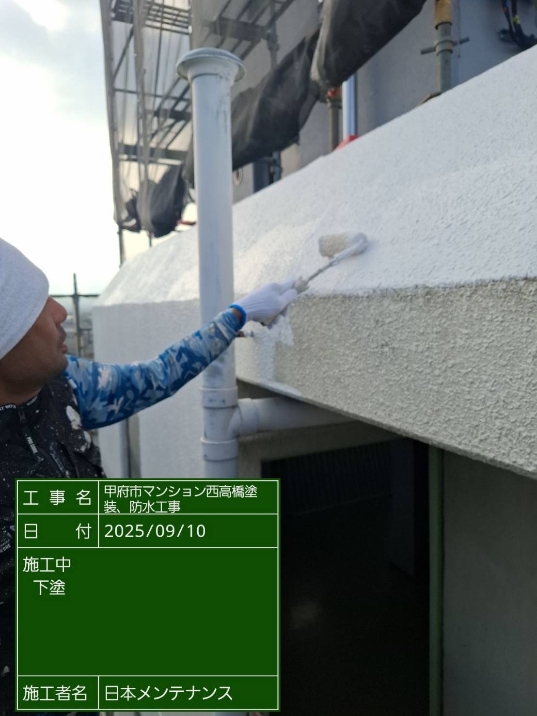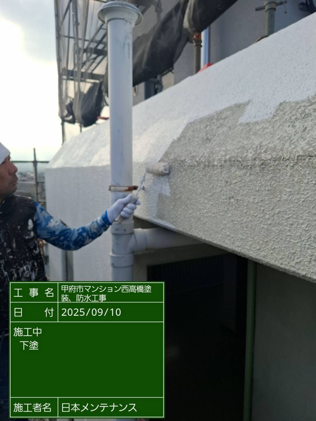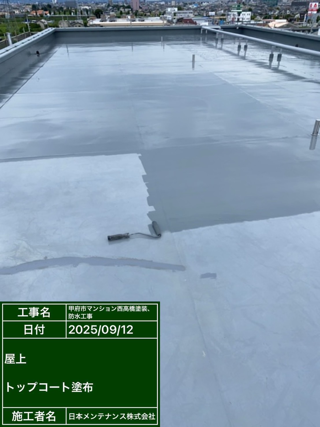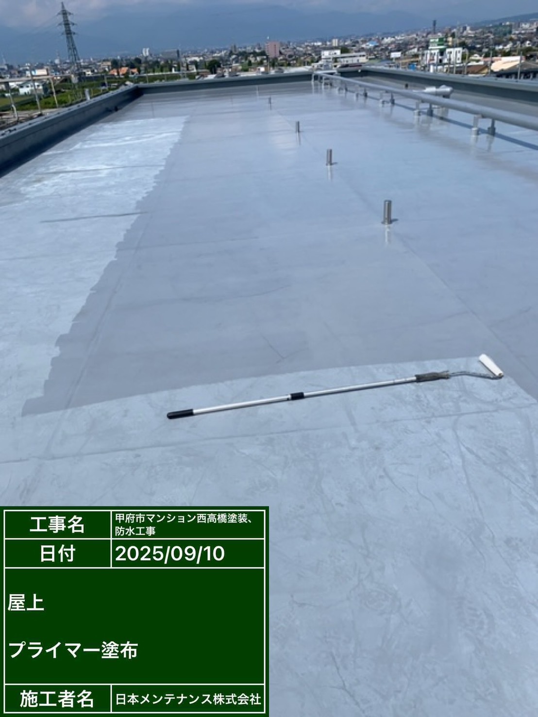 甲府市のマンションで外壁下塗り、屋上トップコートを行いました!