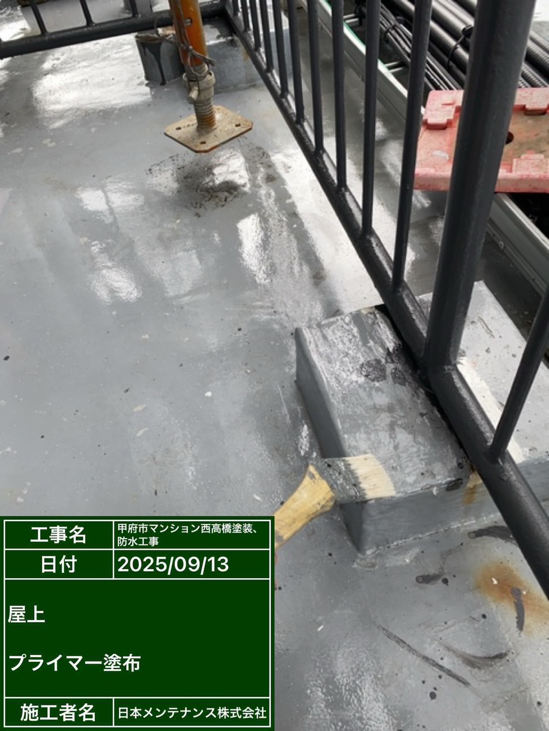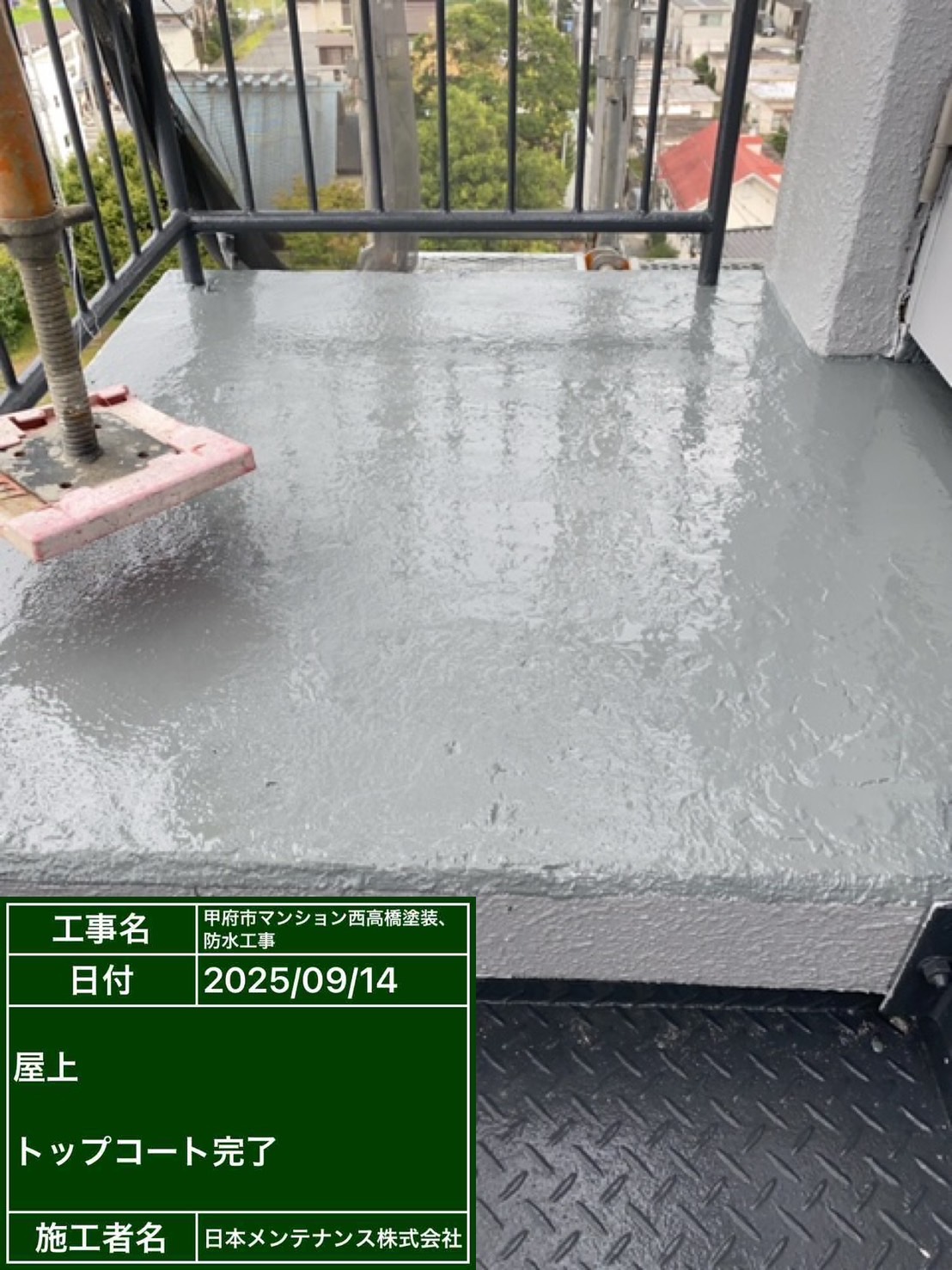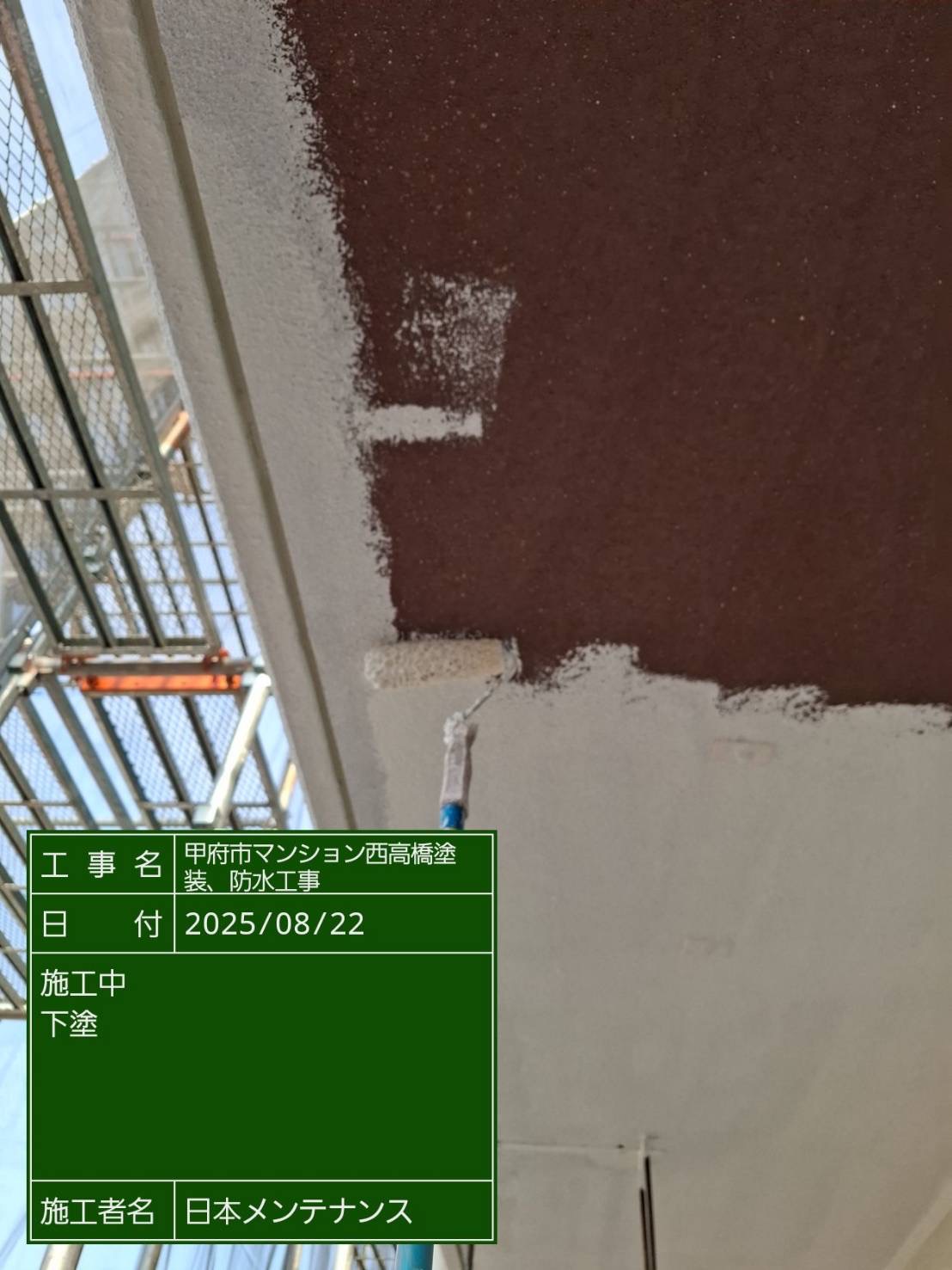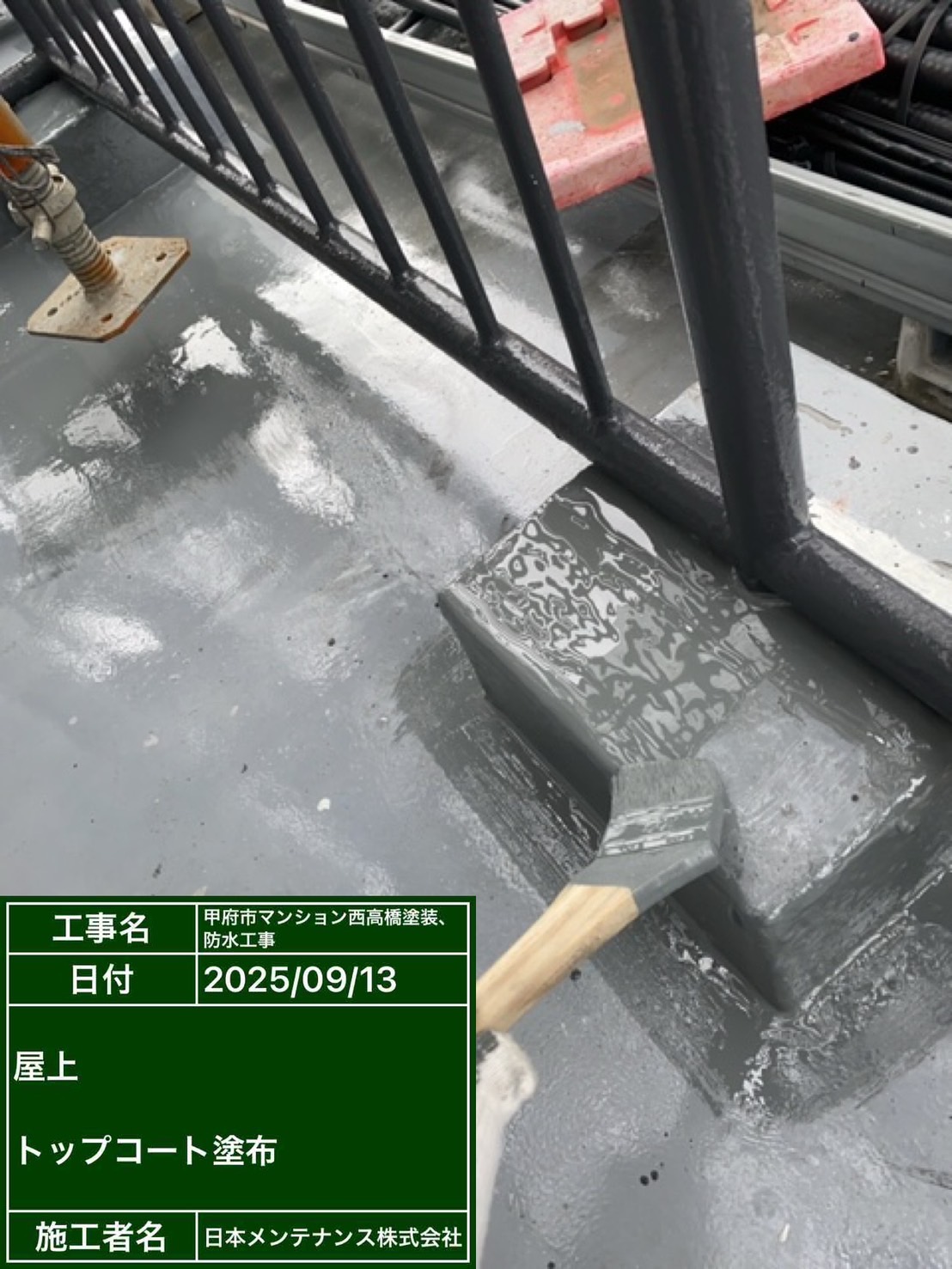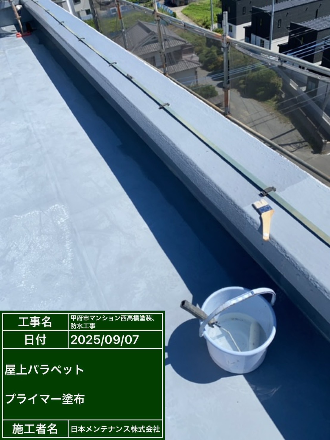 甲府市のマンションで外壁下塗り、屋上トップコートを行いました!