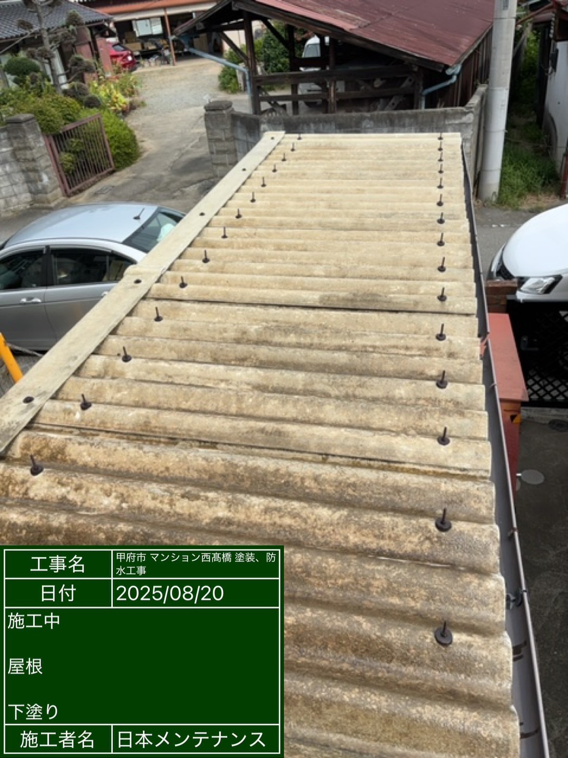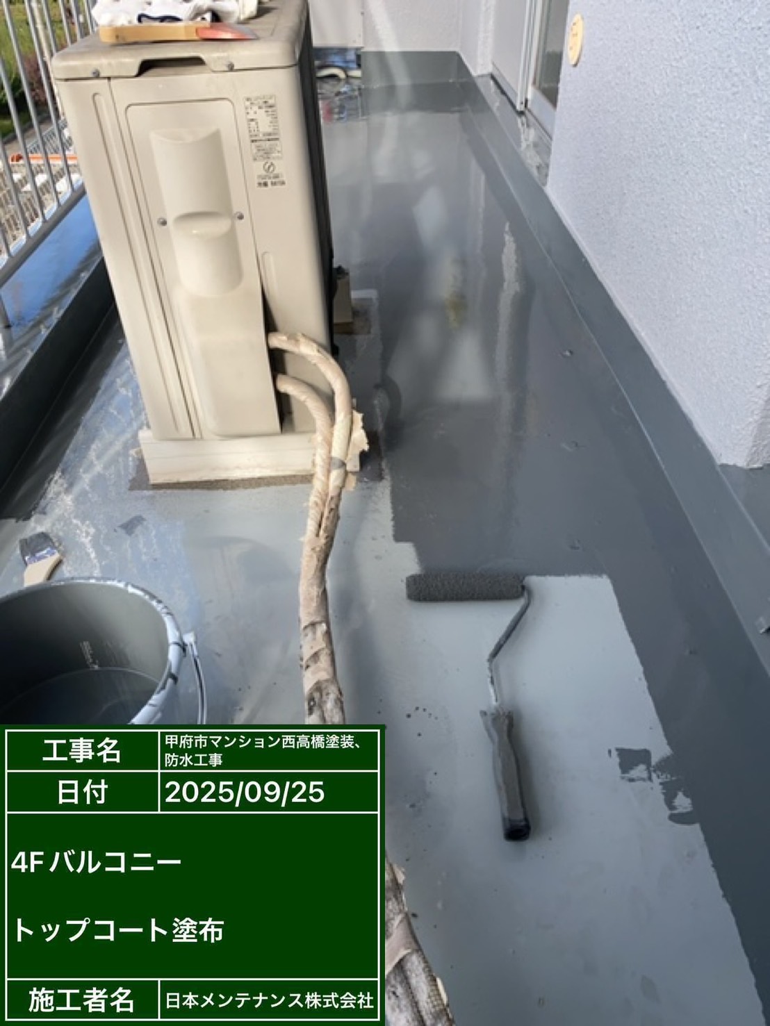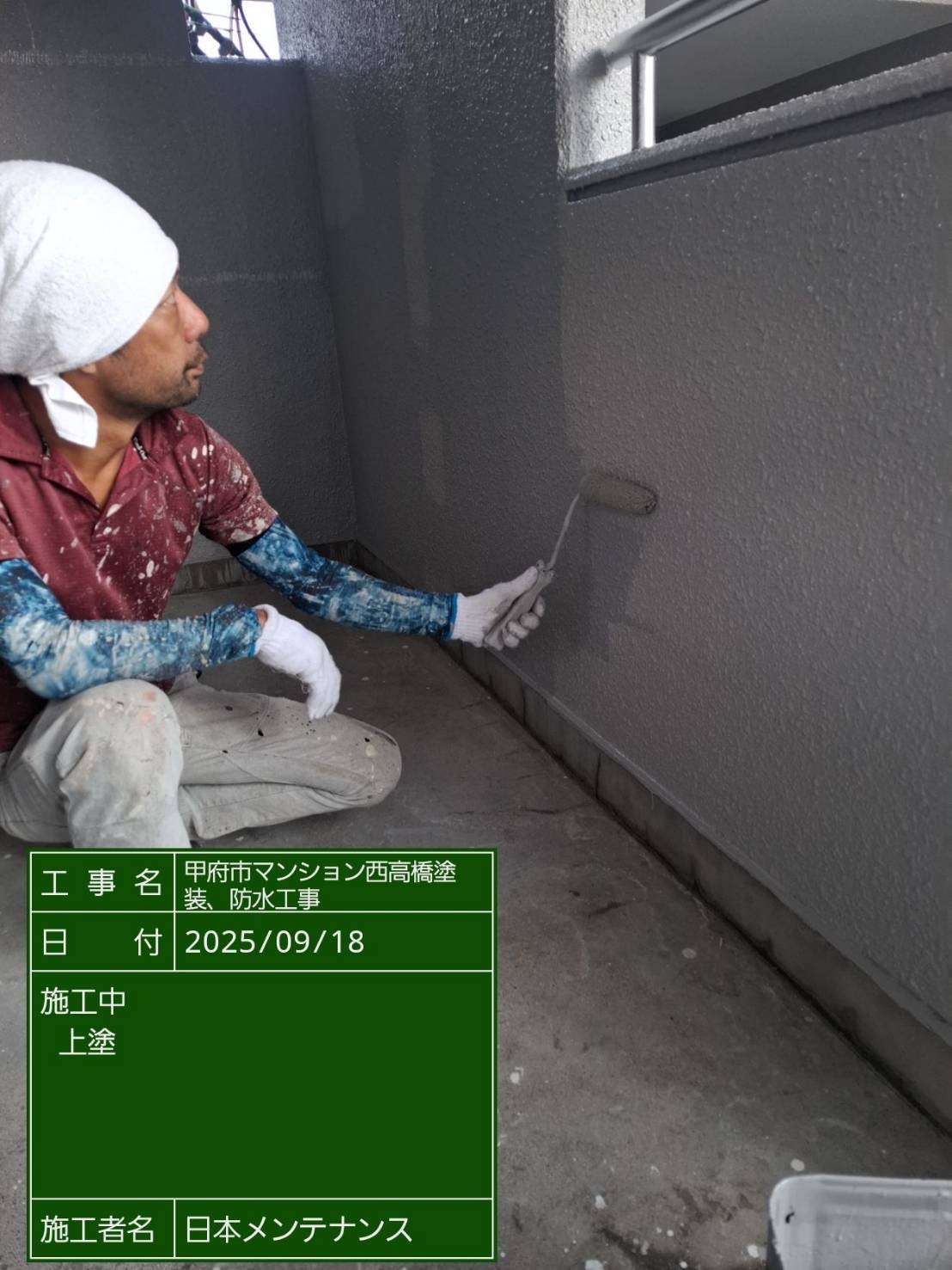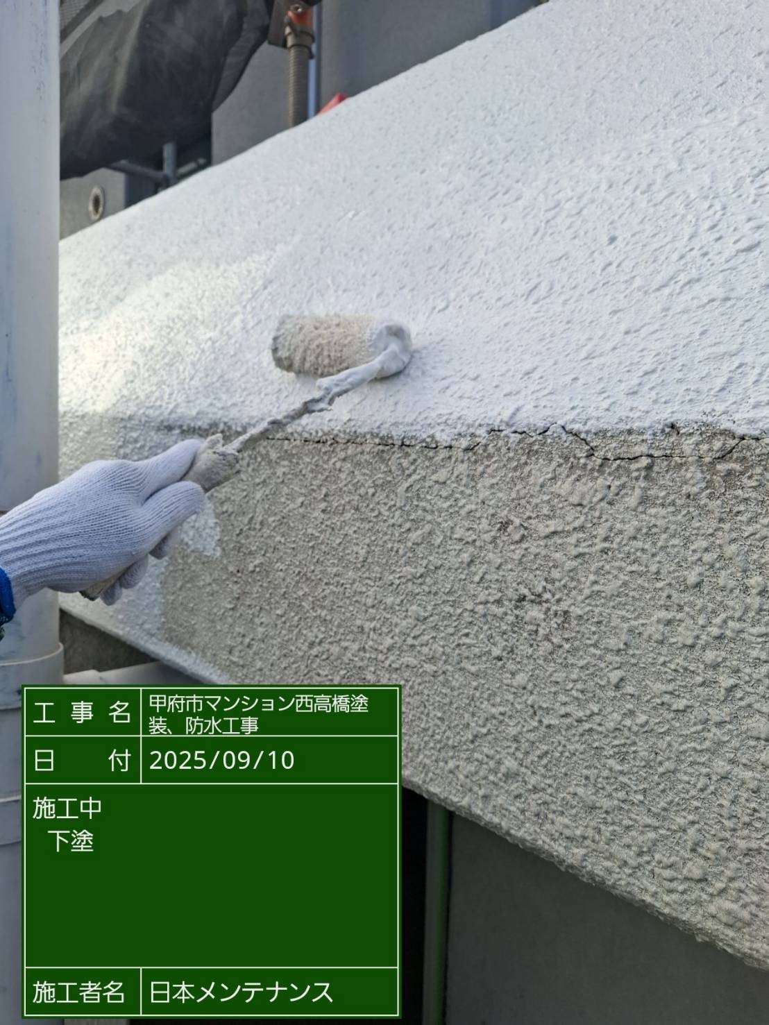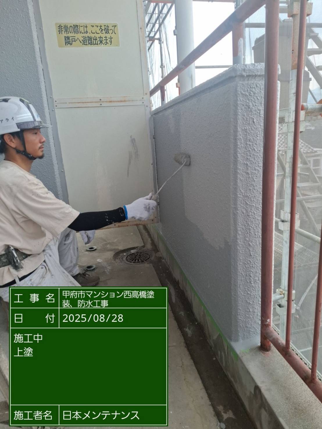 甲府市のマンションで外壁下塗り、屋上トップコートを行いました!