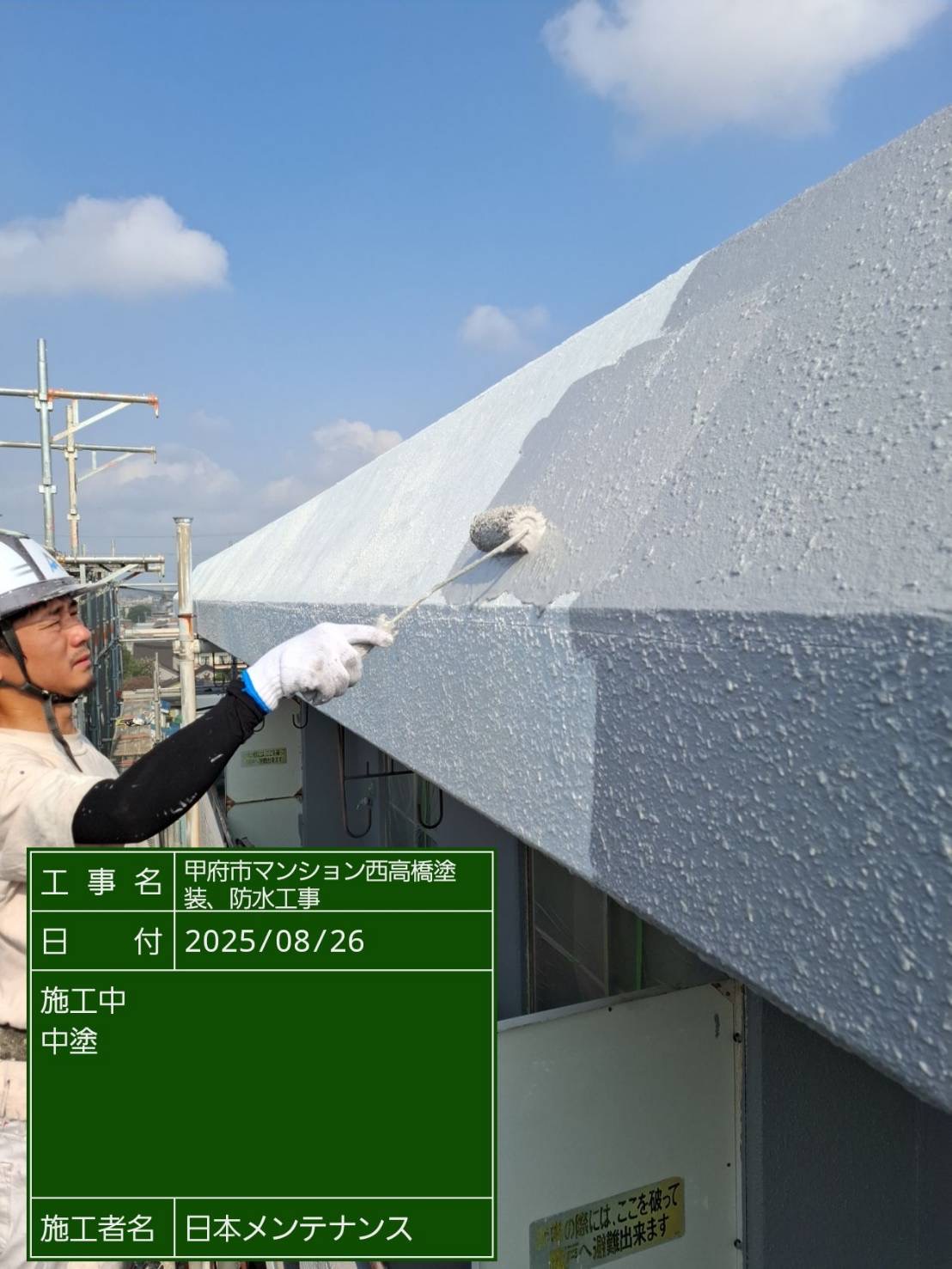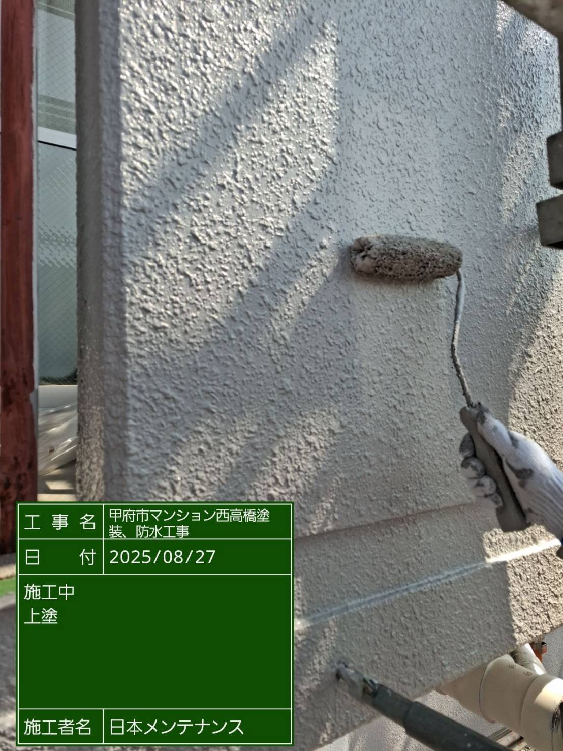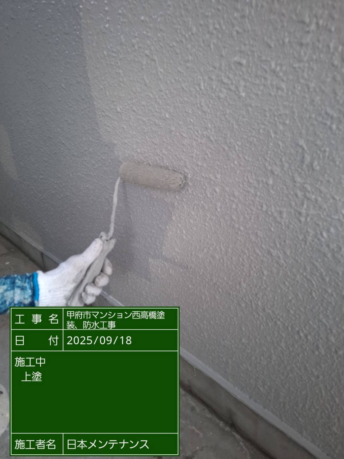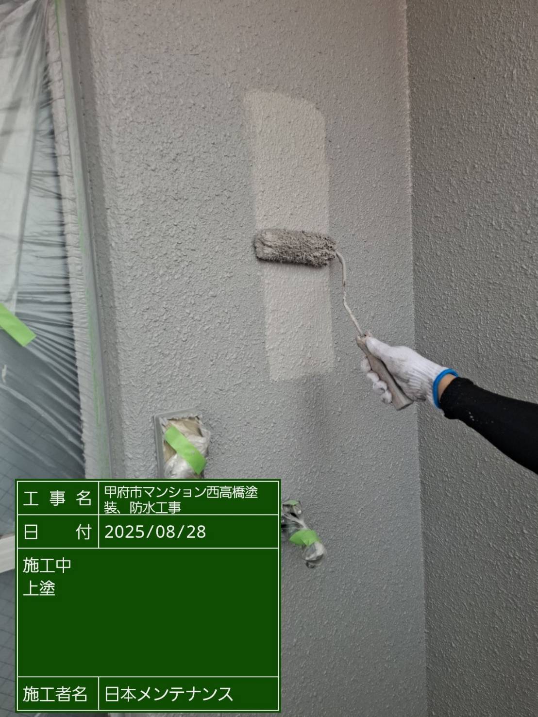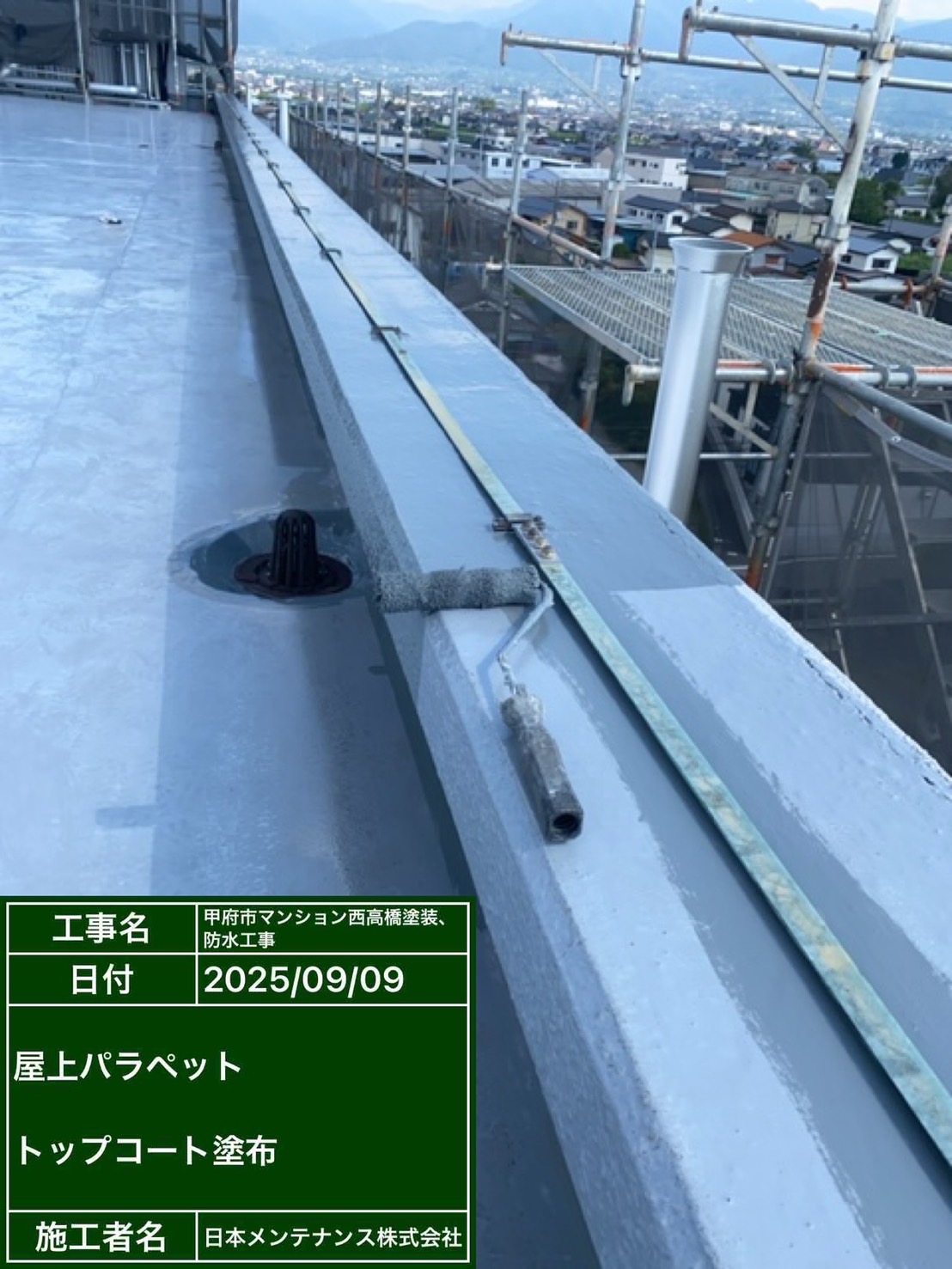 甲府市のマンションで外壁下塗り、屋上トップコートを行いました!