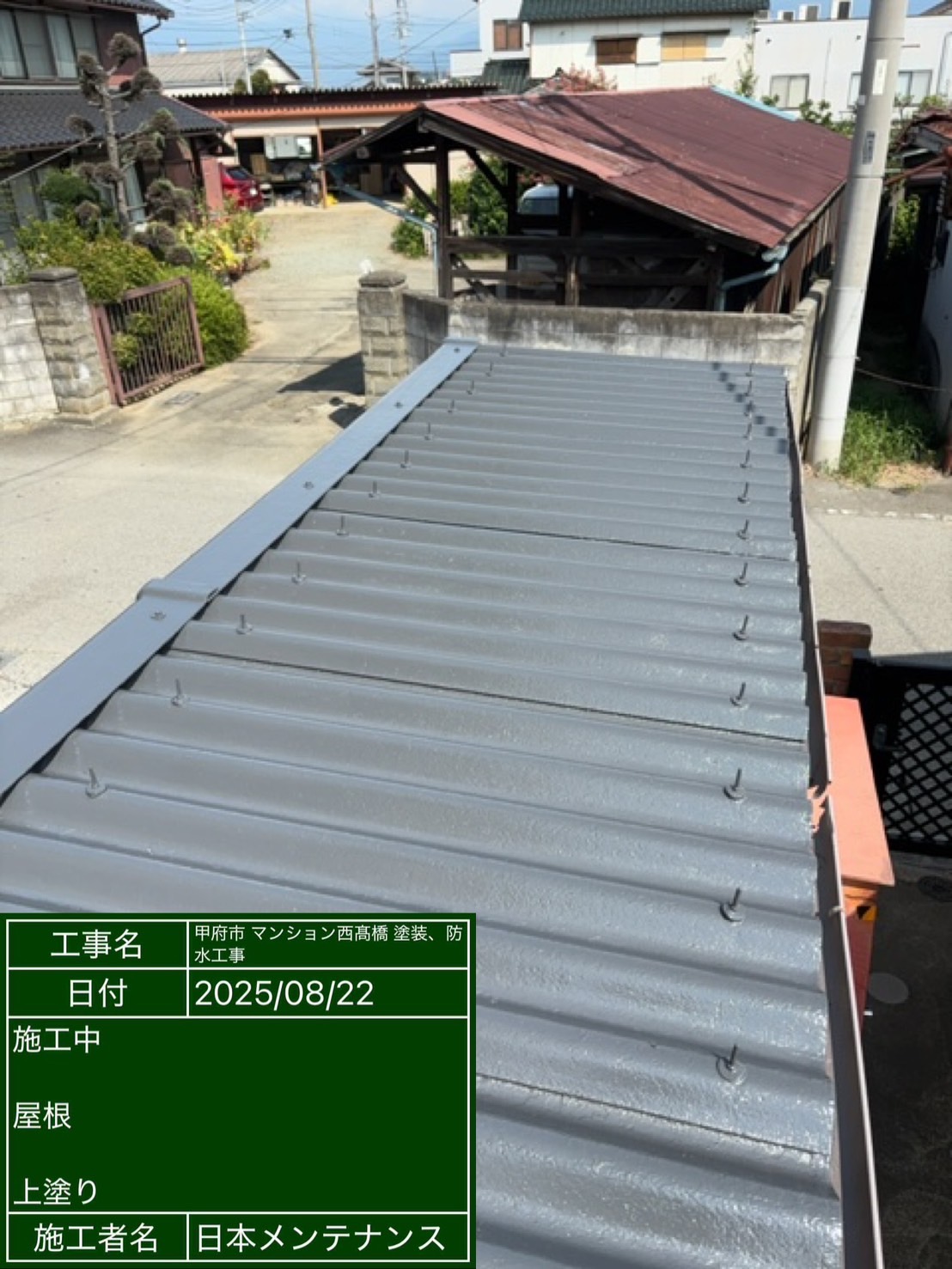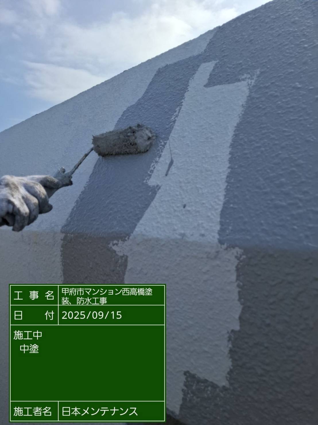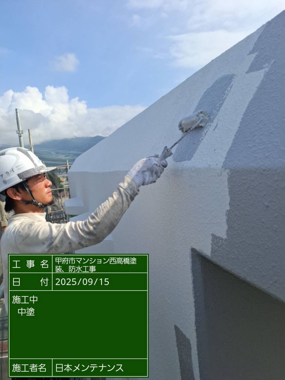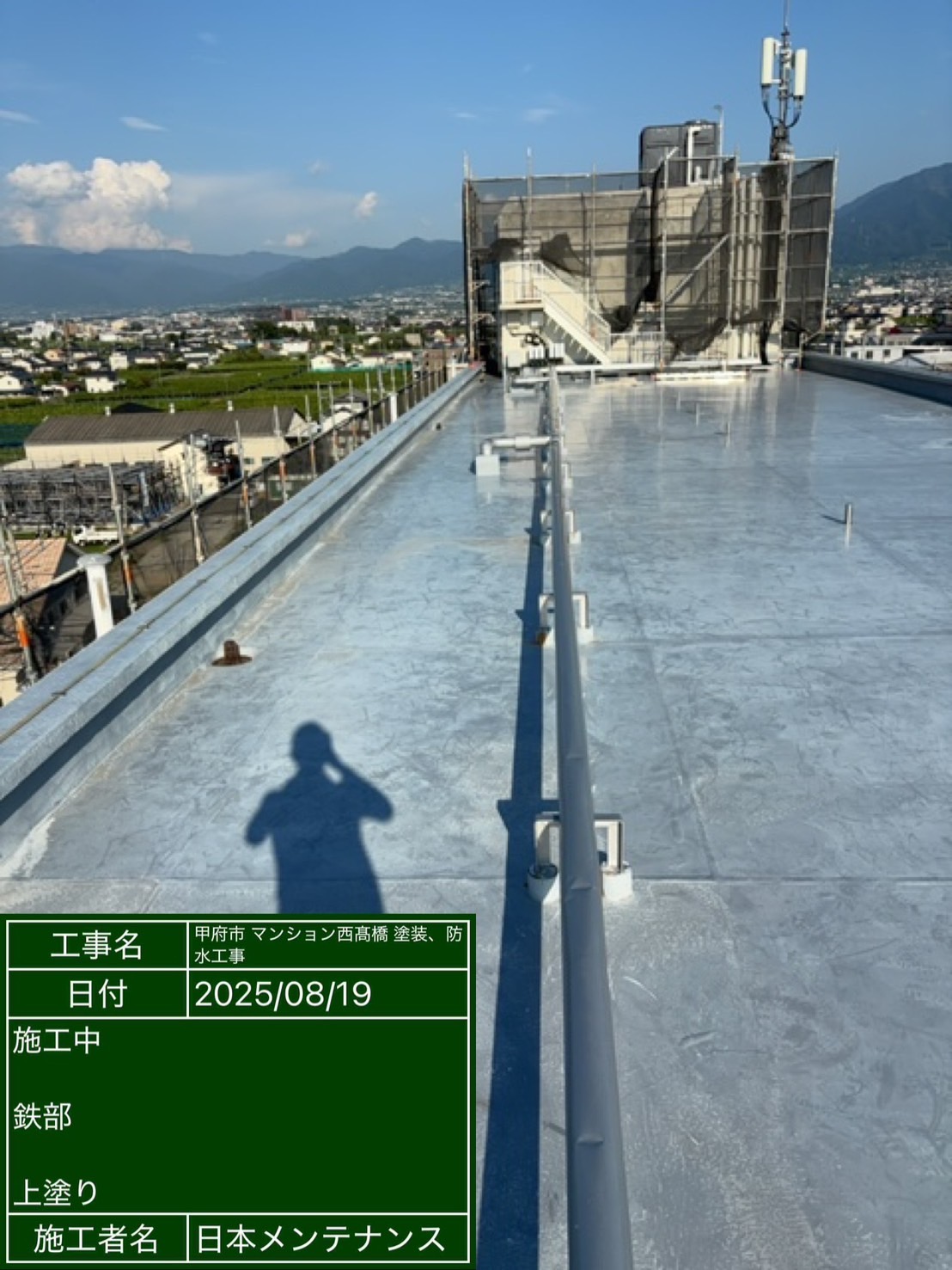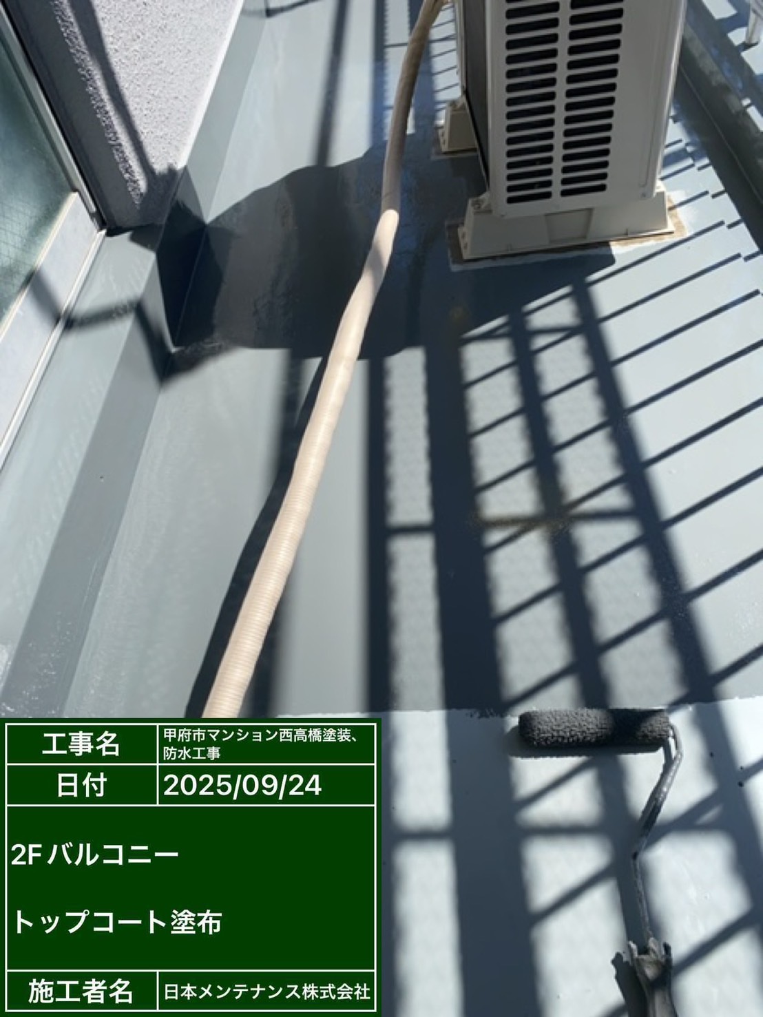 甲府市のマンションで外壁下塗り、屋上トップコートを行いました!