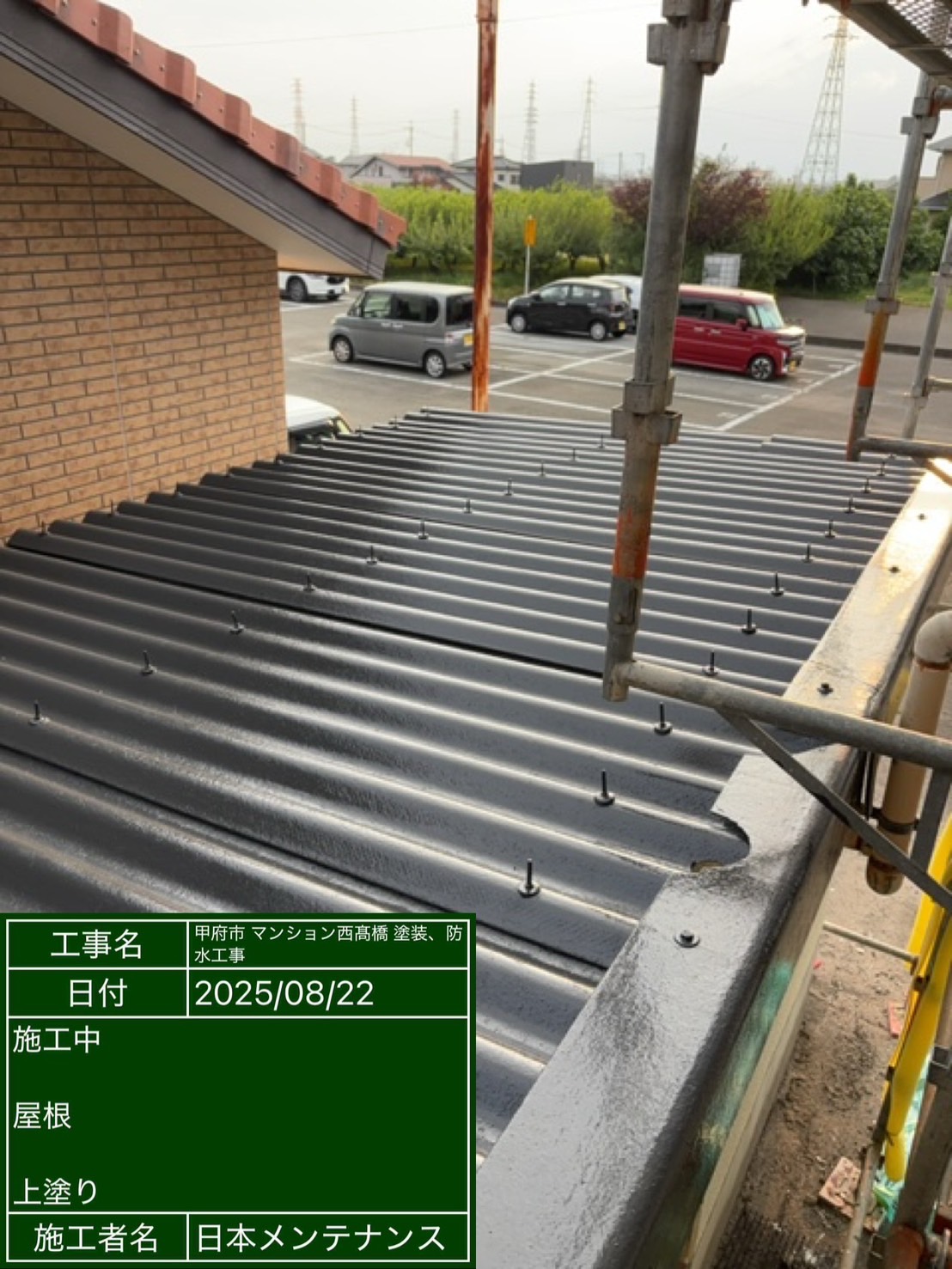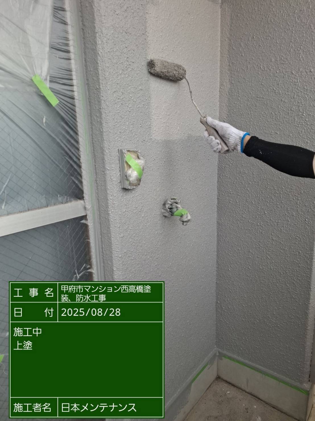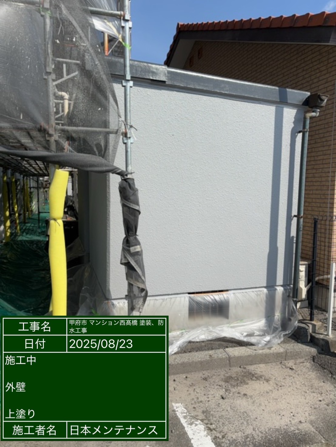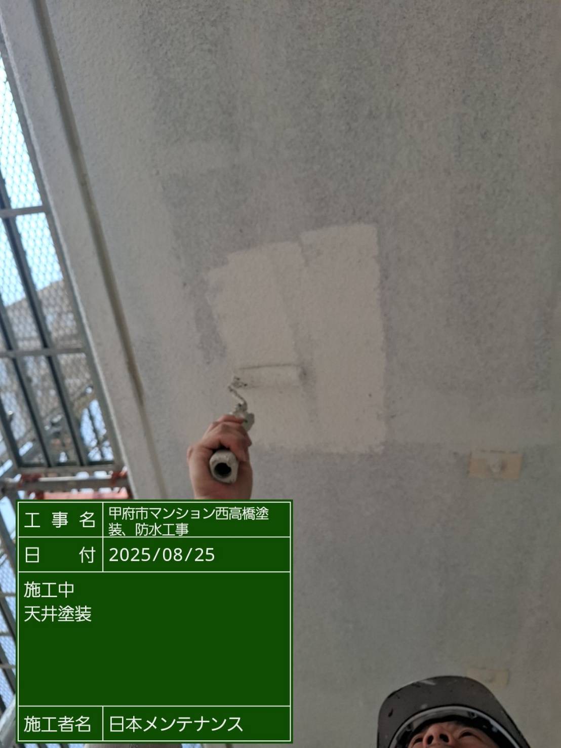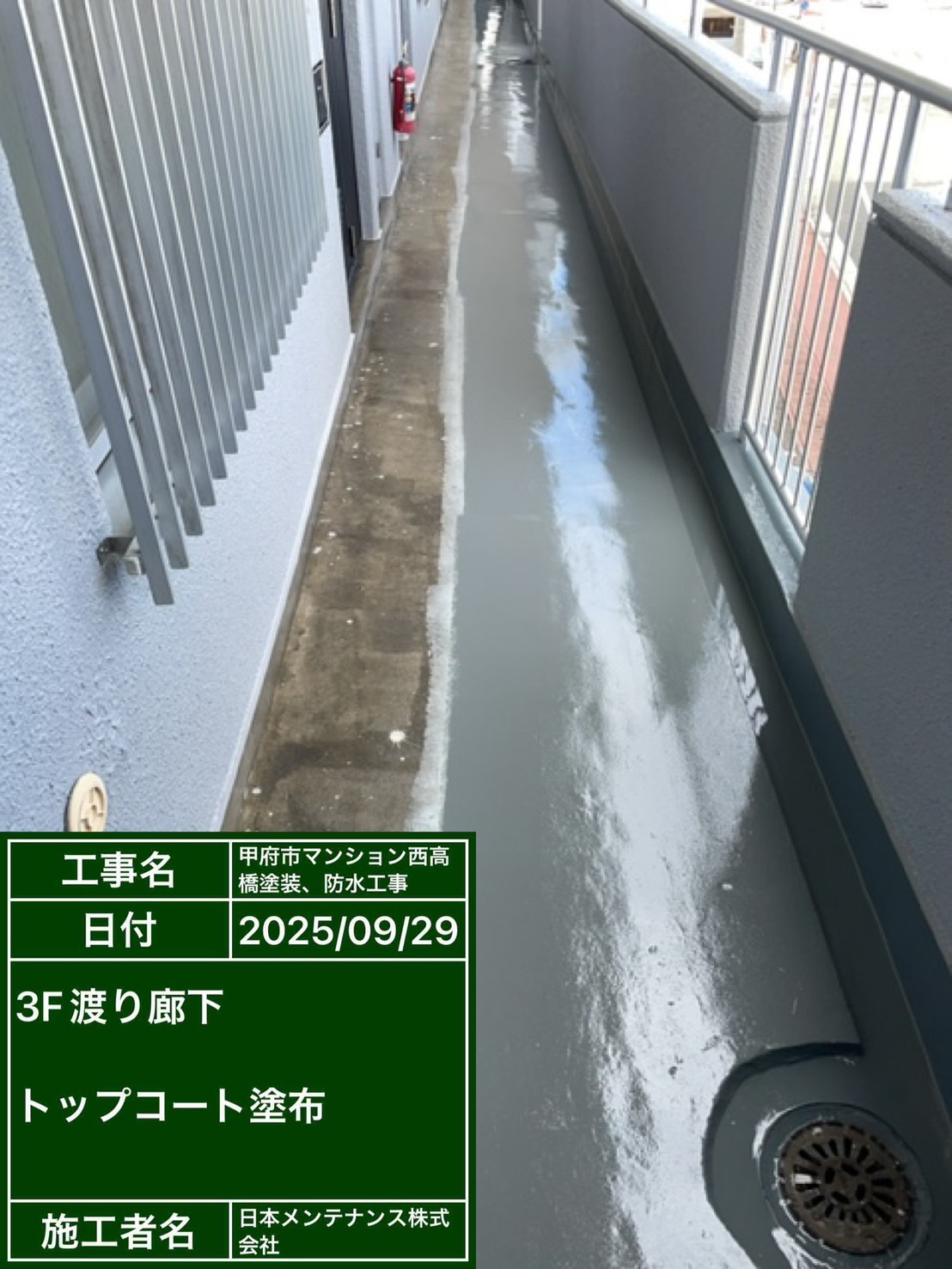 甲府市のマンションで外壁下塗り、屋上トップコートを行いました!