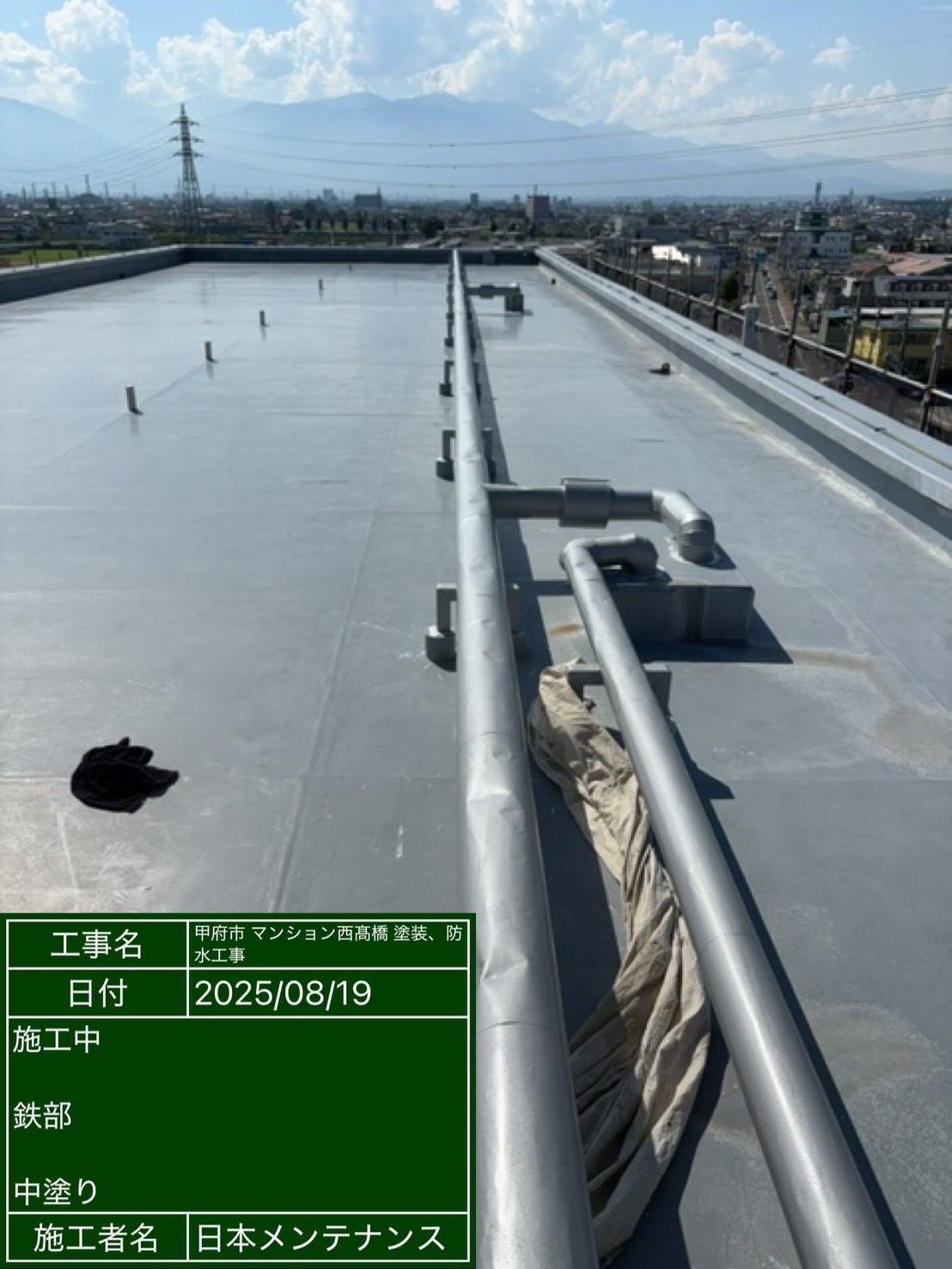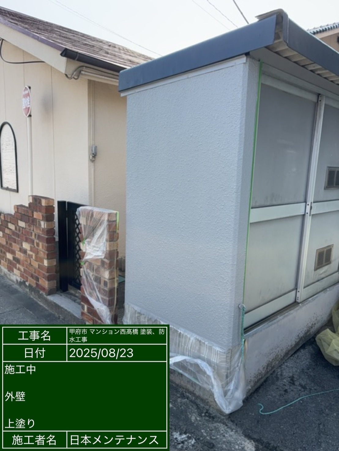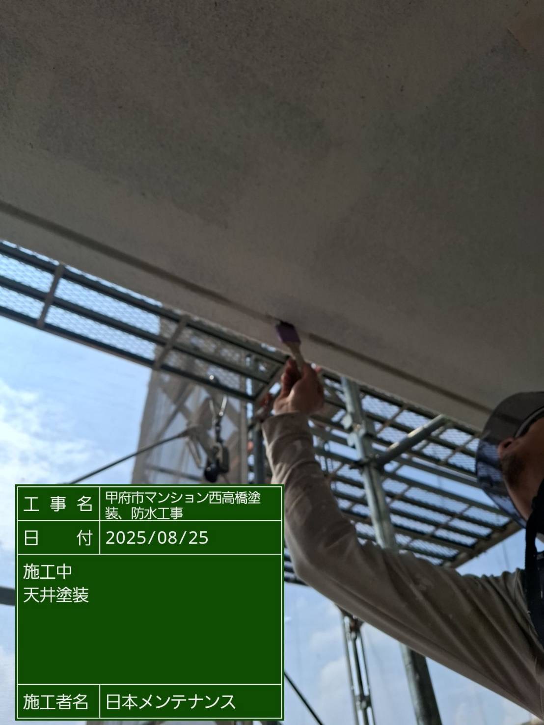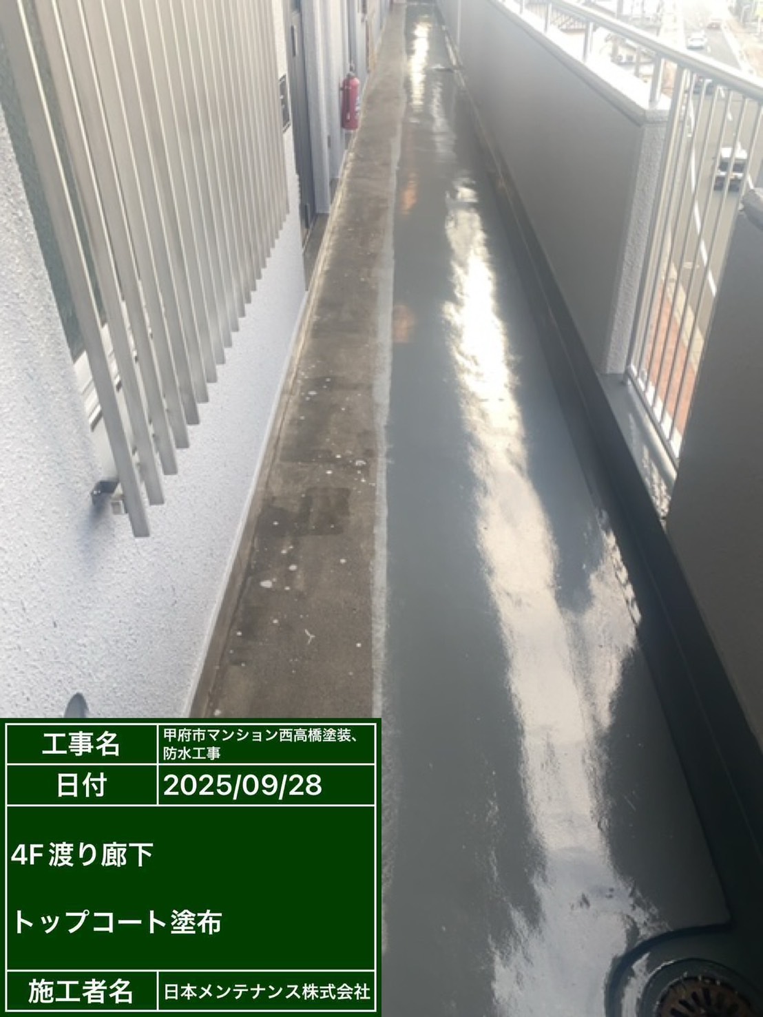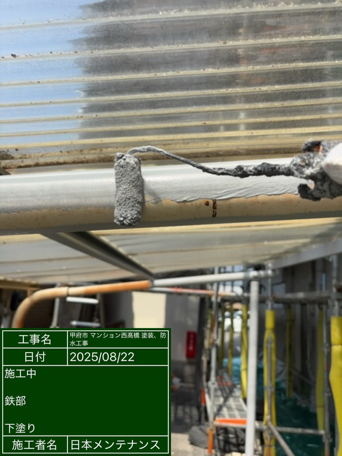 甲府市のマンションで外壁下塗り、屋上トップコートを行いました!