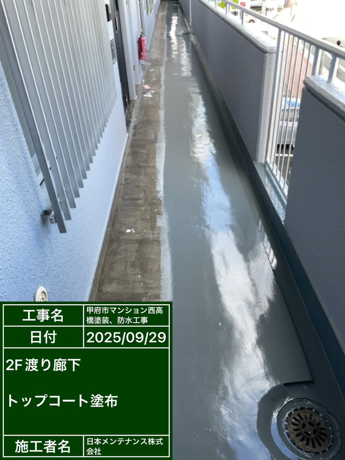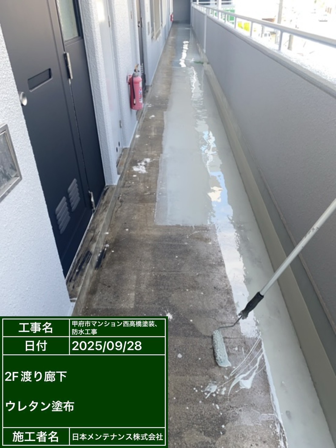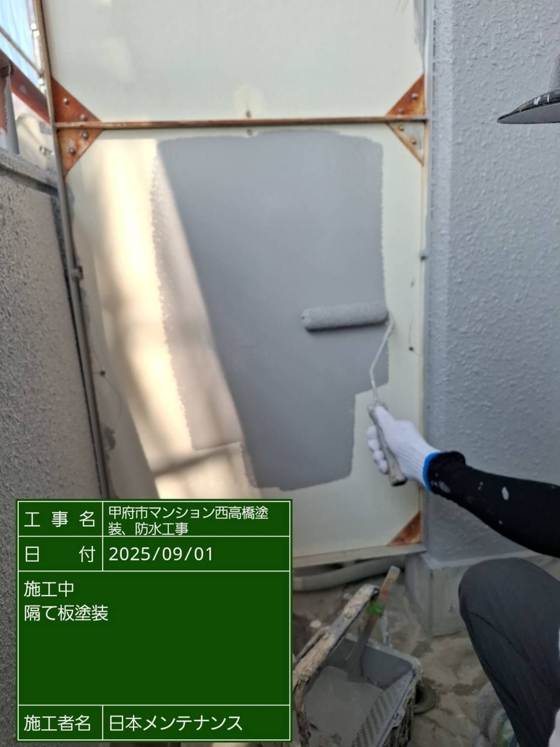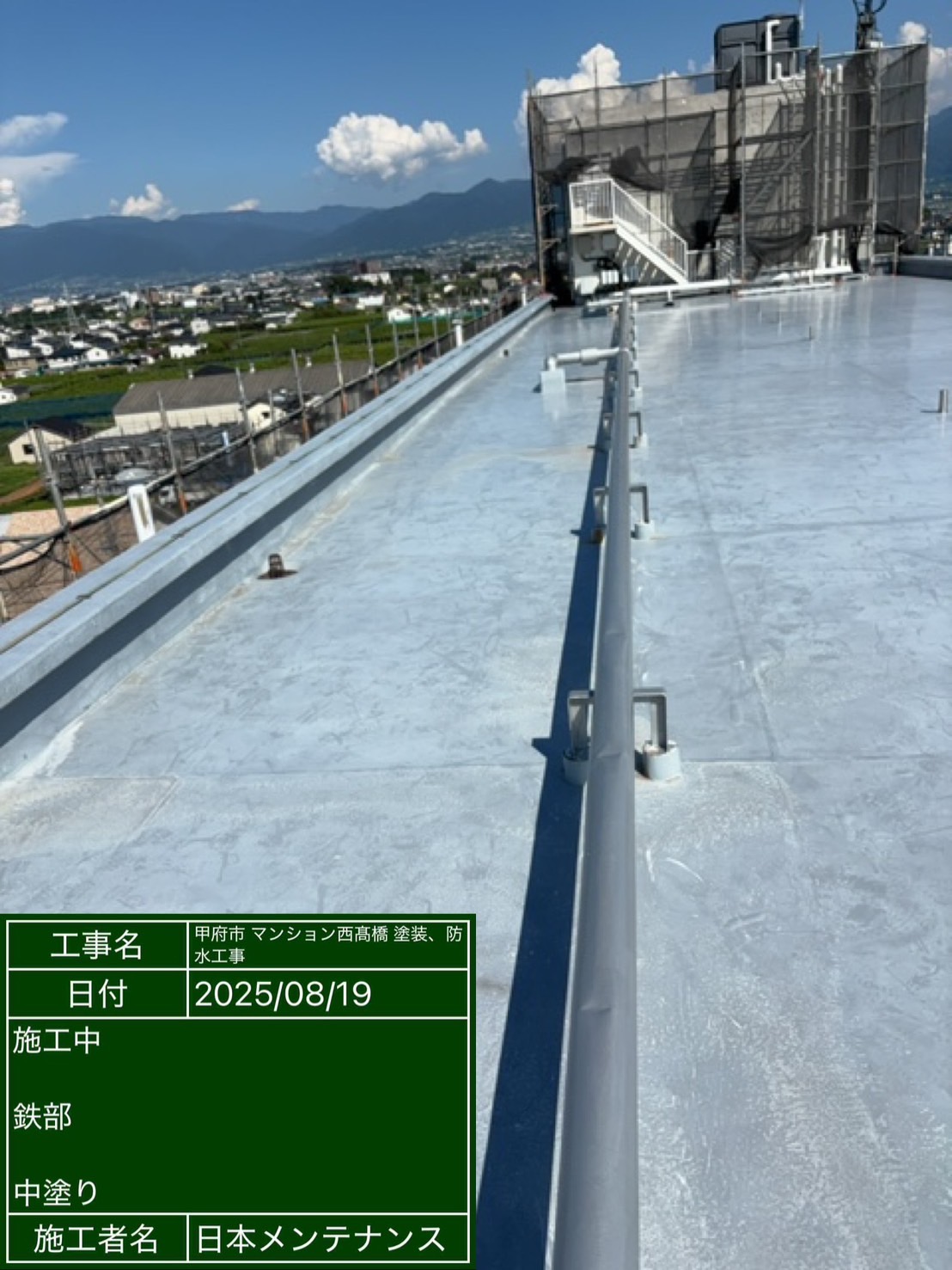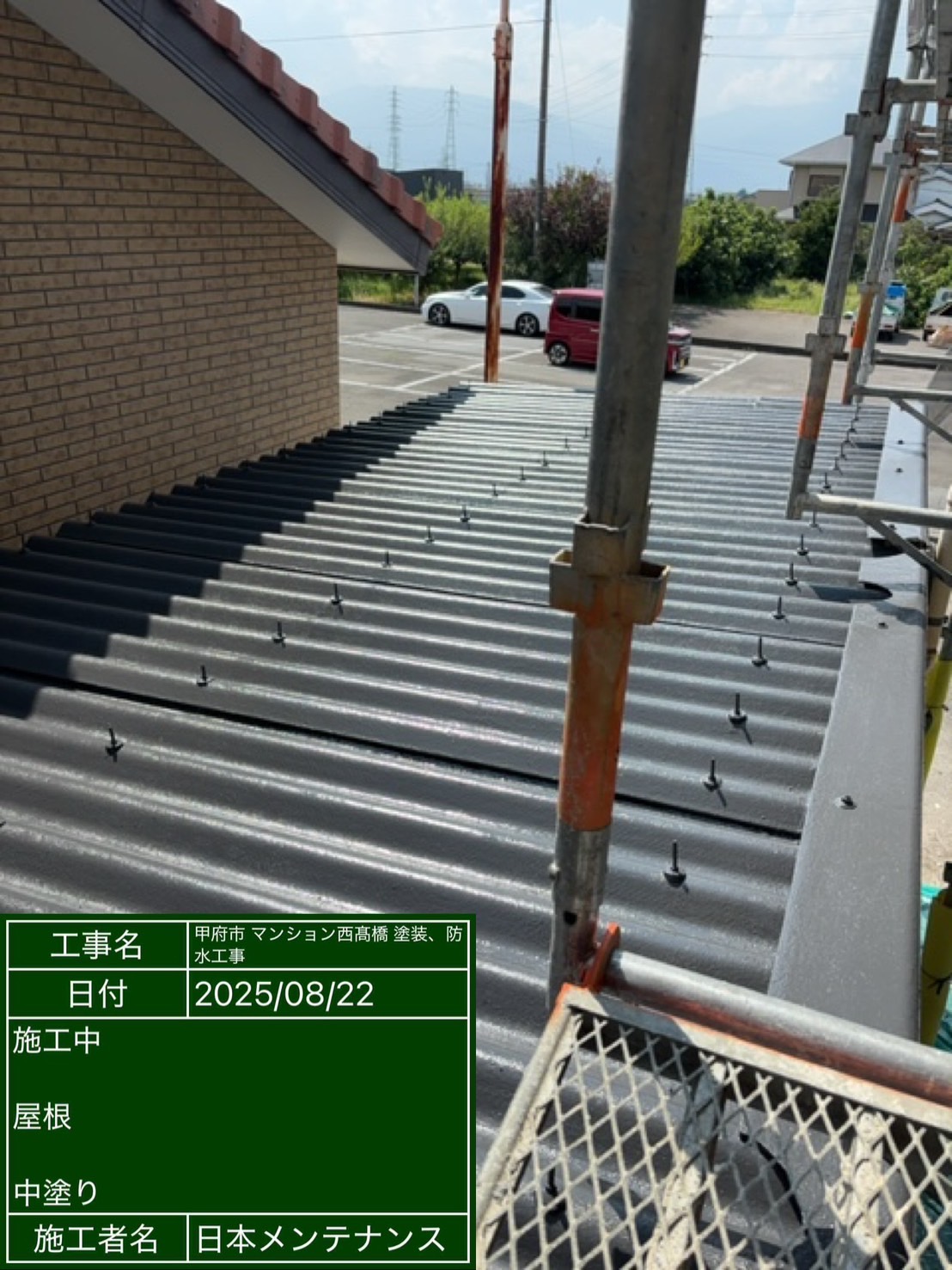甲府市のマンションで外壁下塗り、屋上トップコートを行いました!