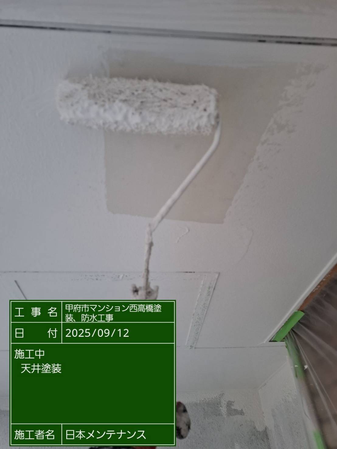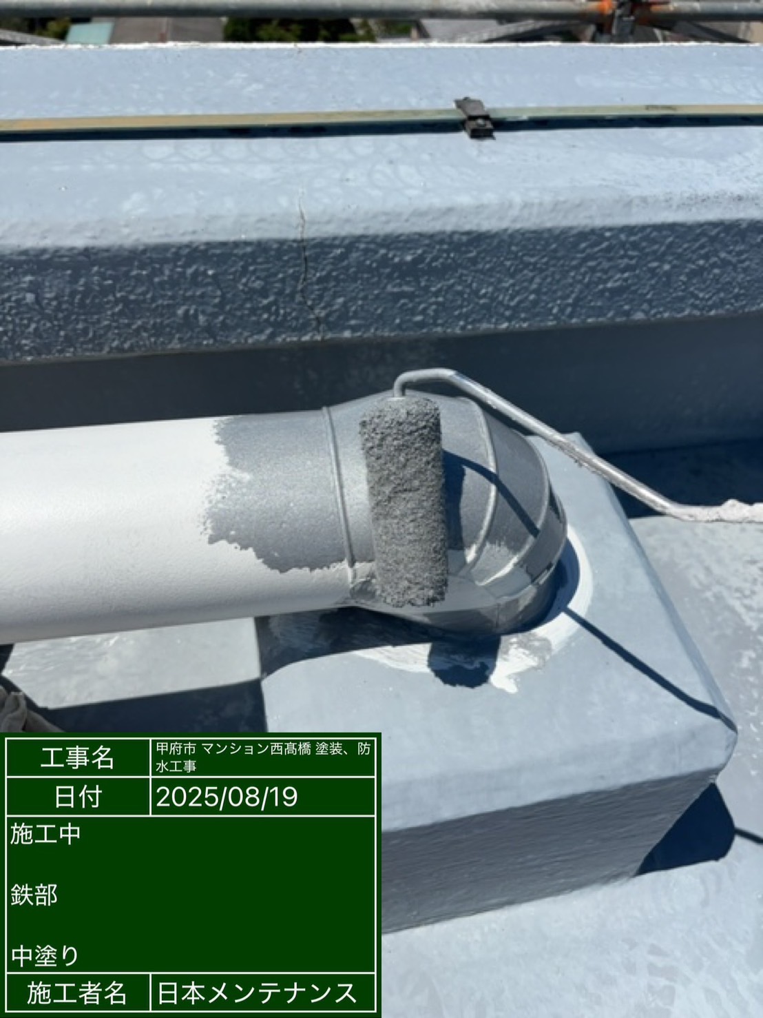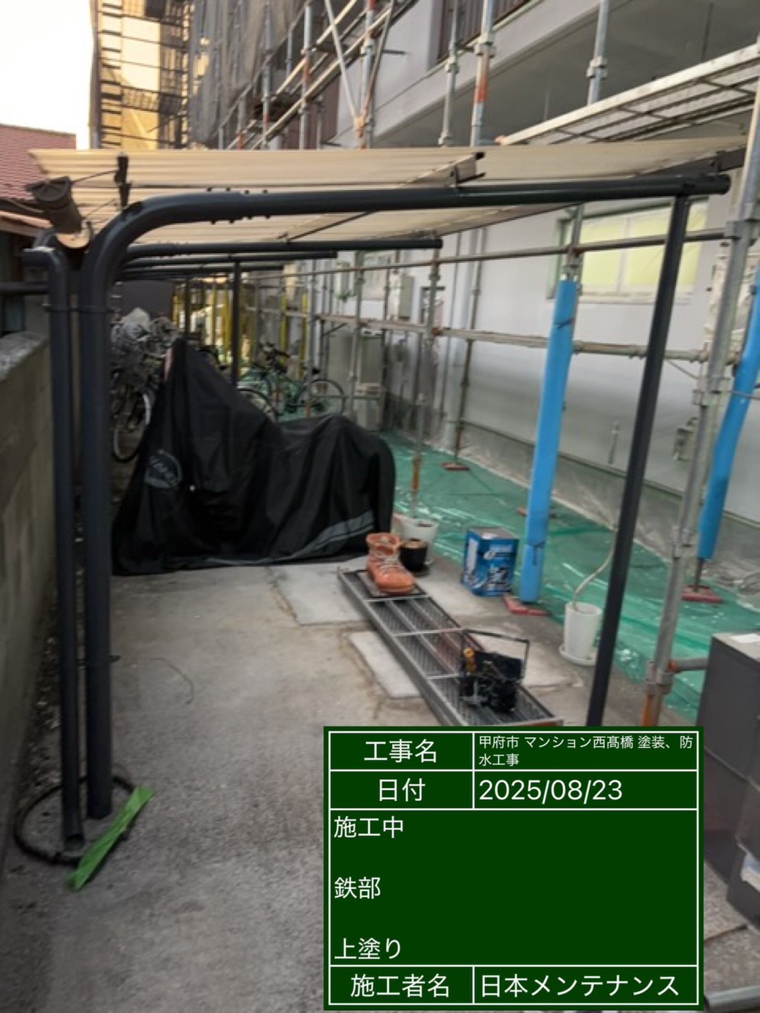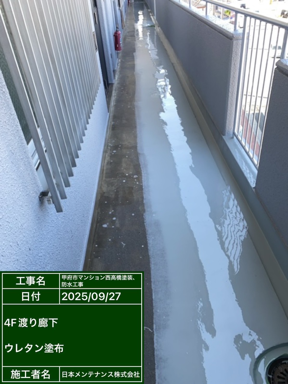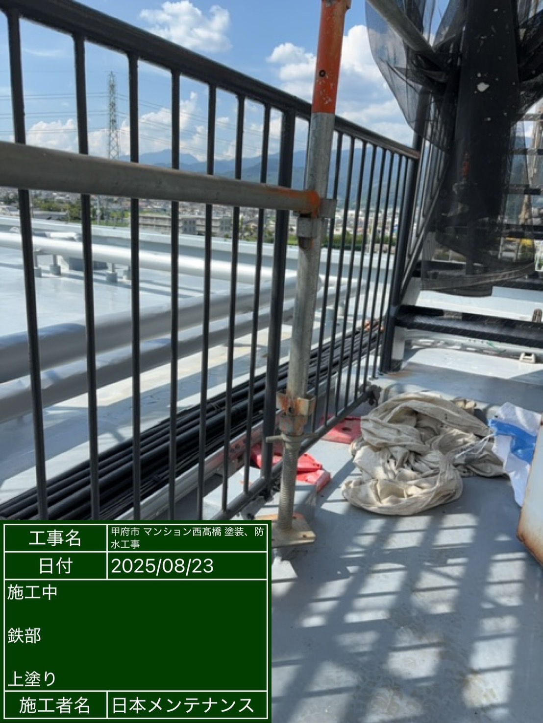 甲府市のマンションで外壁下塗り、屋上トップコートを行いました!