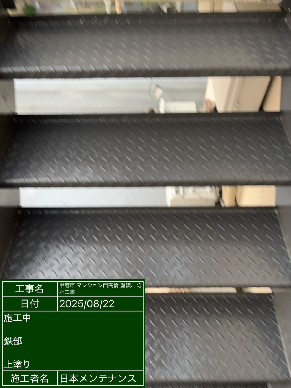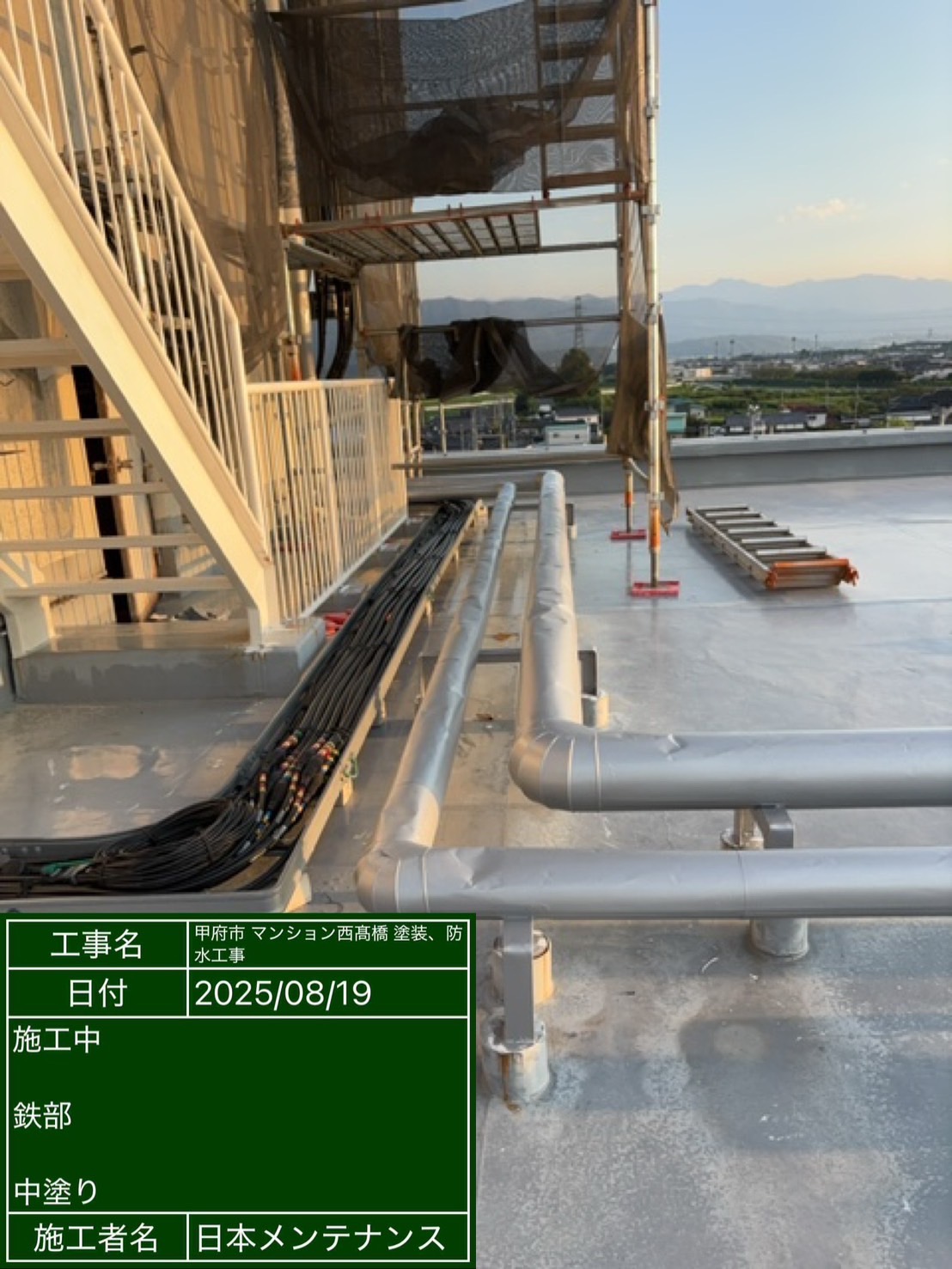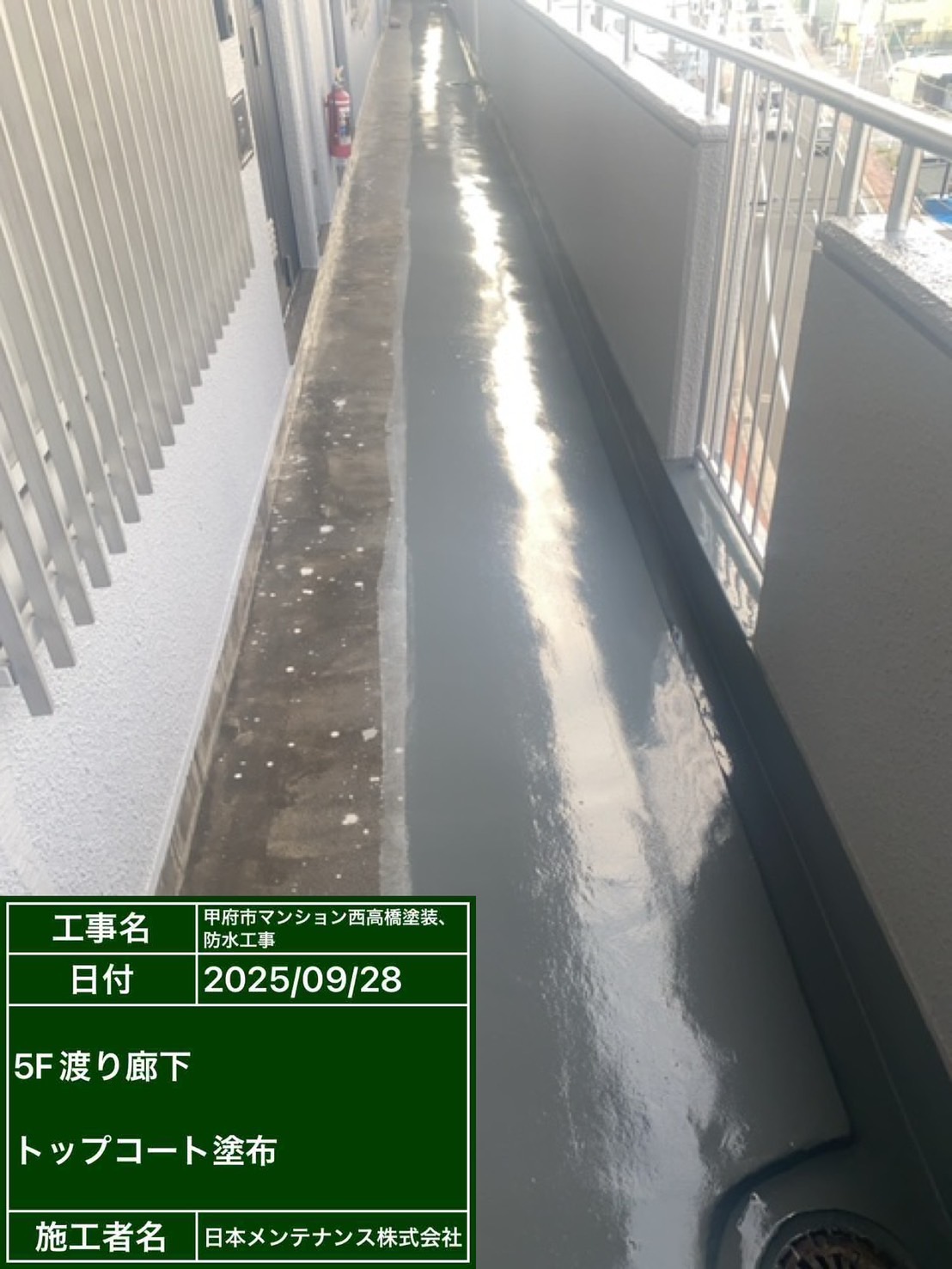 甲府市のマンションで屋上防水トップコートと階段室中塗りを行いました!