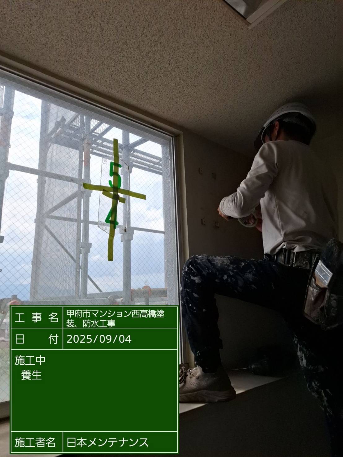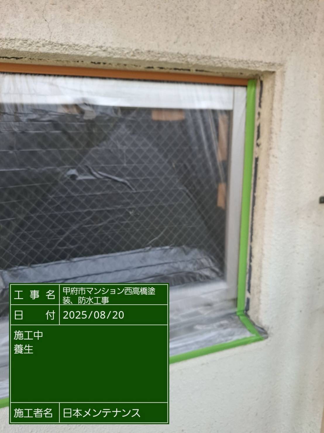 甲府市のマンションで養生と付帯部塗装を行いました!