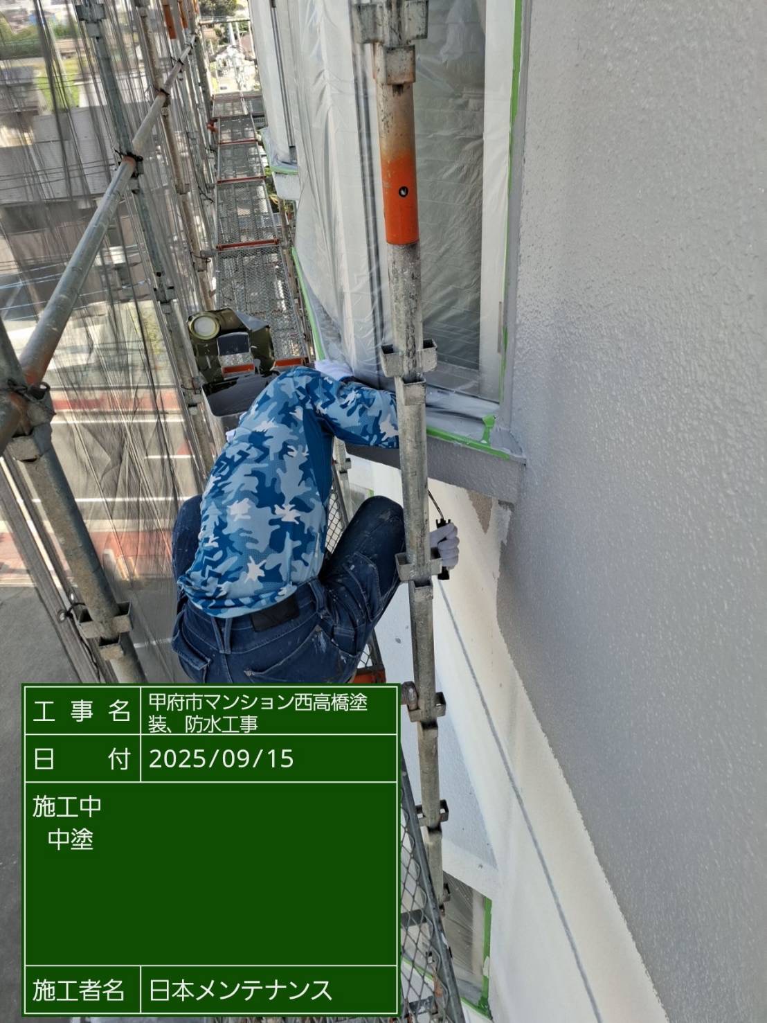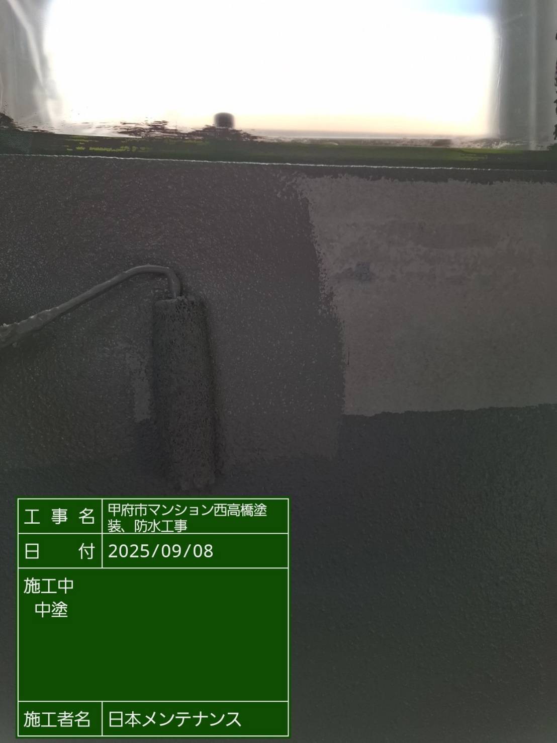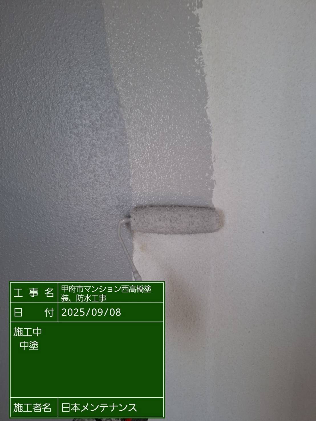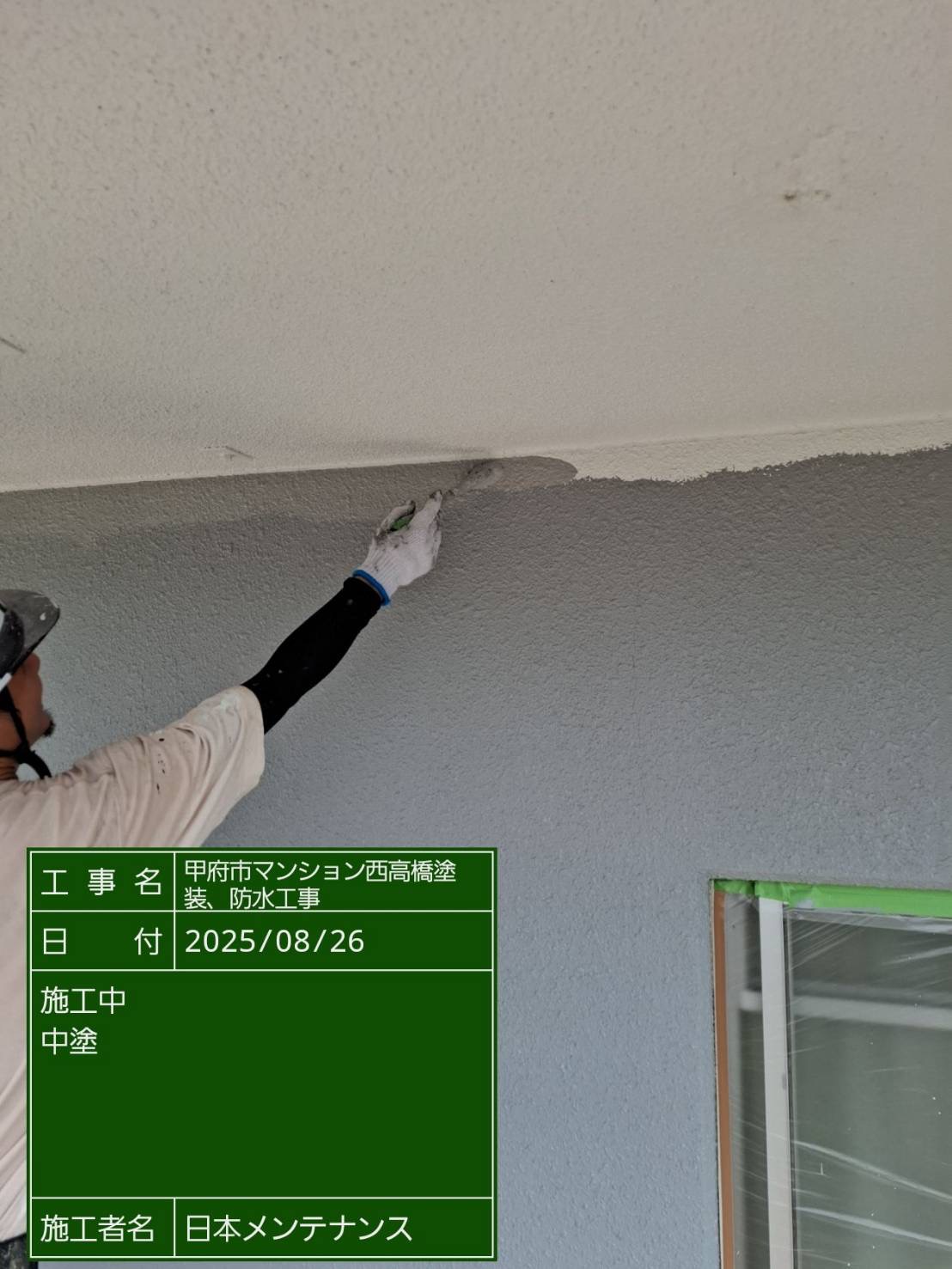 甲府市のマンションで外壁中塗り、付帯部塗装を行いました!