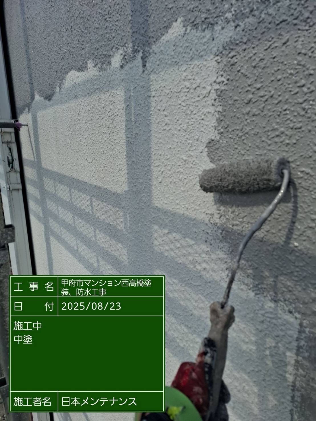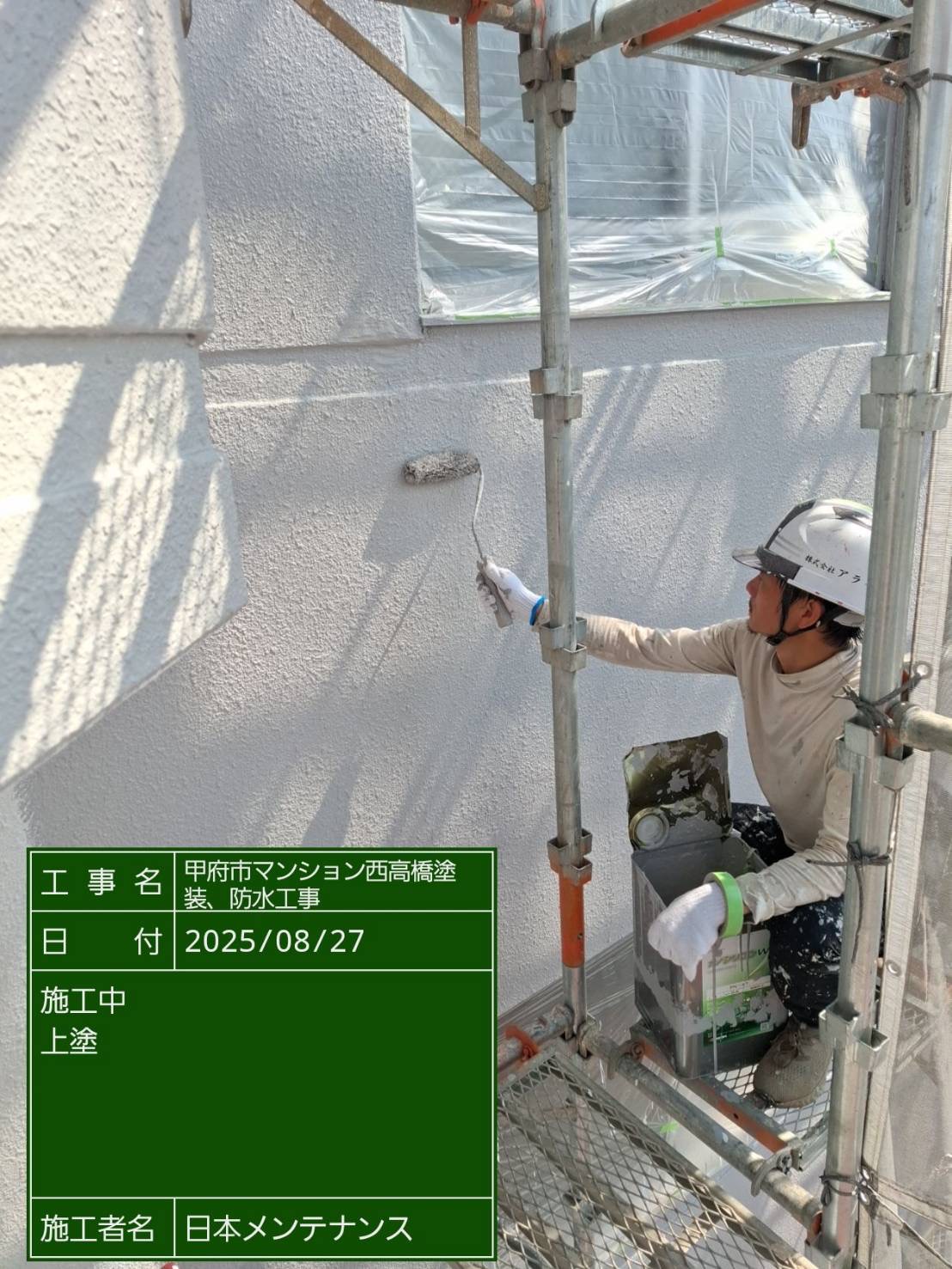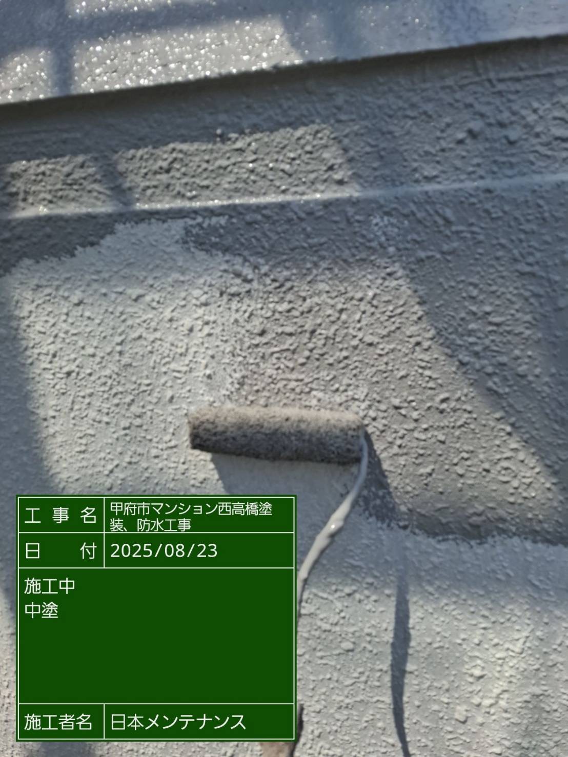 甲府市のマンションで外壁中塗り、付帯部塗装を行いました!