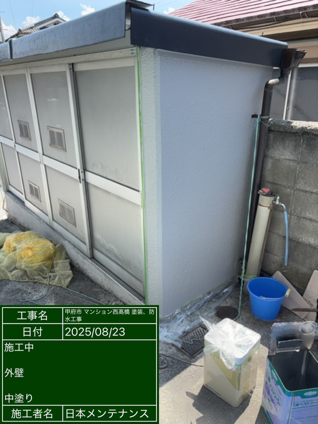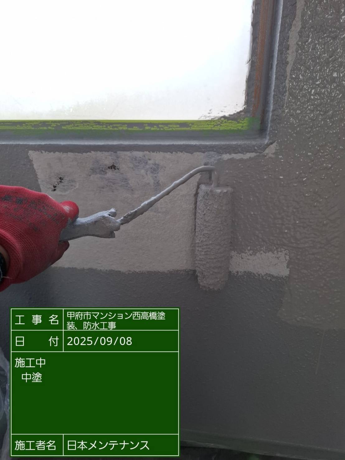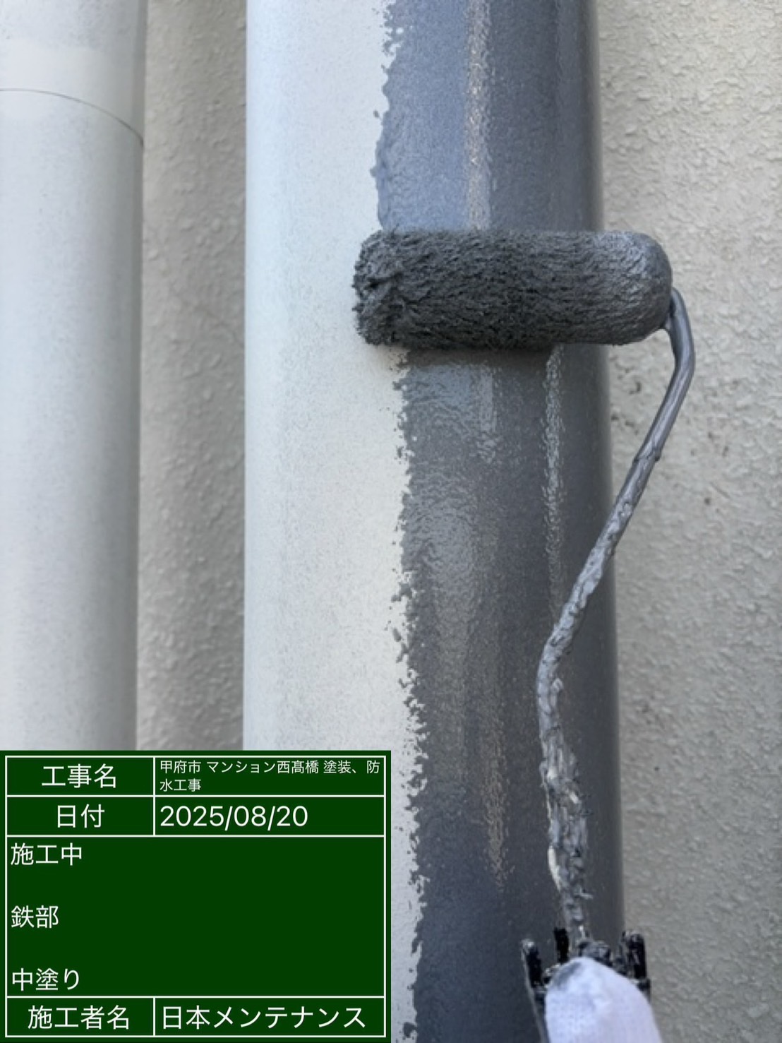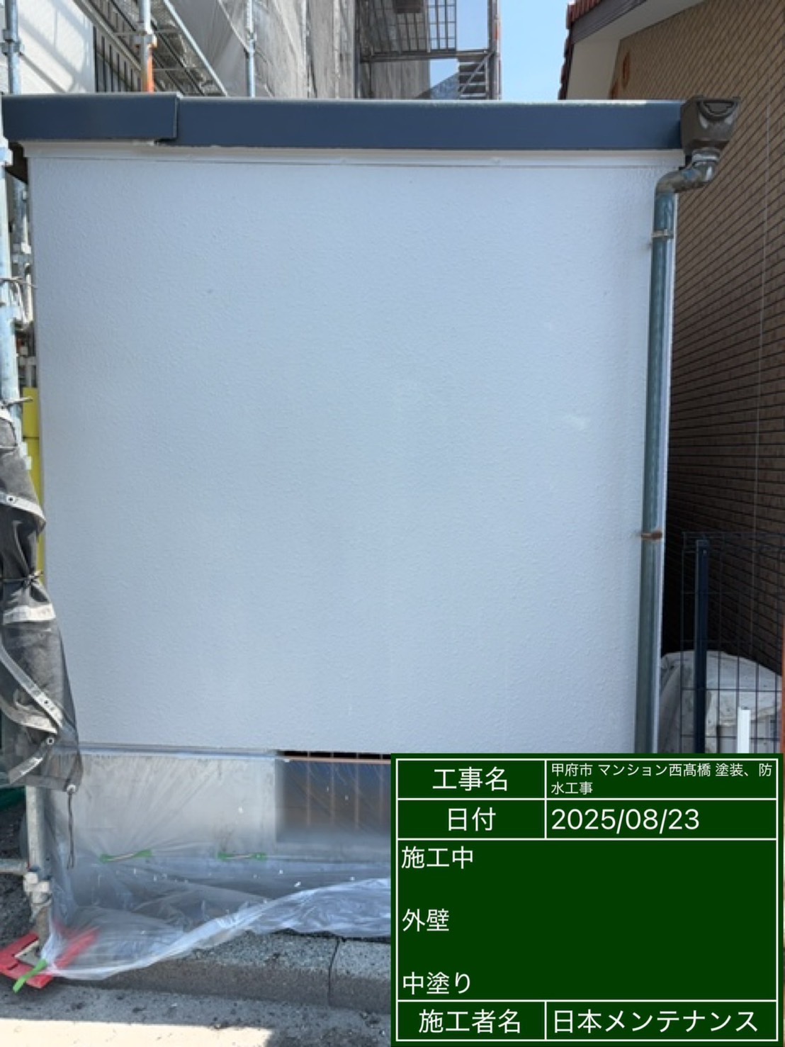 甲府市のマンションで外壁中塗り、付帯部塗装を行いました!