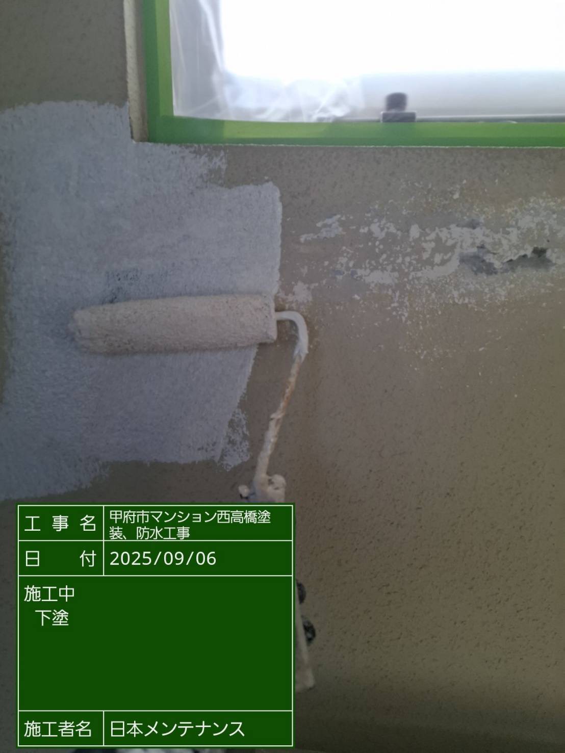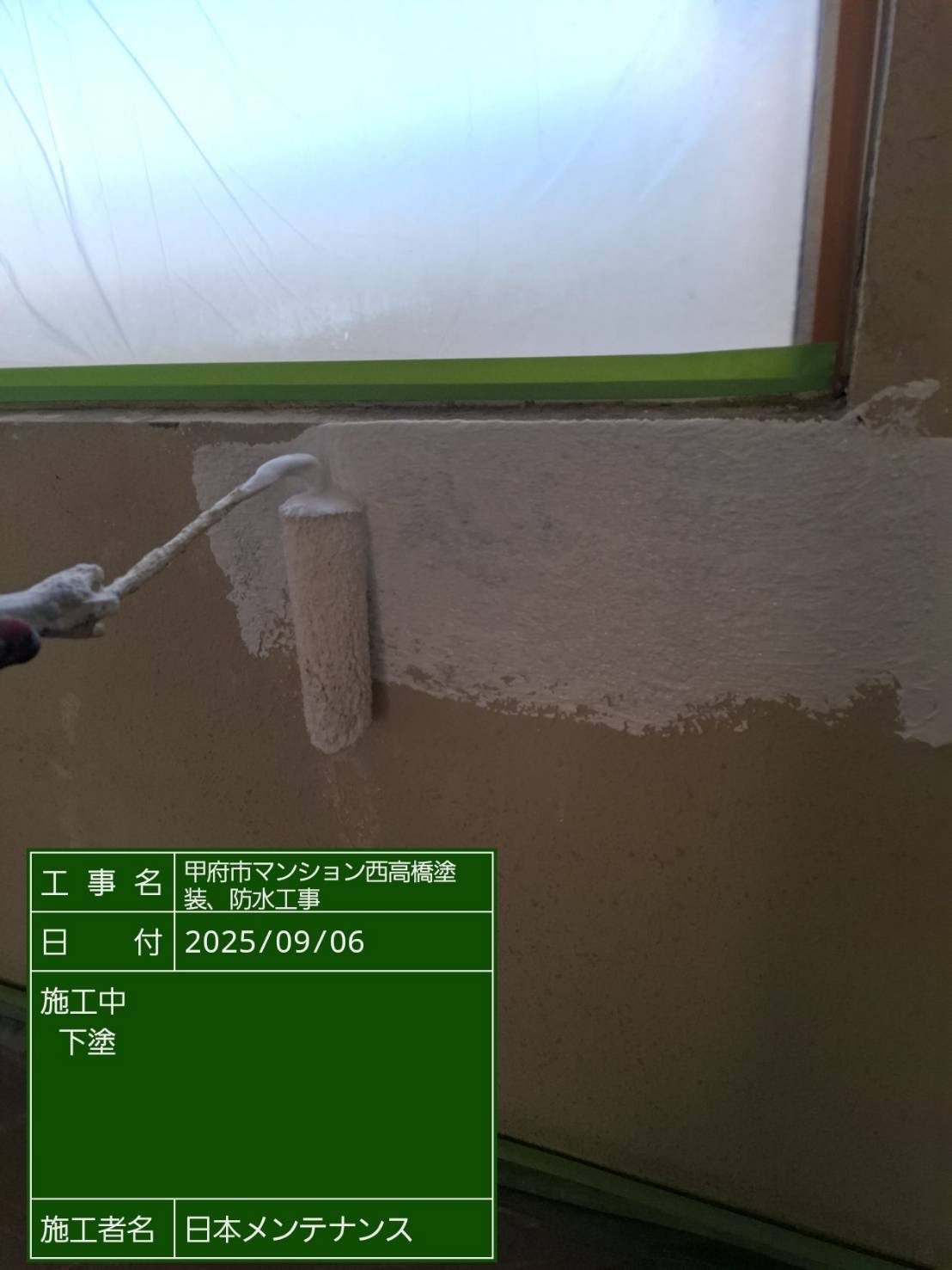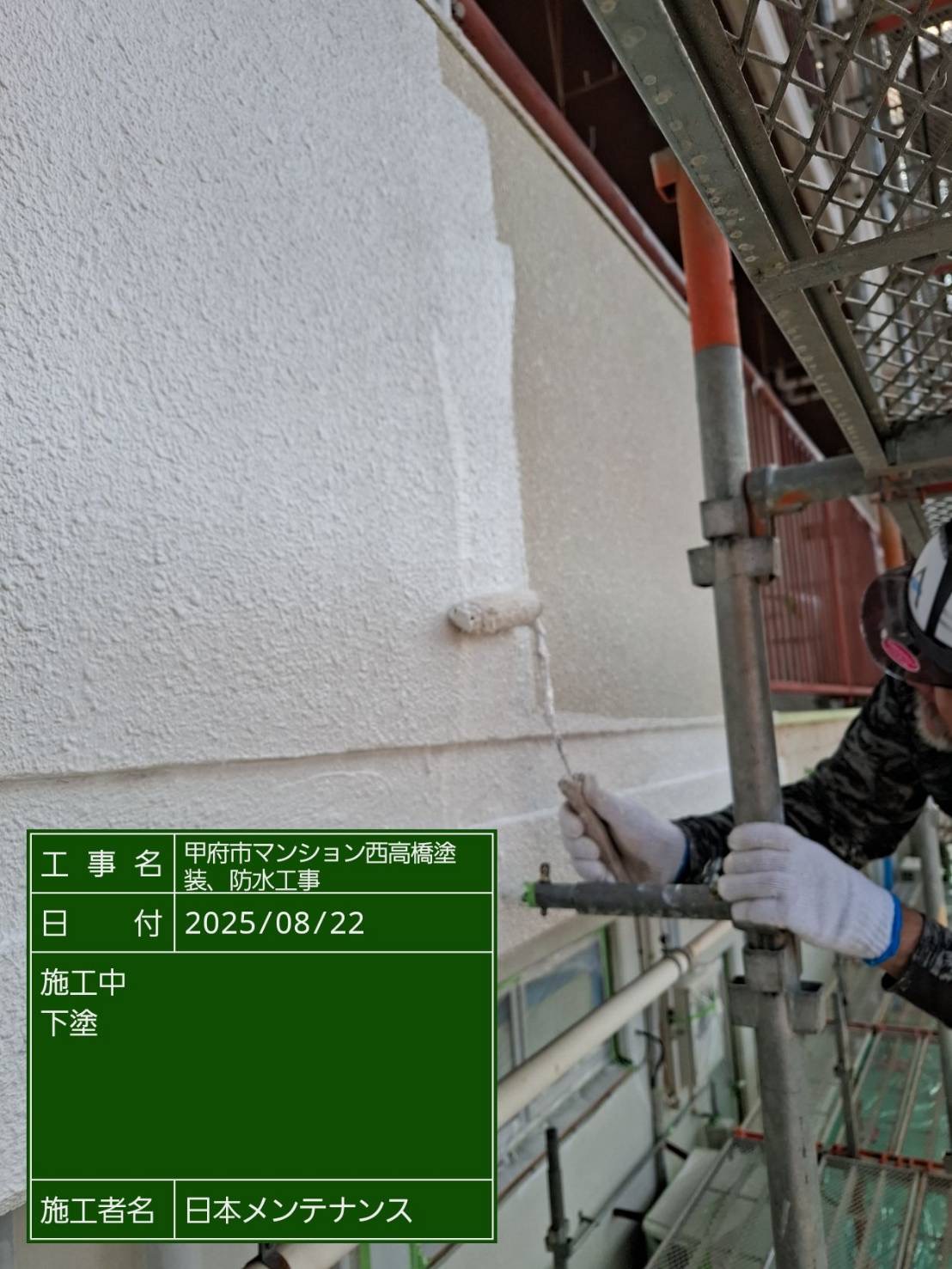 甲府市のマンションで外壁下塗り、付帯部塗装を行いました!