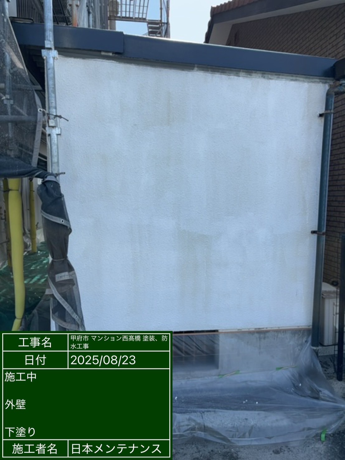 甲府市のマンションで階段室壁の下塗りを行いました!