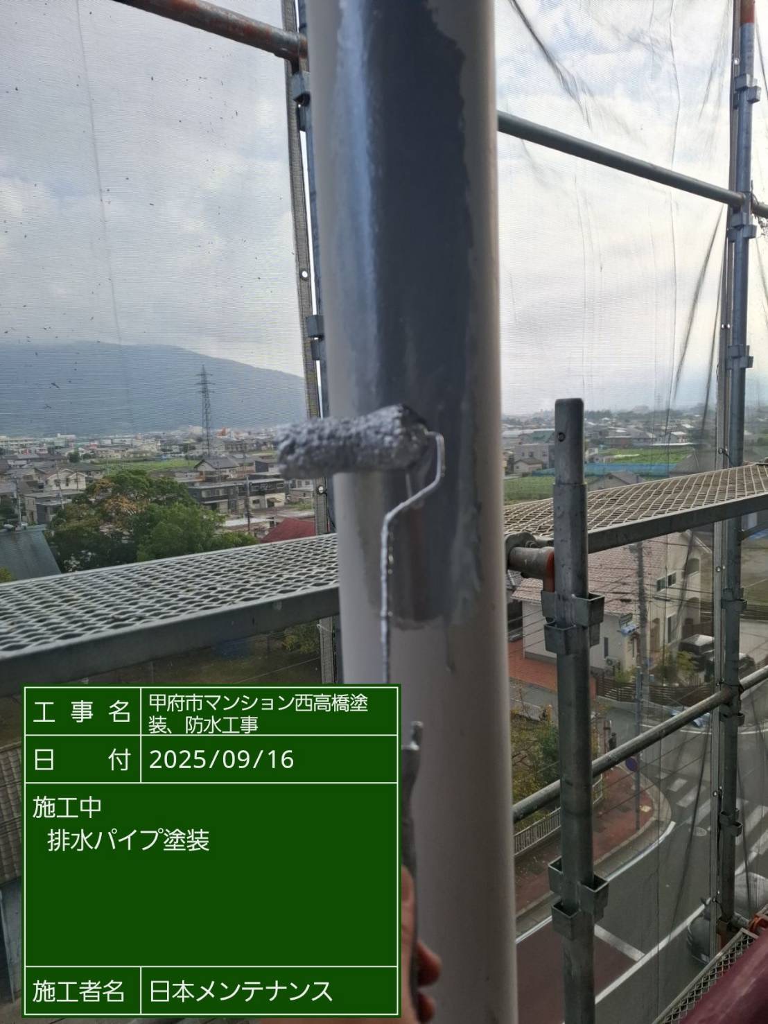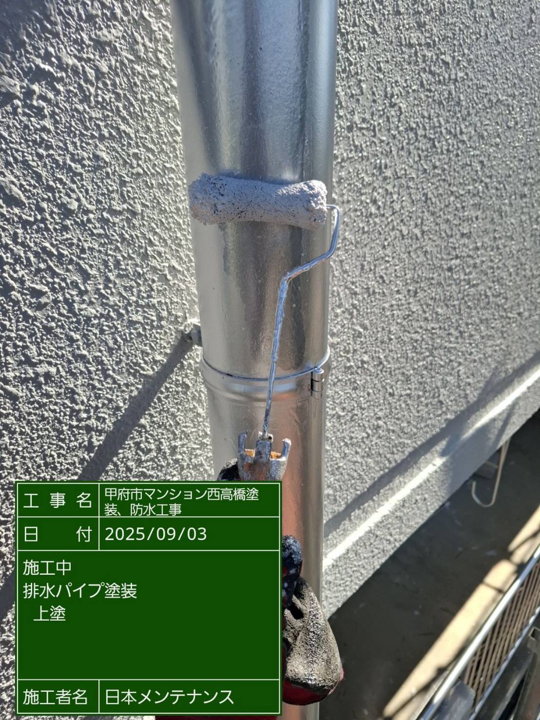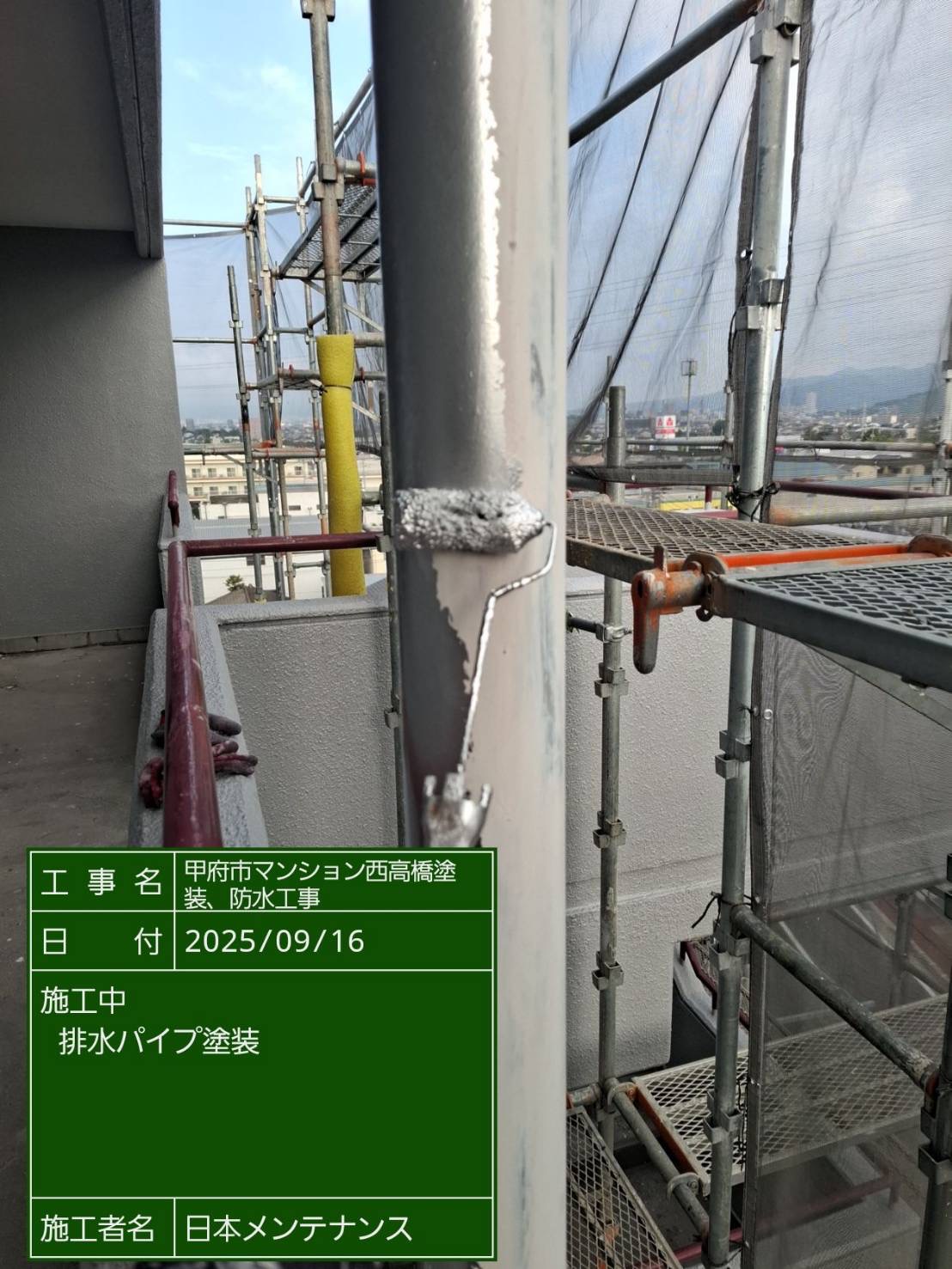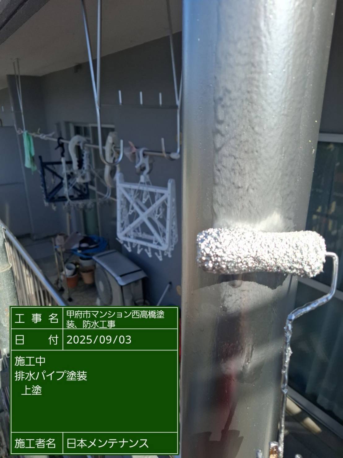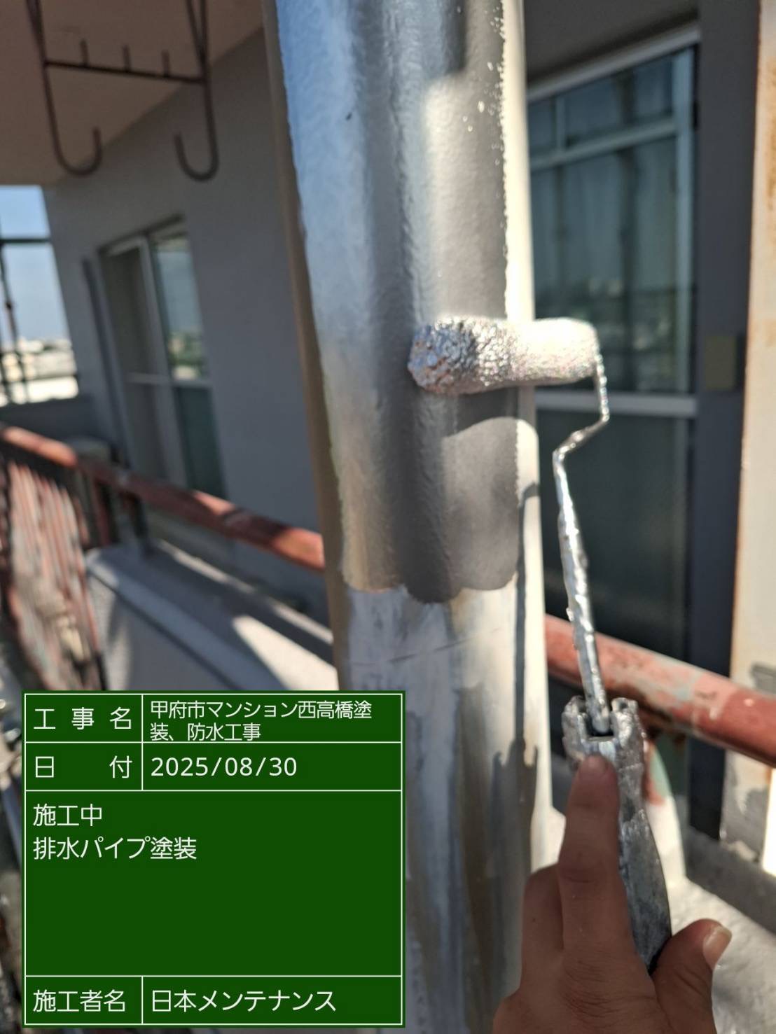 甲府市のマンションで排水パイプ塗装とベランダ下地プライマーを行いました!