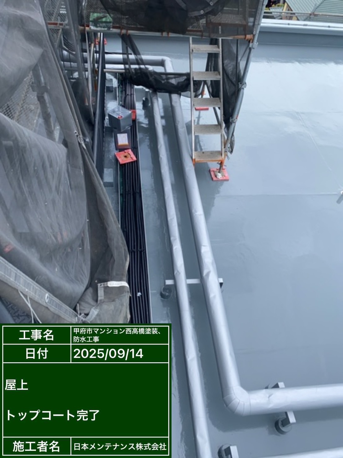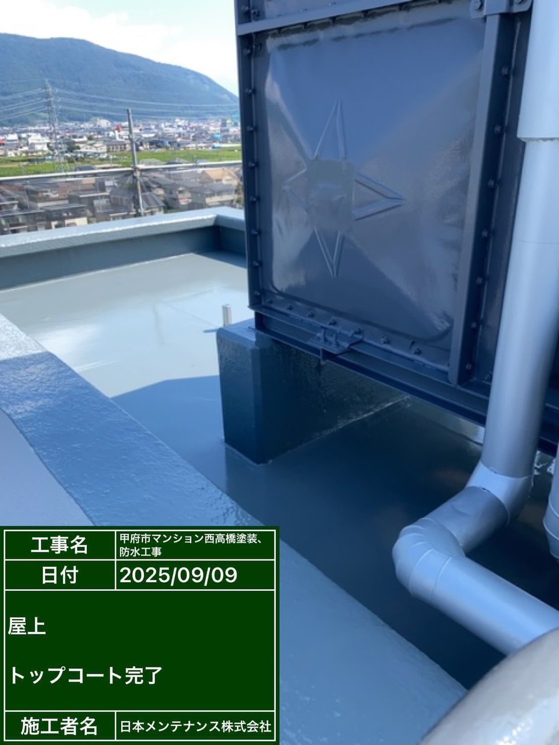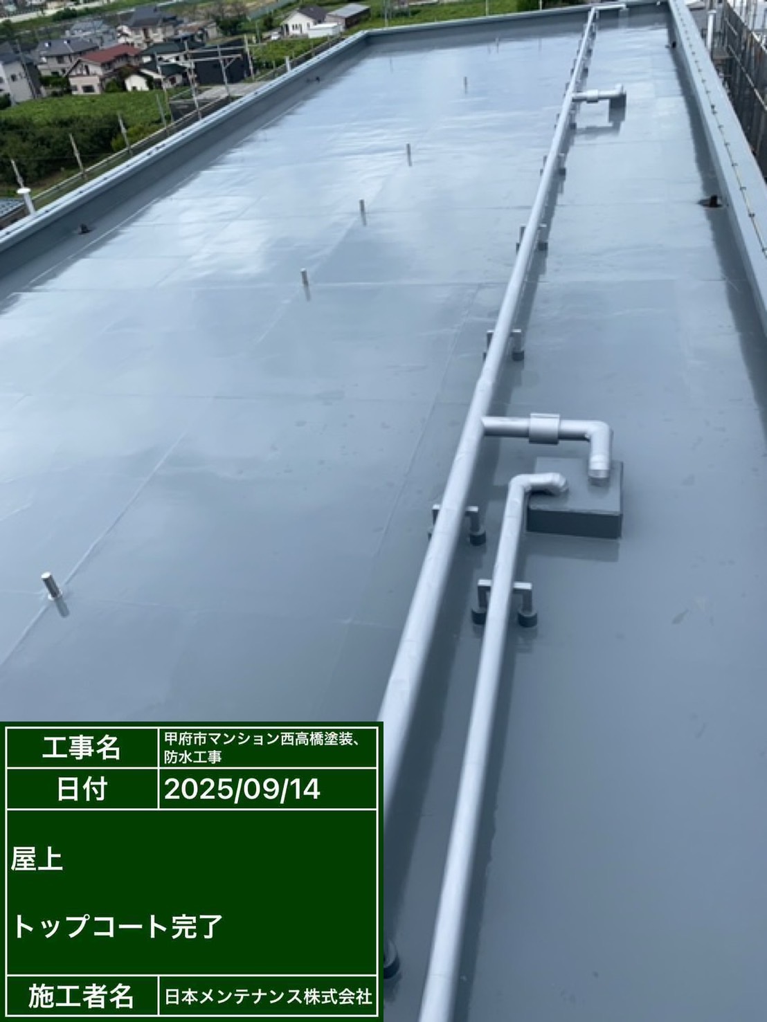 甲府市のマンションで外壁塗装、屋上防水トップコート、コーキングを行いました!