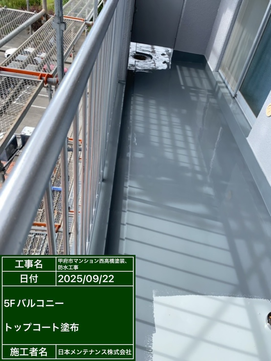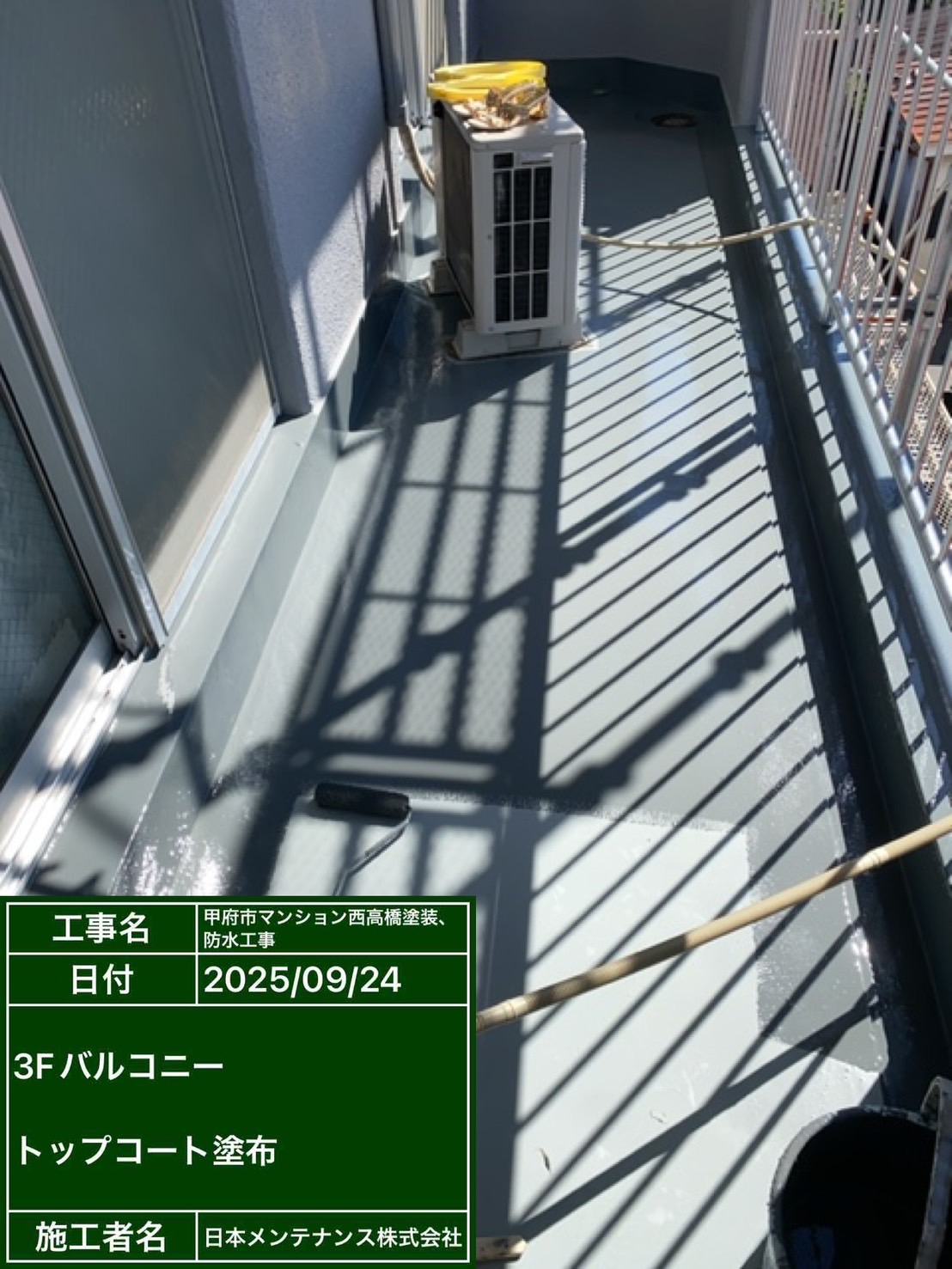 甲府市のマンションで外壁、鉄部塗装とバルコニー防水を行いました!